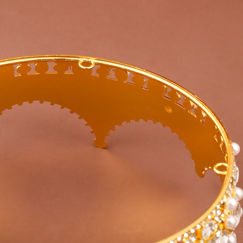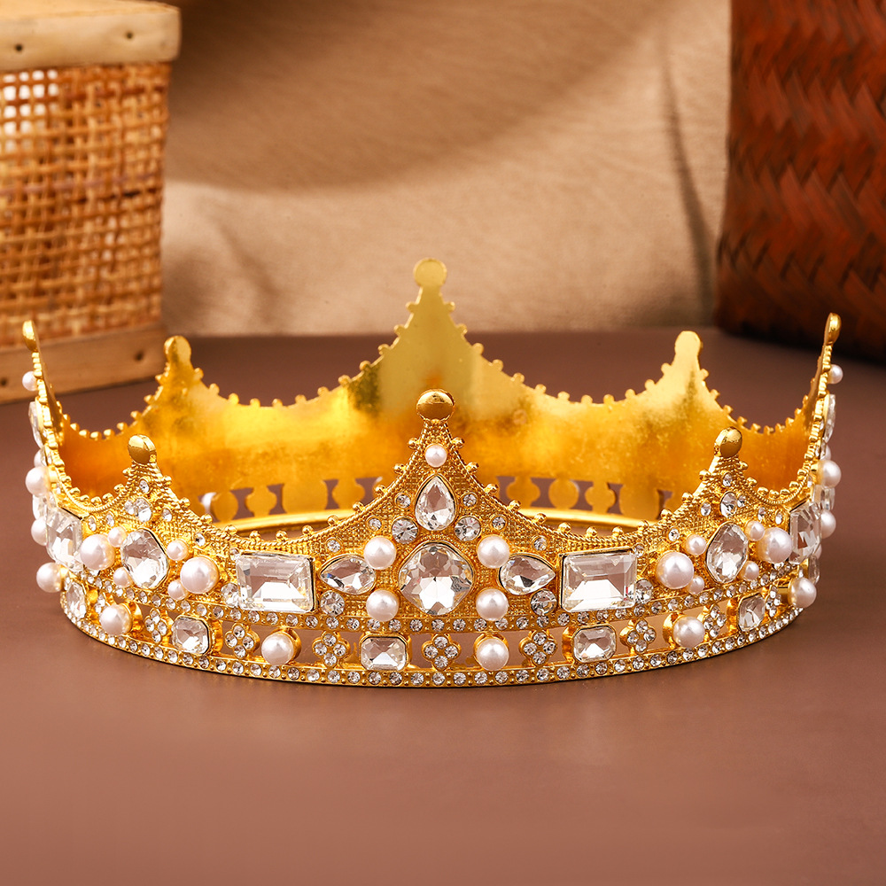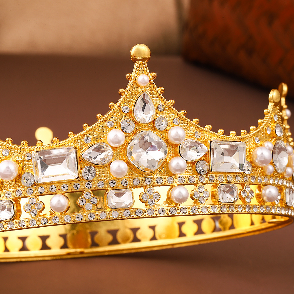 金色复古电镀圆冠小众高级感珍珠女式皇冠轻奢百搭合金水钻发饰