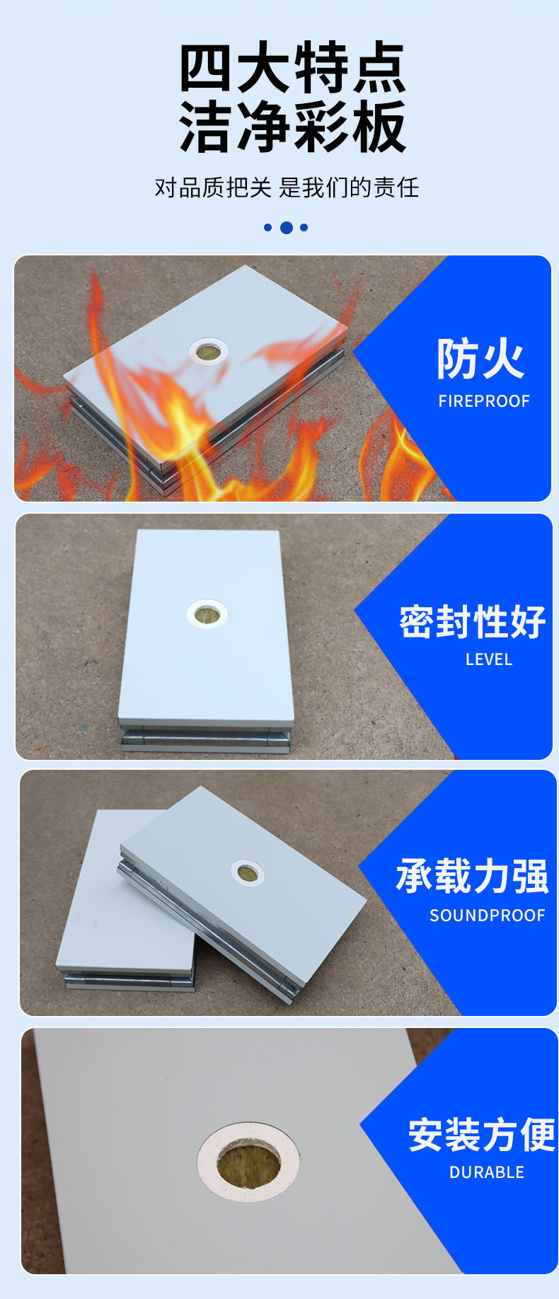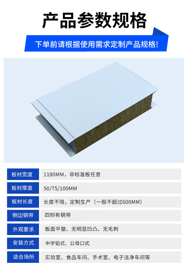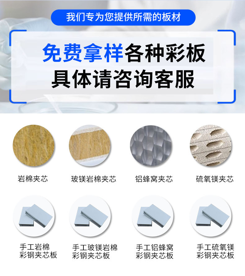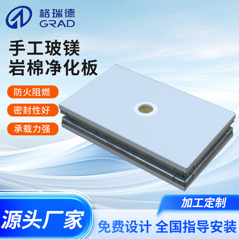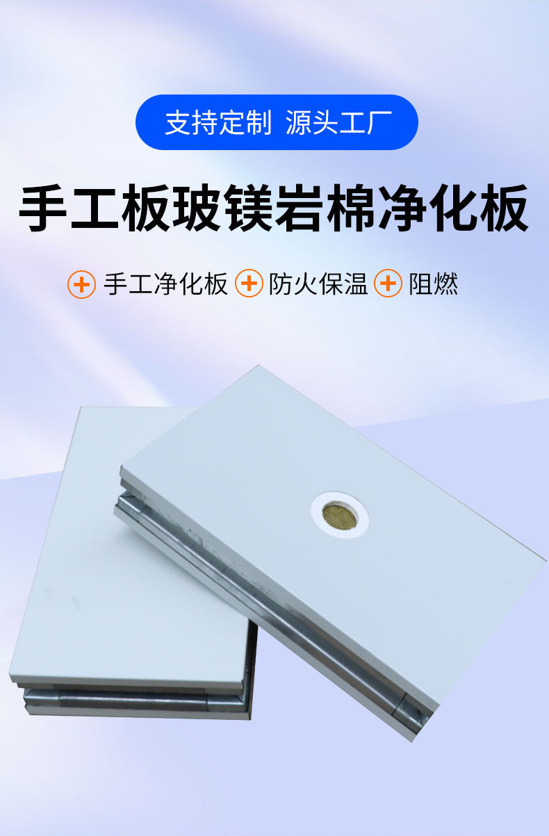 手工玻镁岩棉净化板无尘车间净化彩钢夹芯板面双面玻镁岩棉板