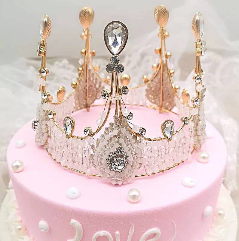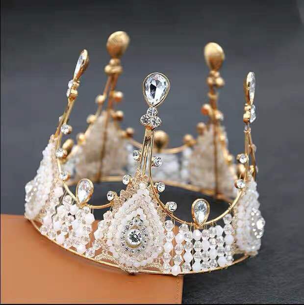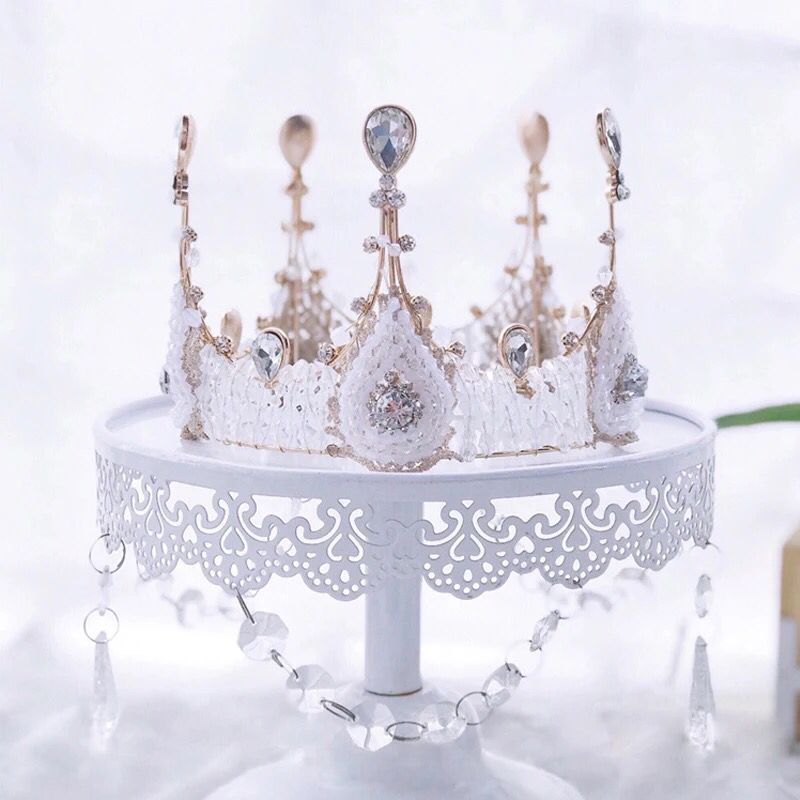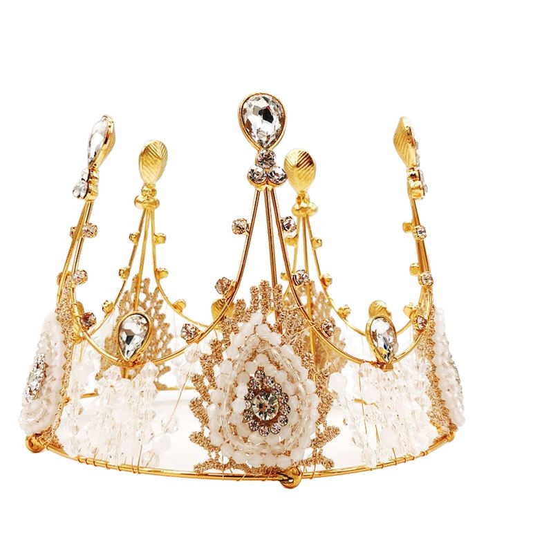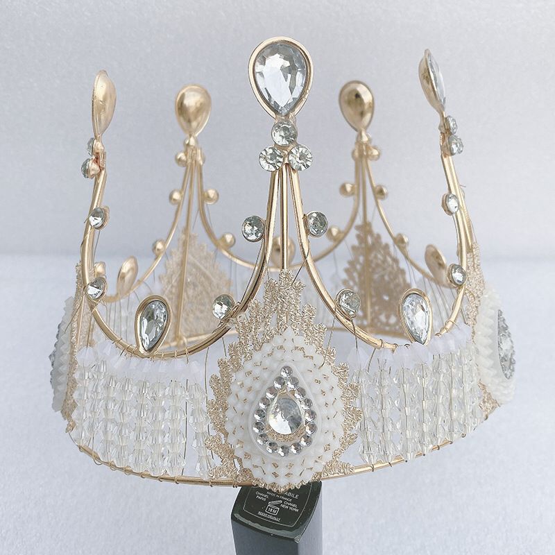 巴洛克新娘头饰烘焙蕾丝皇冠凤冠装饰摆件女王合金珍珠大皇冠