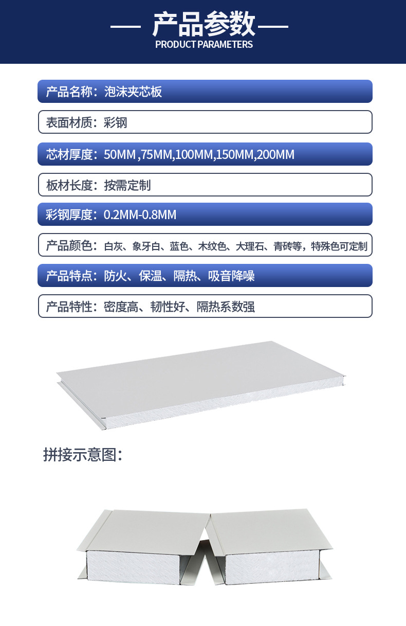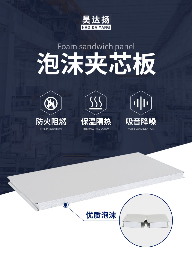 泡沫板夹芯板复合彩钢板保温隔热50mm厚墙板S口活动板房净化板