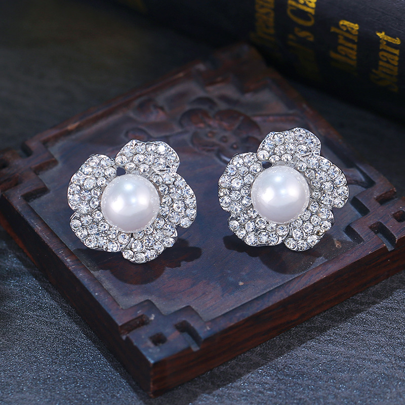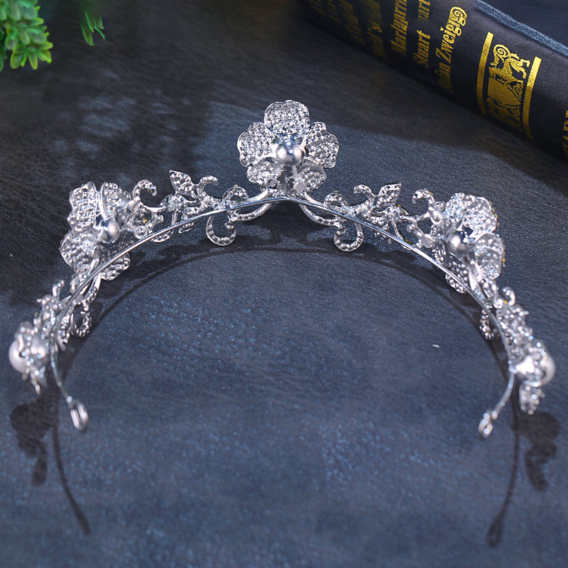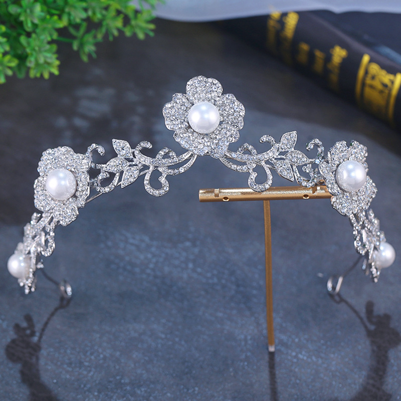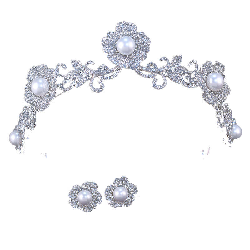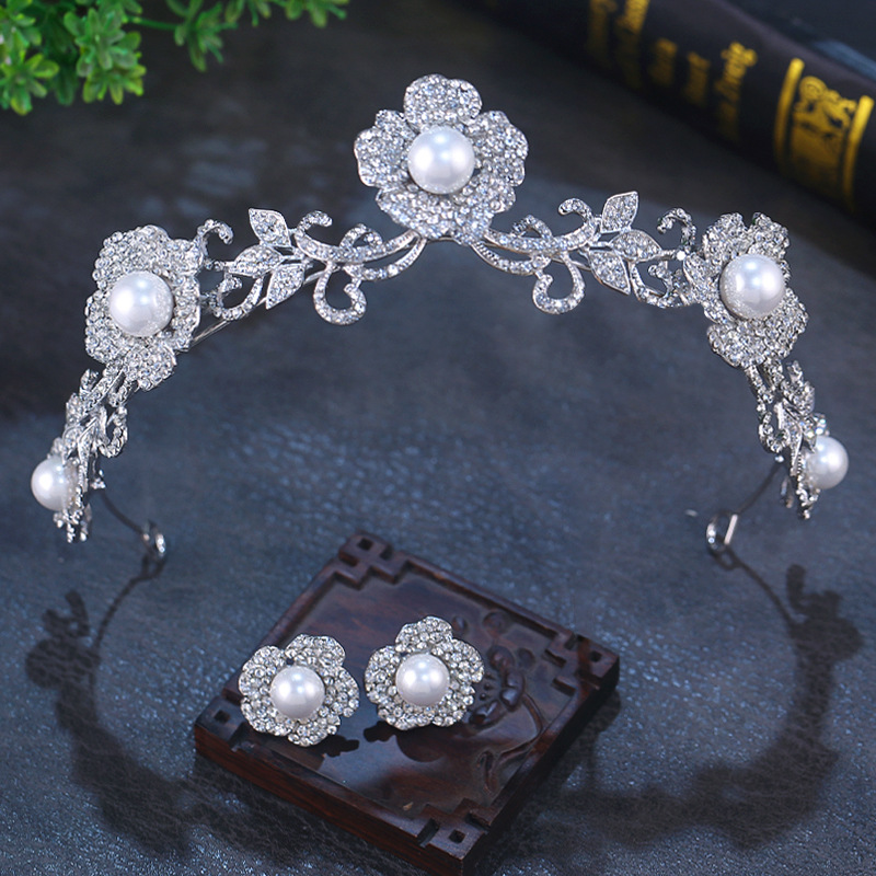 新娘花朵珍珠皇冠耳环套装白纱造型高级感头饰公主生日王冠头饰