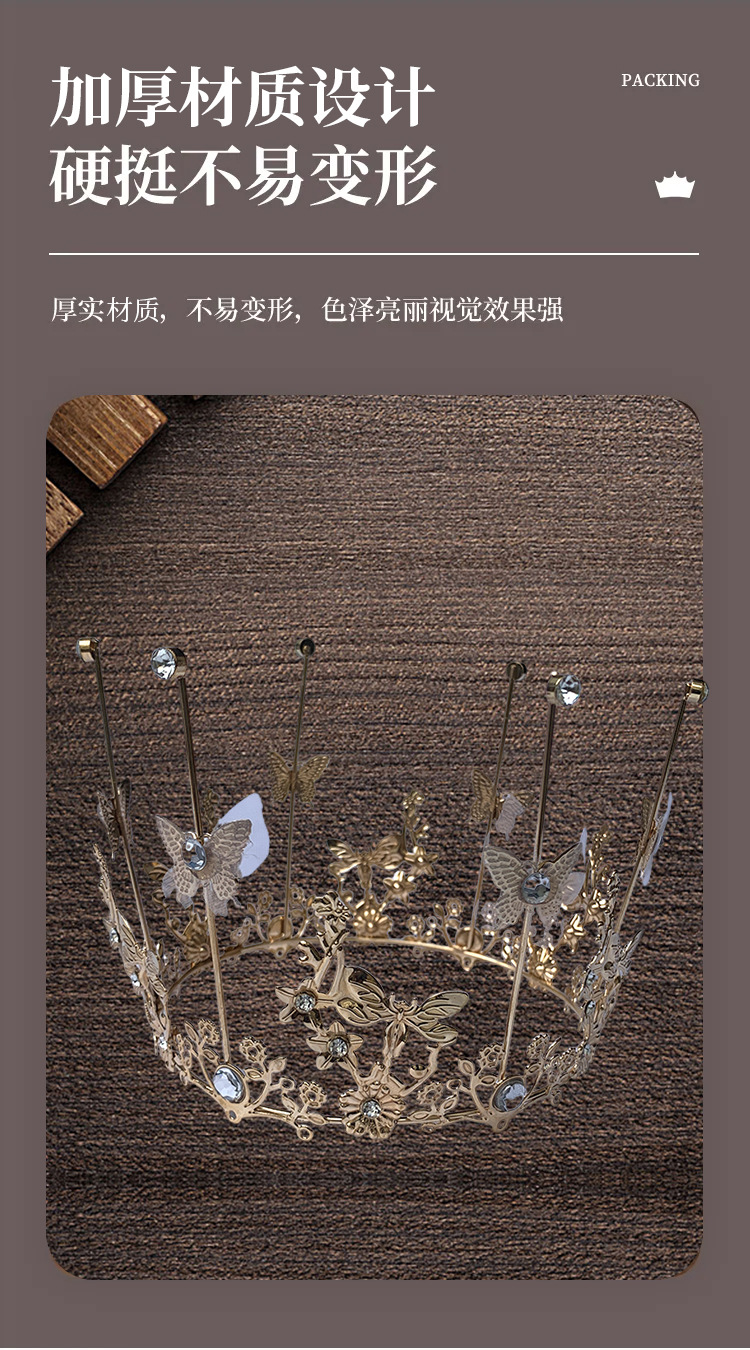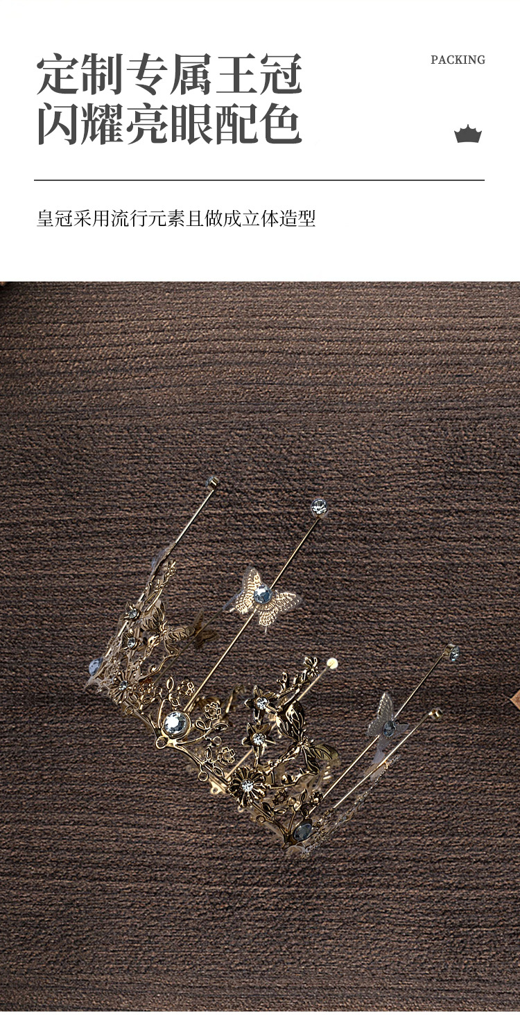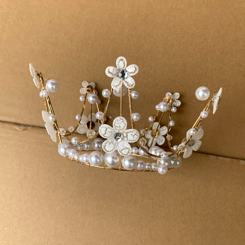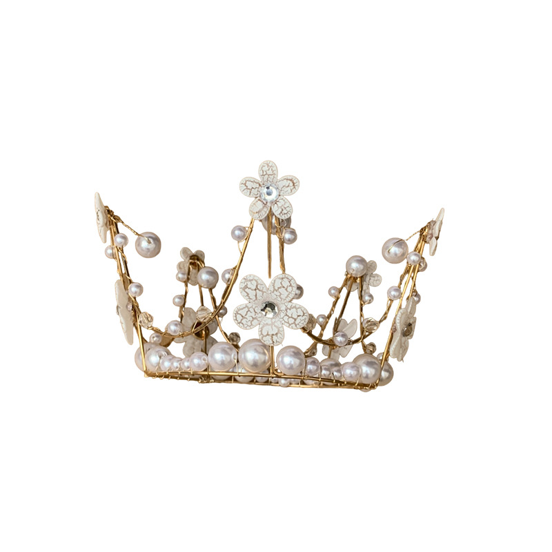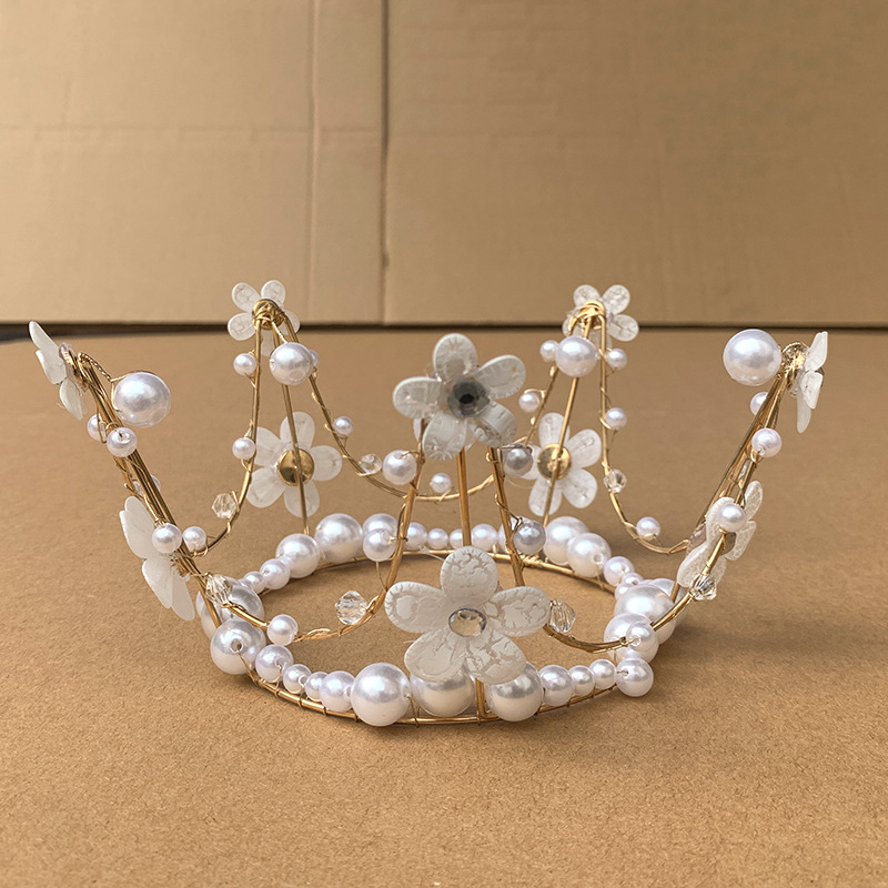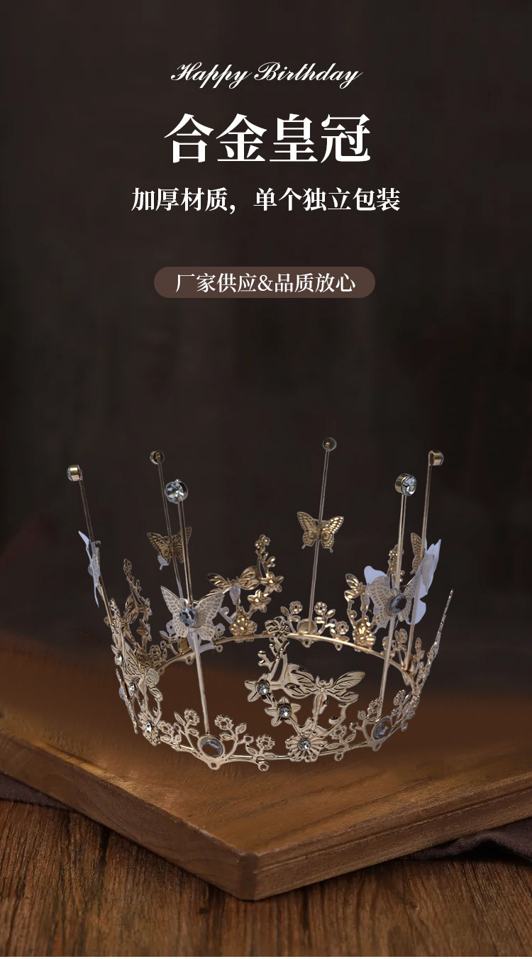 彩珠皇冠蛋糕装饰摆件成人儿童女王婚礼珍珠烘焙配件网红生日插牌