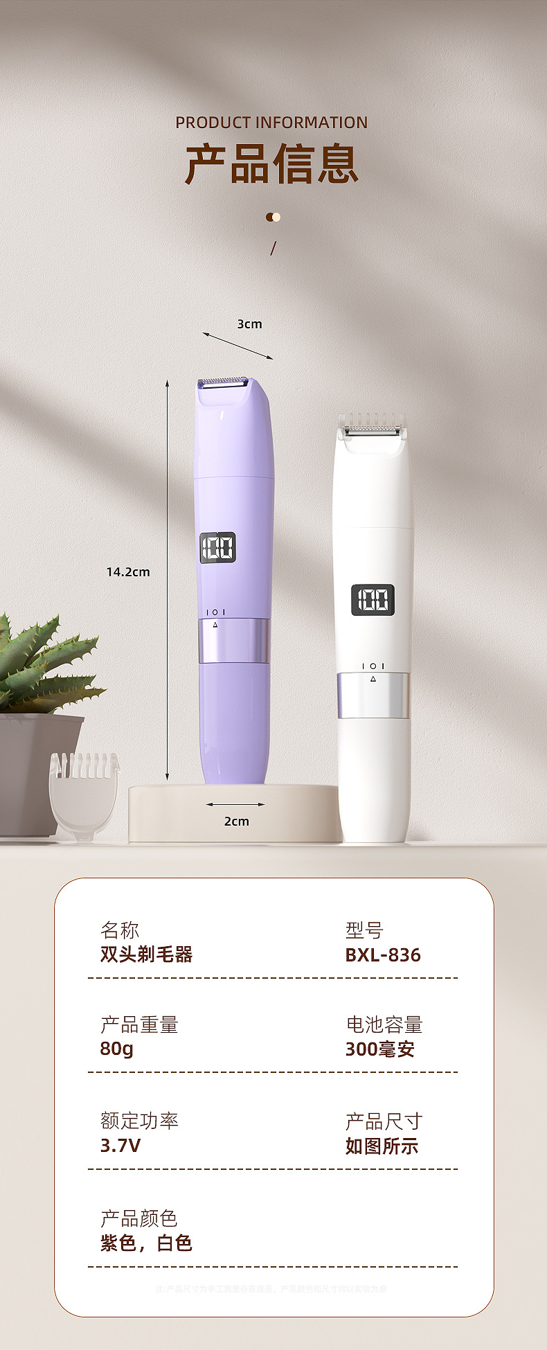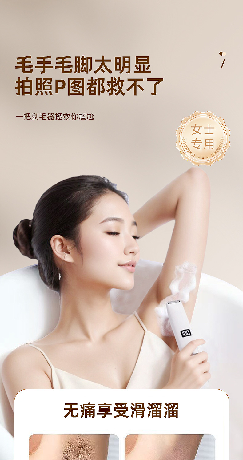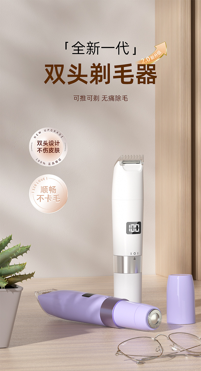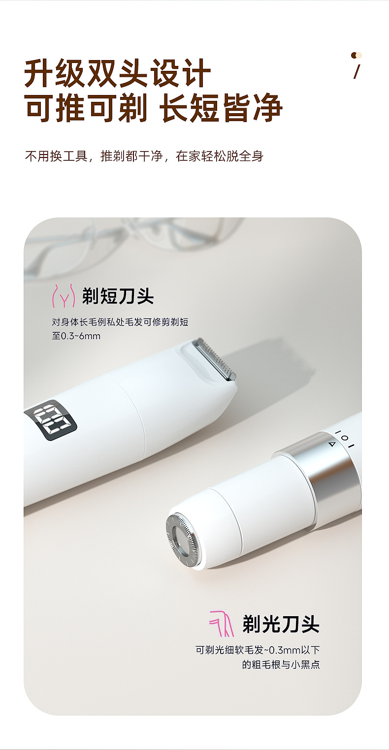跨境双头2合1电动脱毛器女士私密修剪器多功能家用数显水洗脱毛仪
