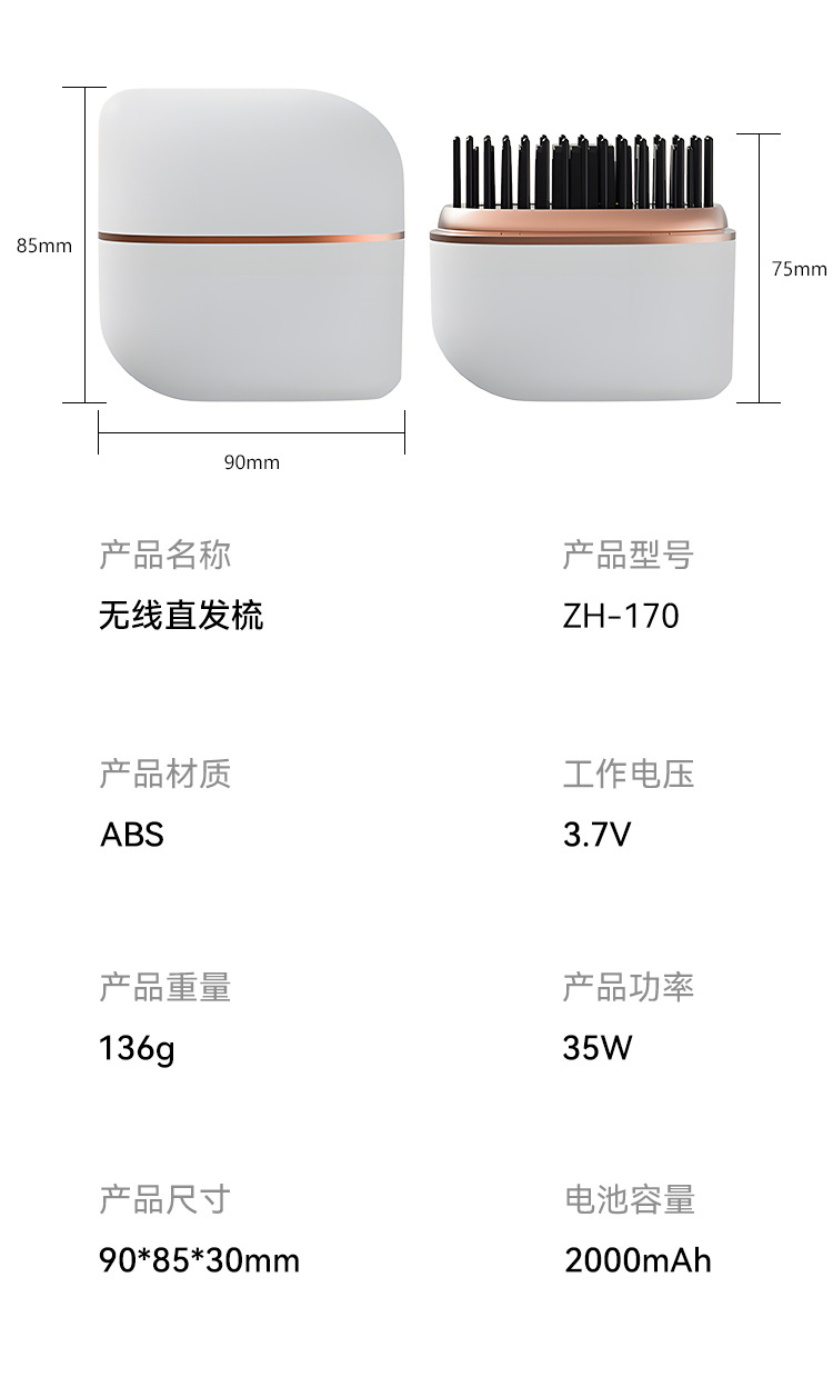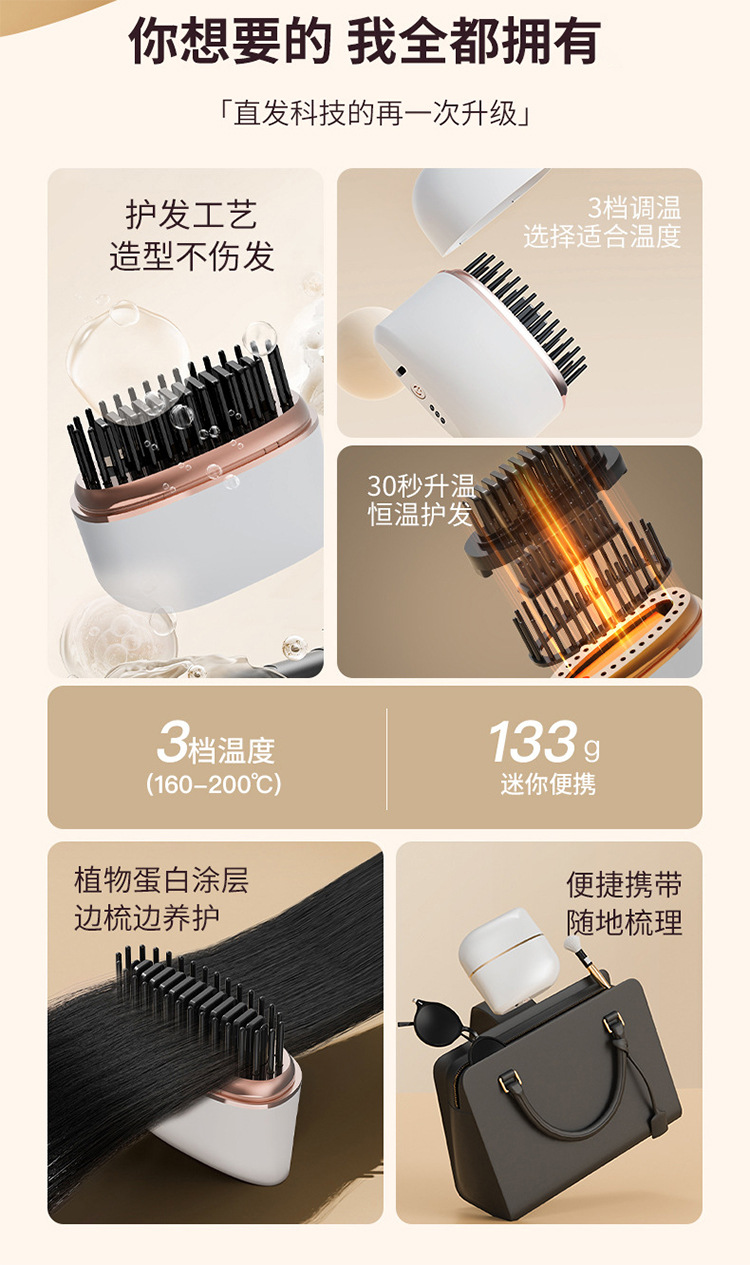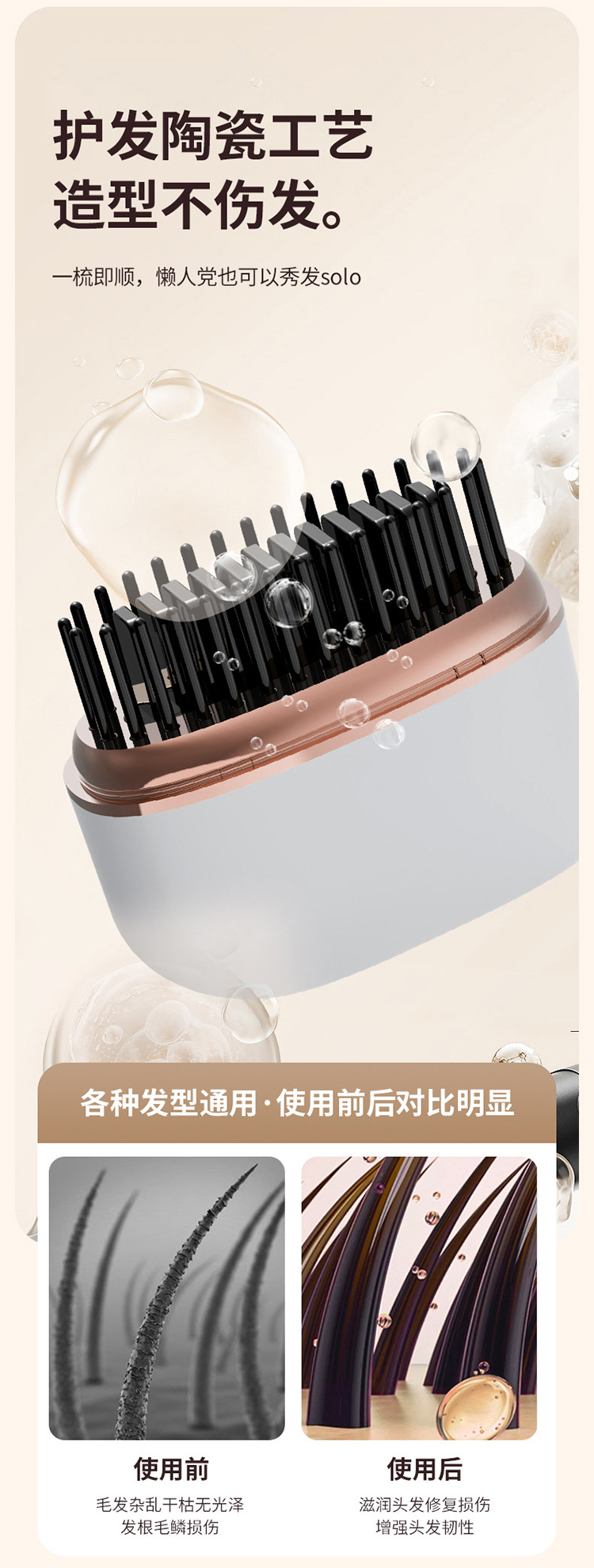 便捷装迷你无线一体便捷口袋式学生宿舍家用直发梳三档调温美发梳