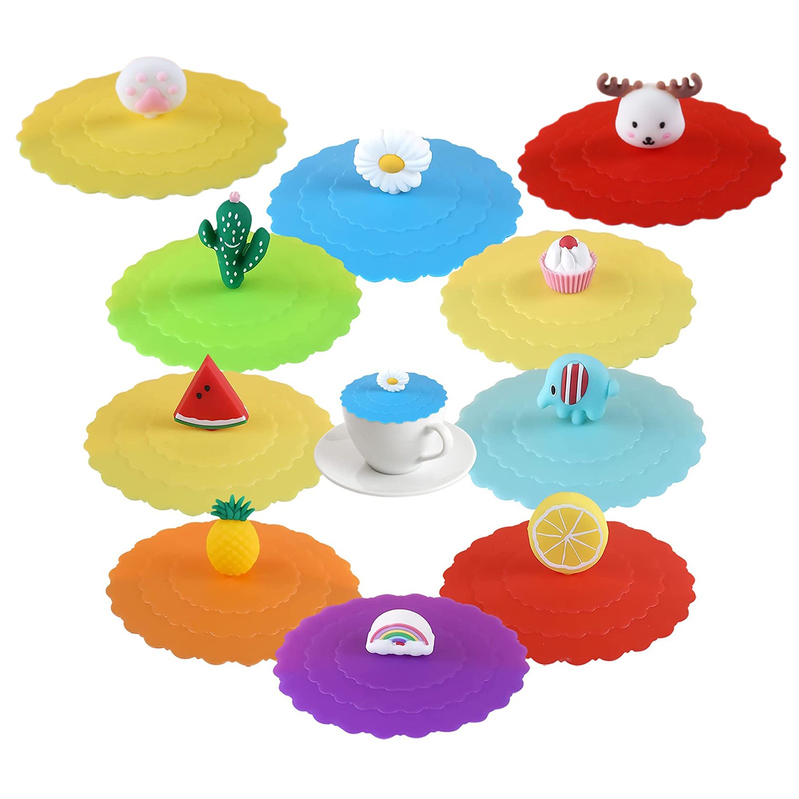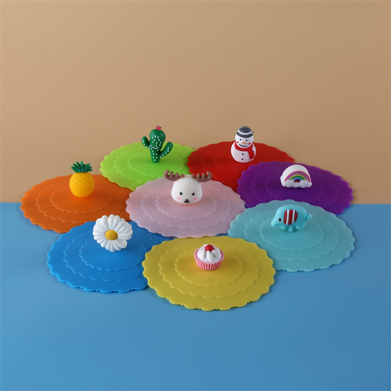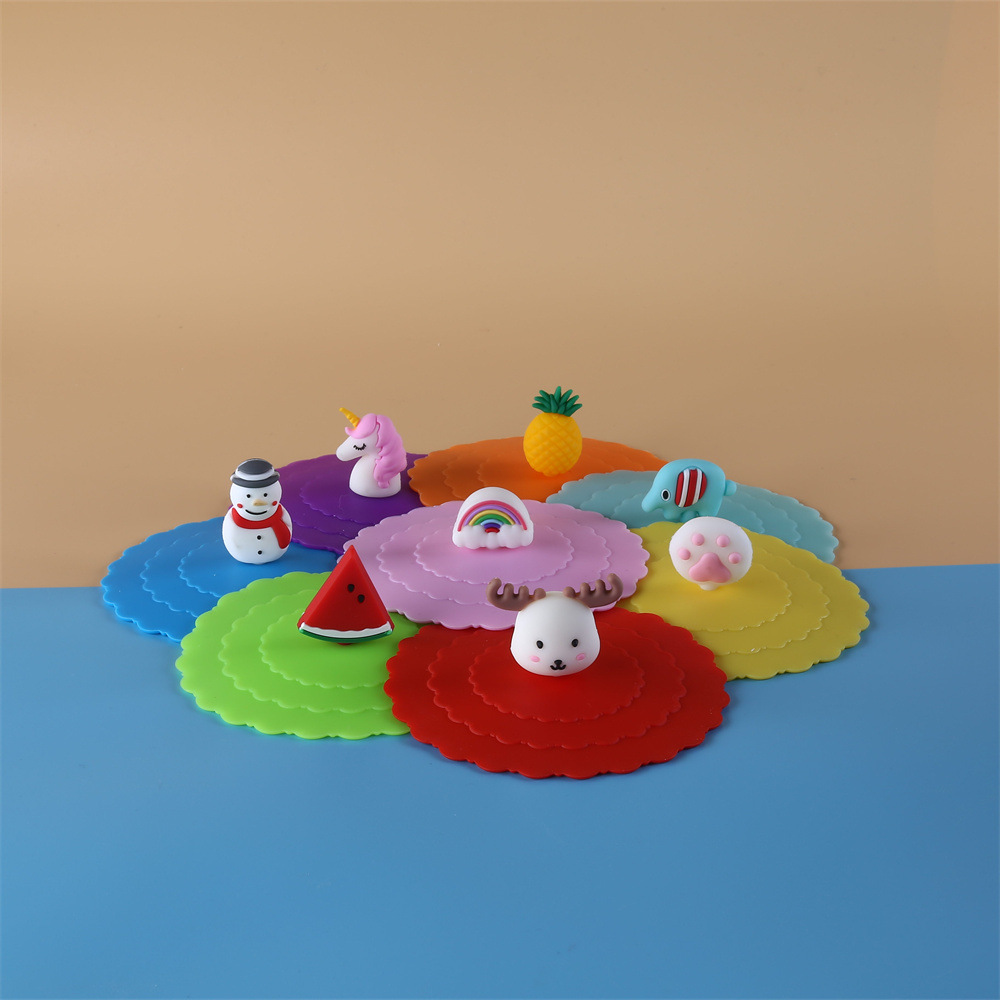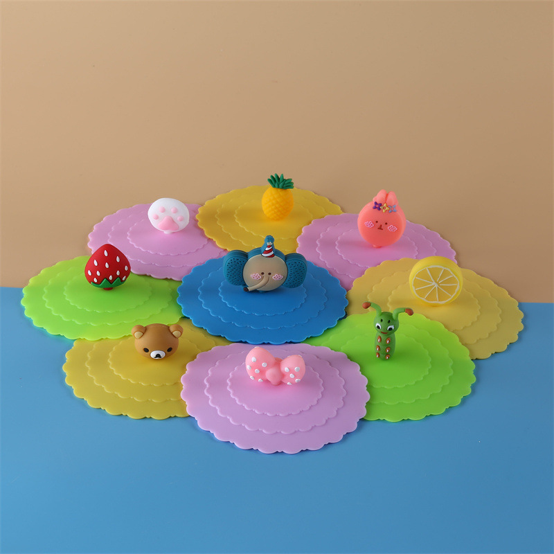 波浪盖 硅胶盖卡通可爱通用防尘可拆卸公仔玩偶硅胶杯盖 小学生通