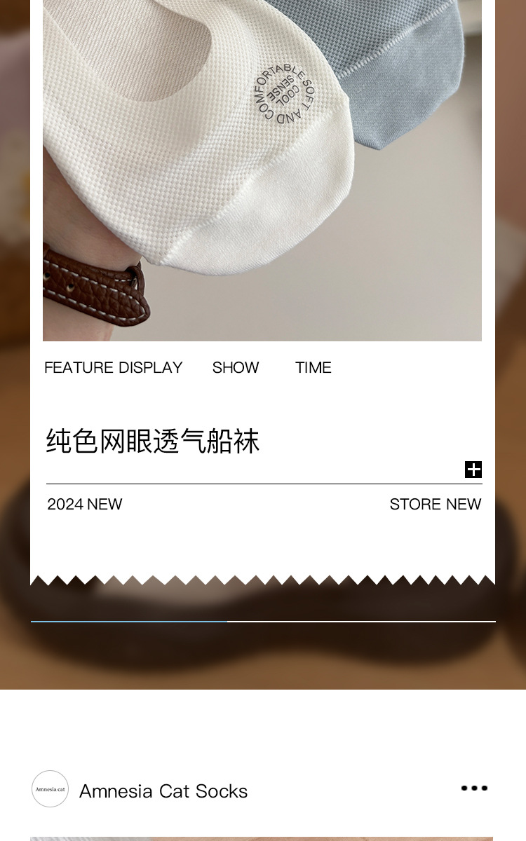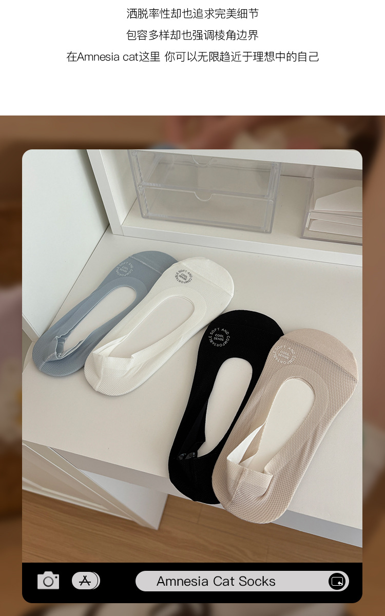 2024 清凉舒适立体网眼透气吸汗浅口袜子隐形女袜纯色休闲船袜薄