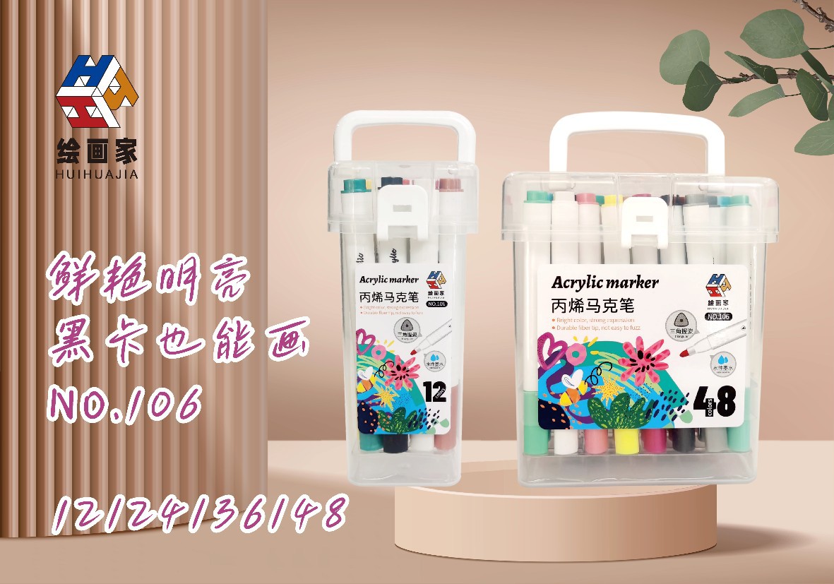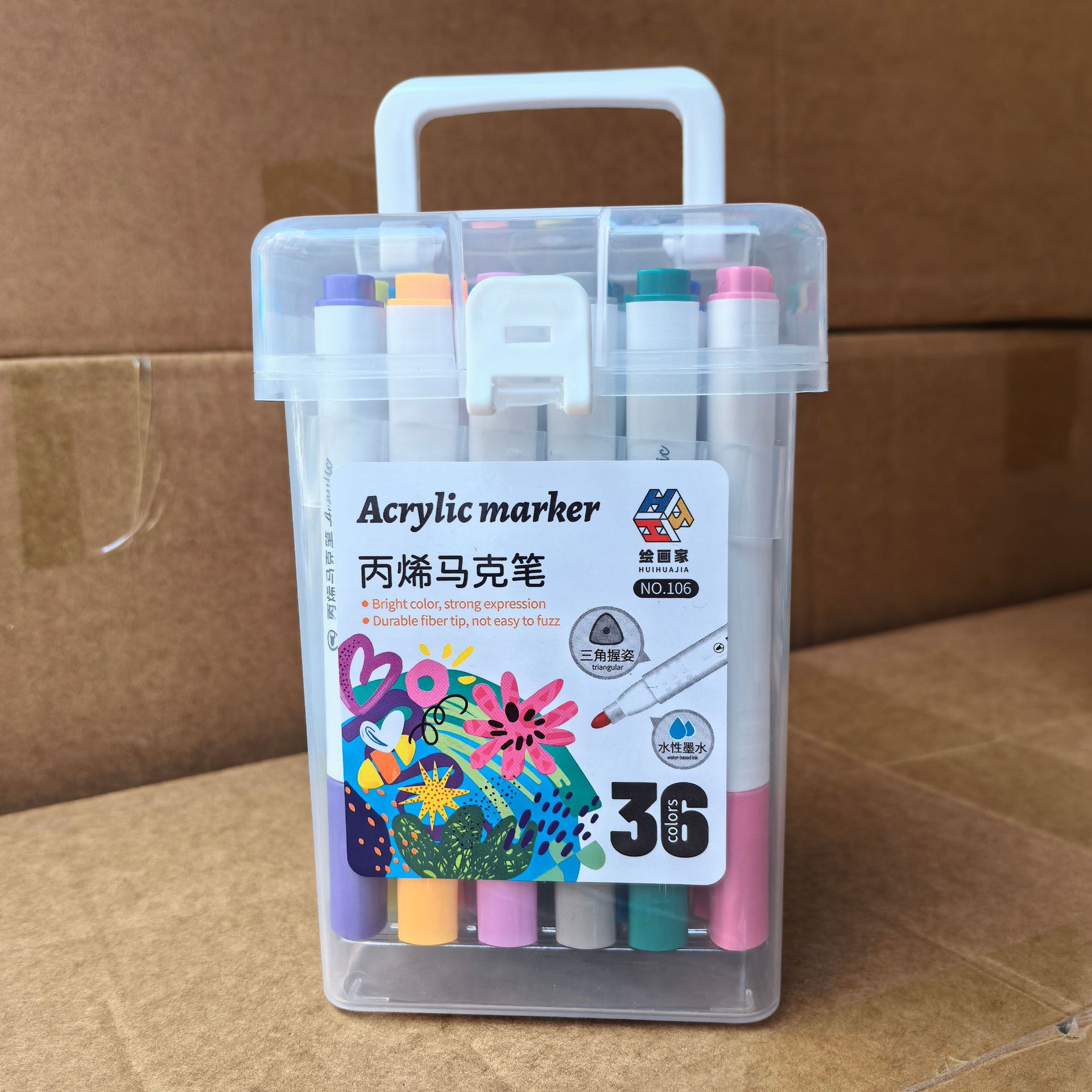 桶装丙烯马克笔儿童水彩笔学生画画笔不透色可叠色丙烯马克笔批发