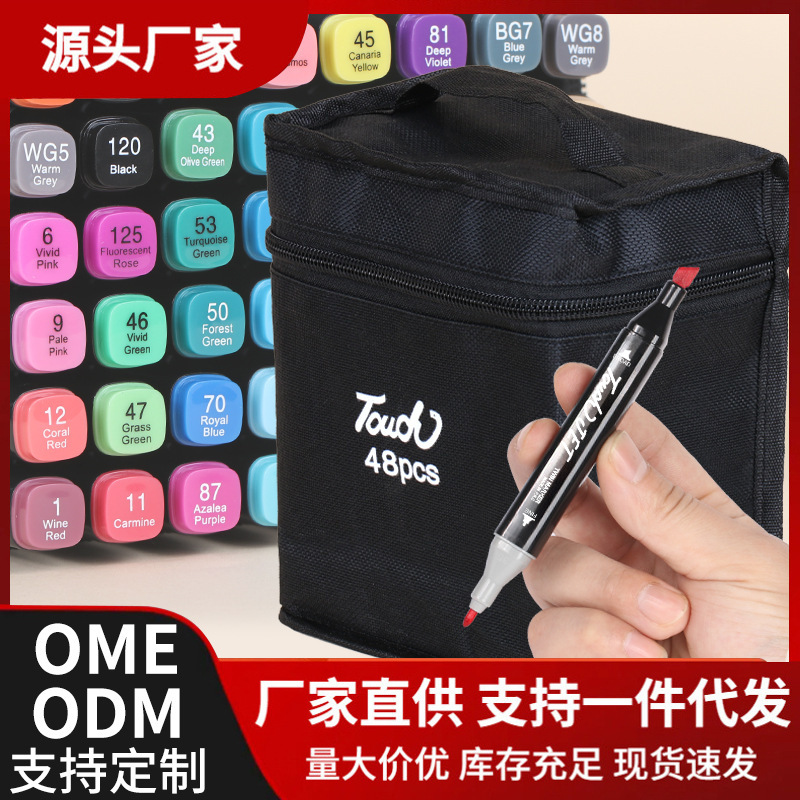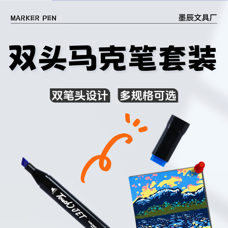 Touch双头黑色马克笔套装速干油性彩色画笔儿童大号水彩笔学童