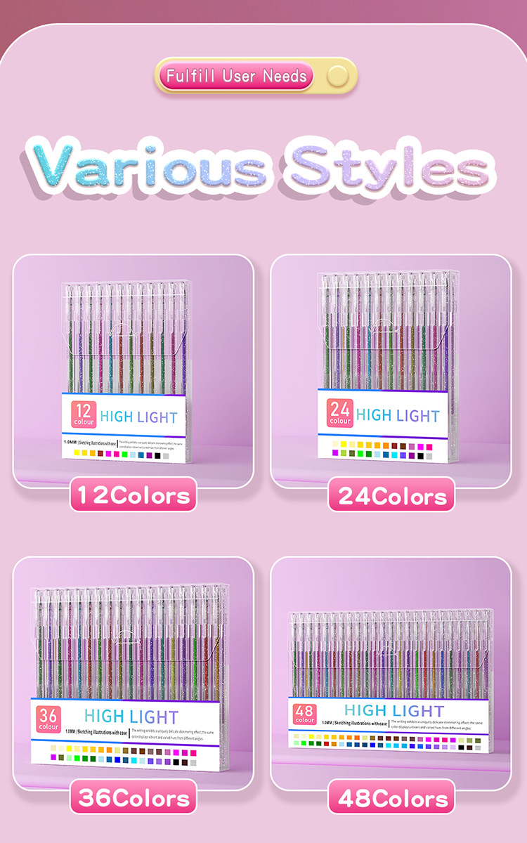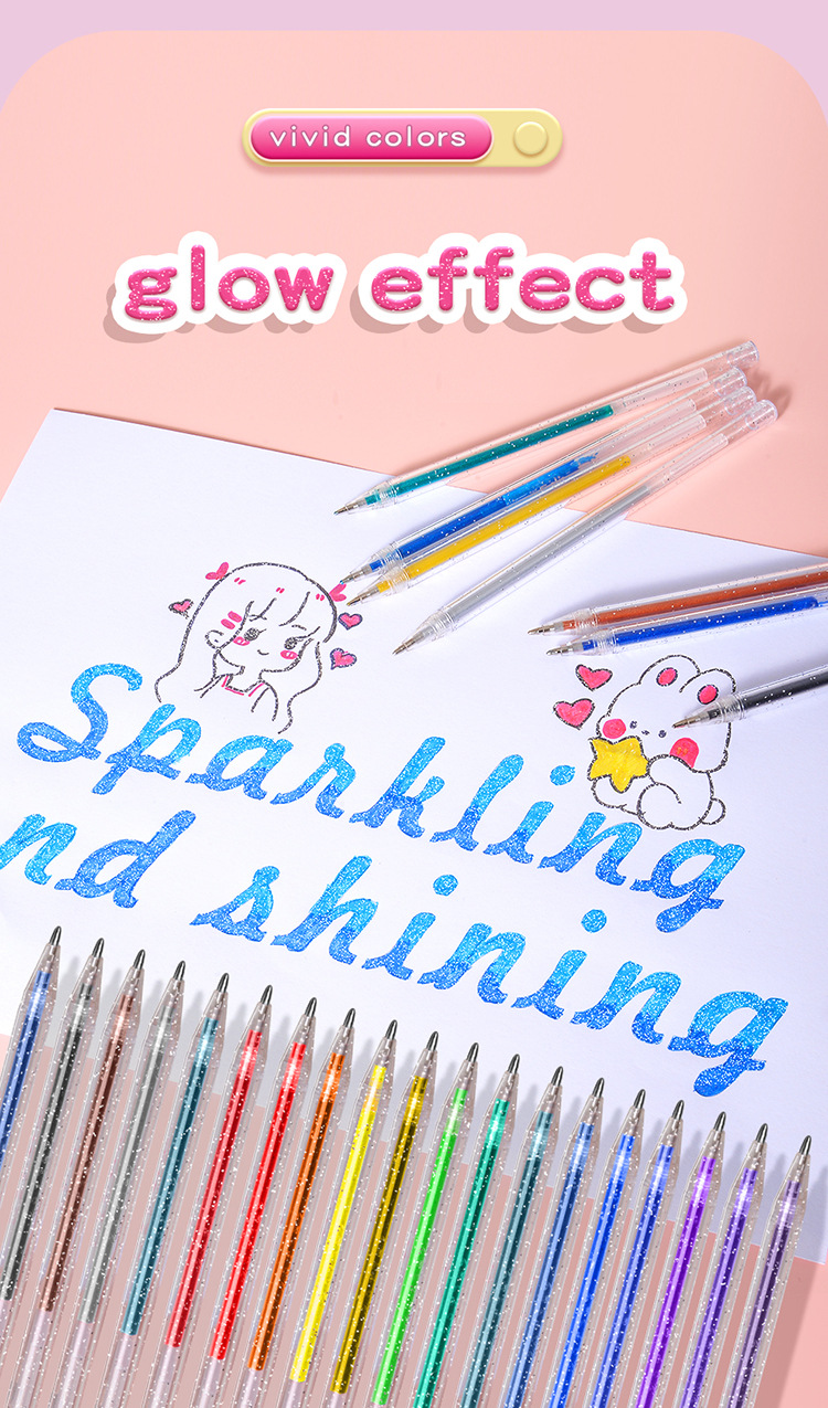 闪光啫喱笔套装彩色中性笔绘画做笔记专用手帐笔学生1.0mm画画笔