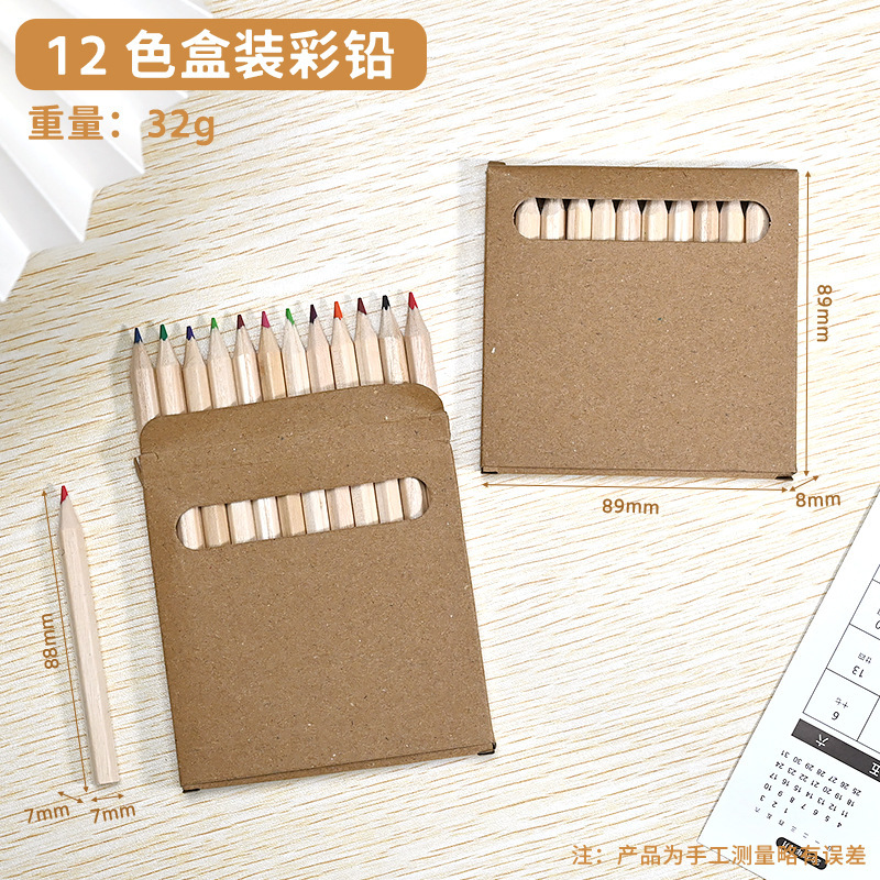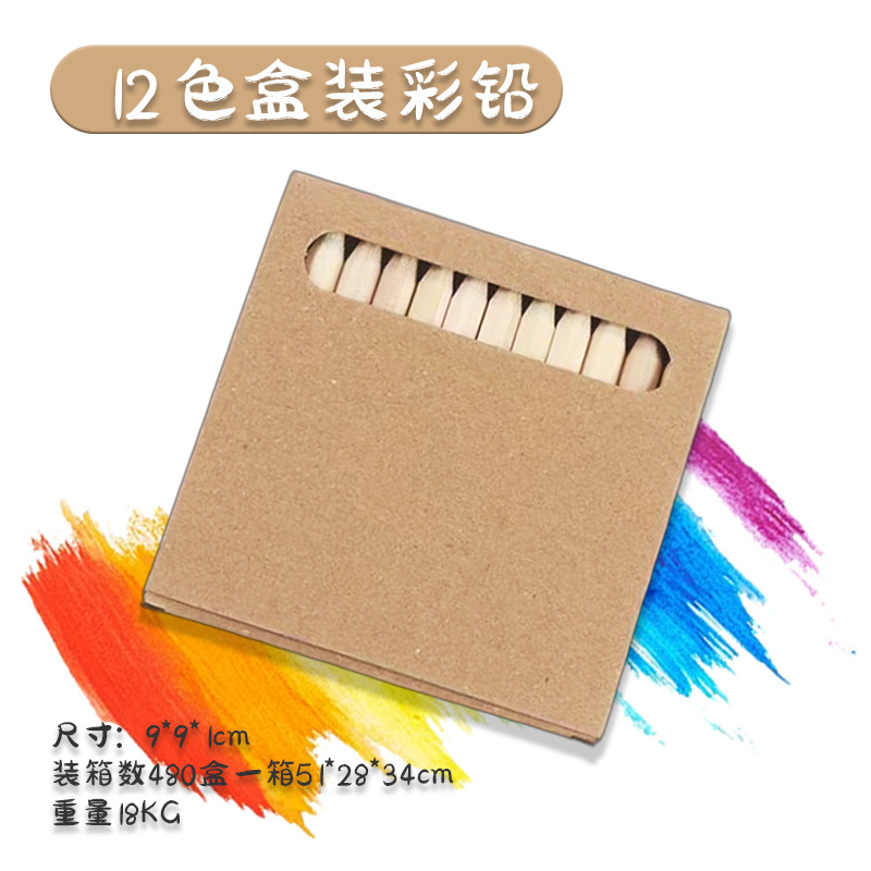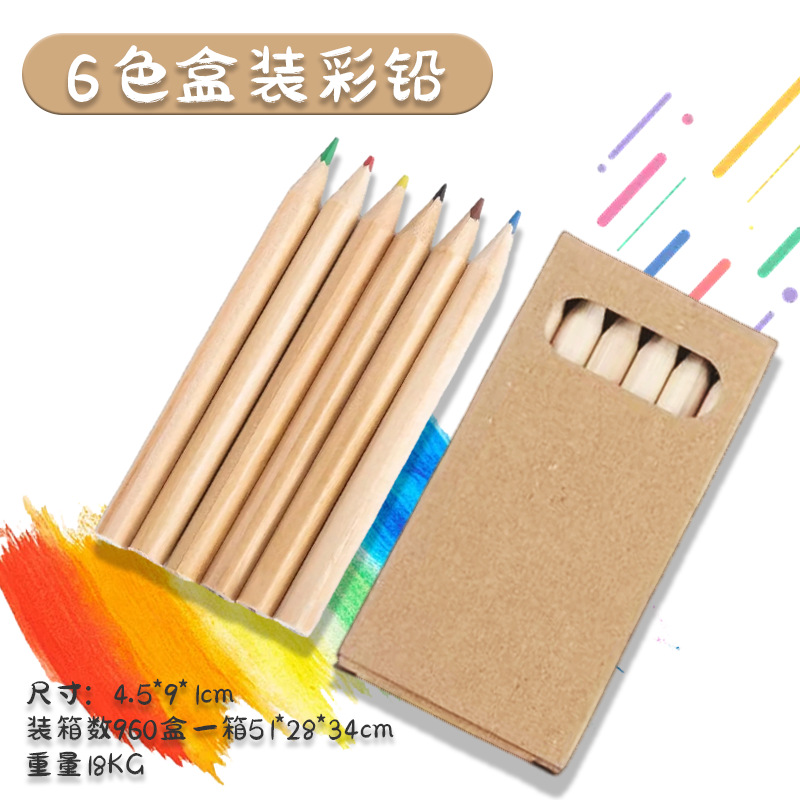 晓梦原木色彩铅6色12色盒装彩色铅笔可加印logo儿童涂鸦绘画铅笔