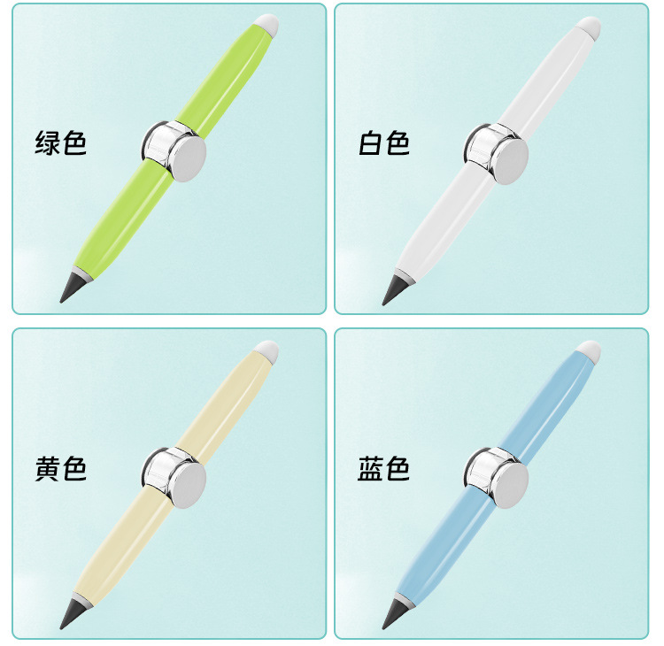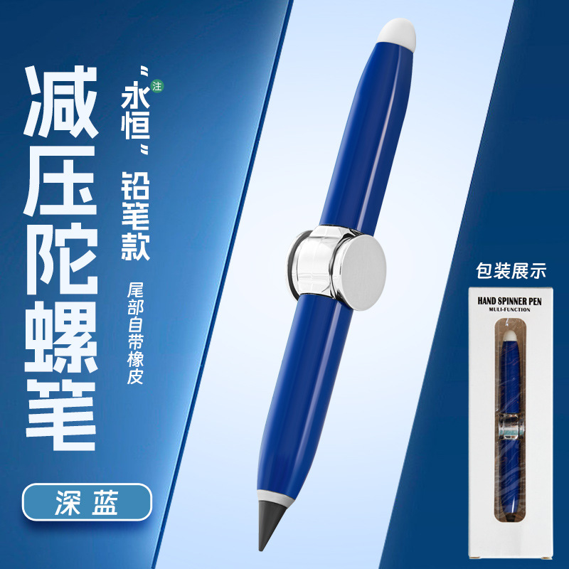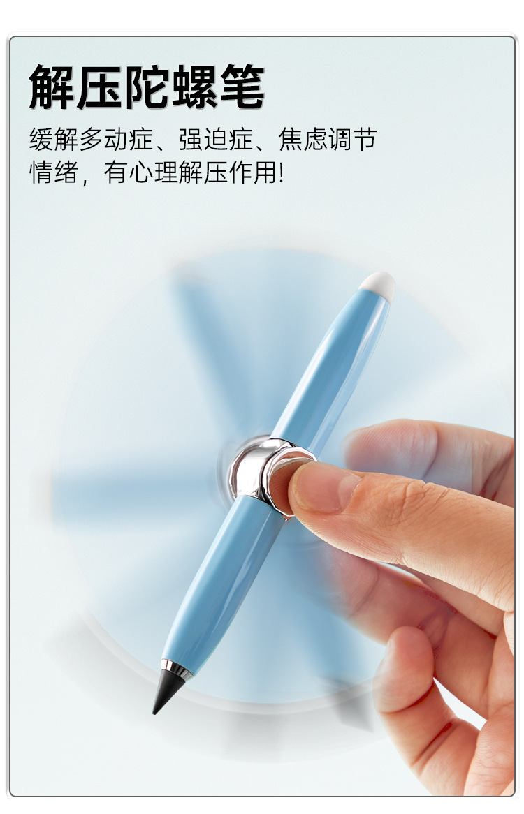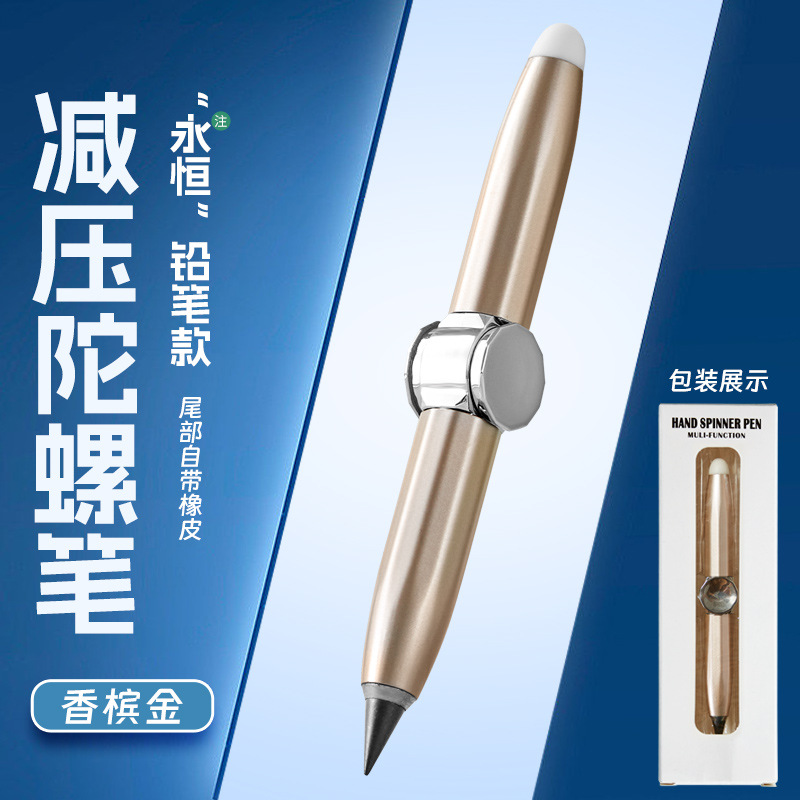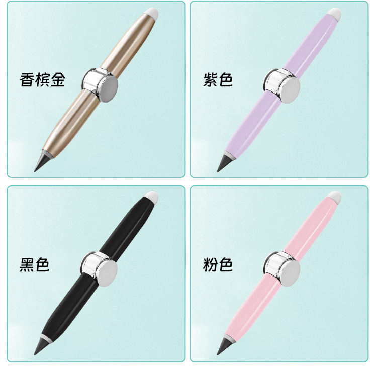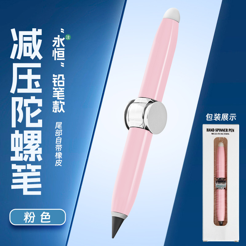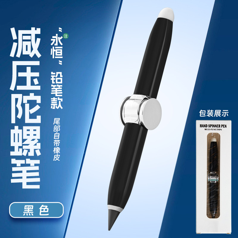 多功能创意金属旋转发光解压铅笔自带橡皮书写指尖陀螺永恒铅笔
