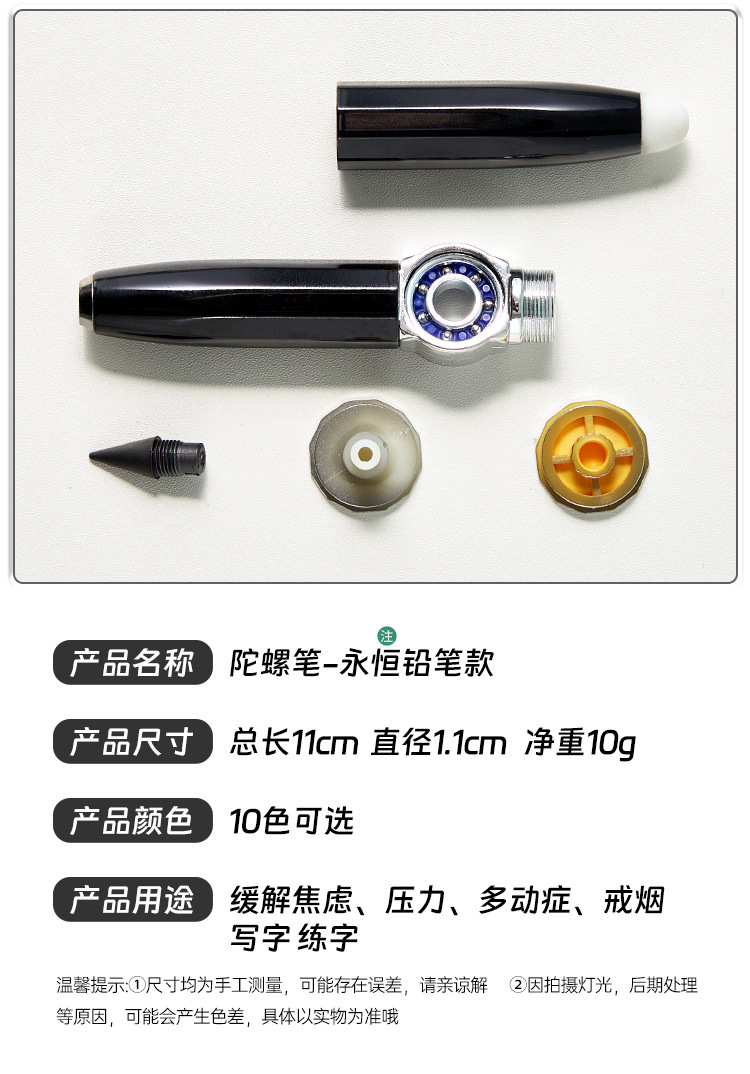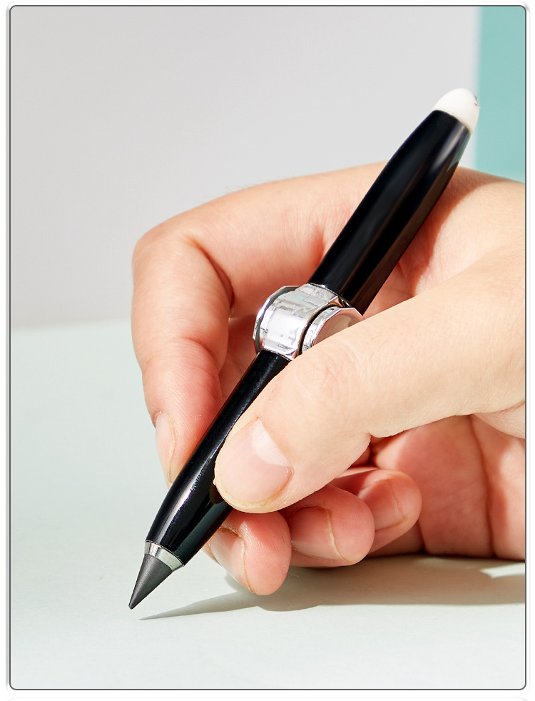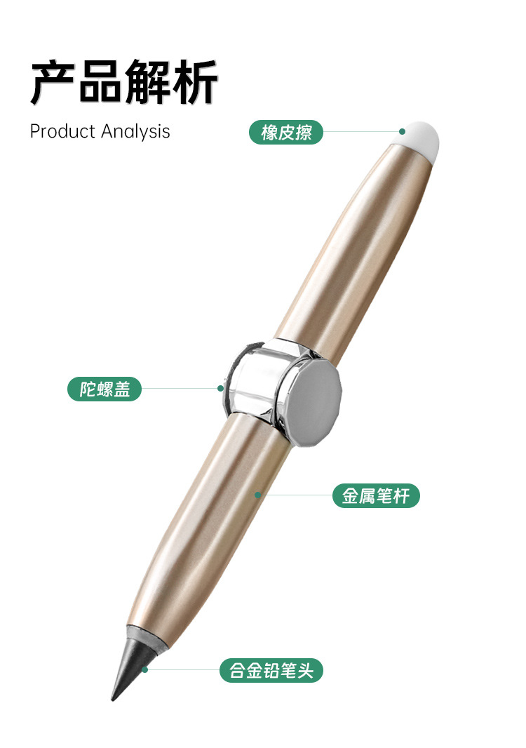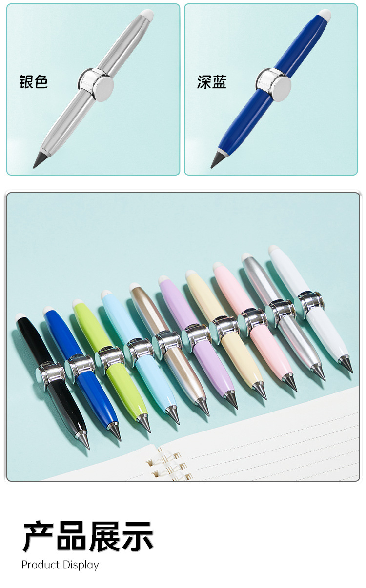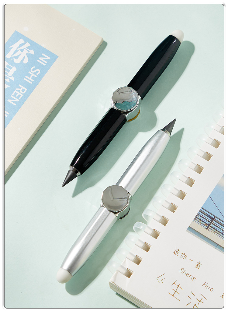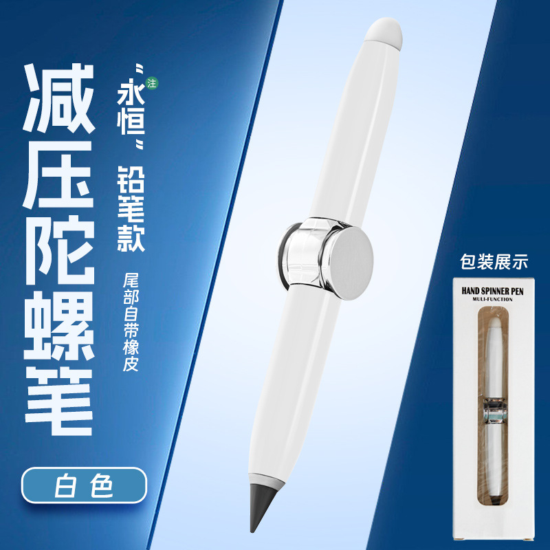 多功能创意金属旋转发光解压铅笔自带橡皮书写指尖陀螺永恒铅笔