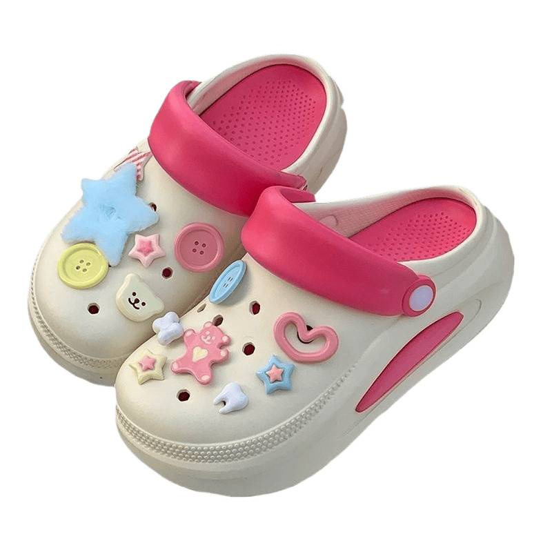 多巴胺厚底洞洞鞋女夏季外穿网红防滑增高沙滩凉鞋包头半拖鞋秋千
