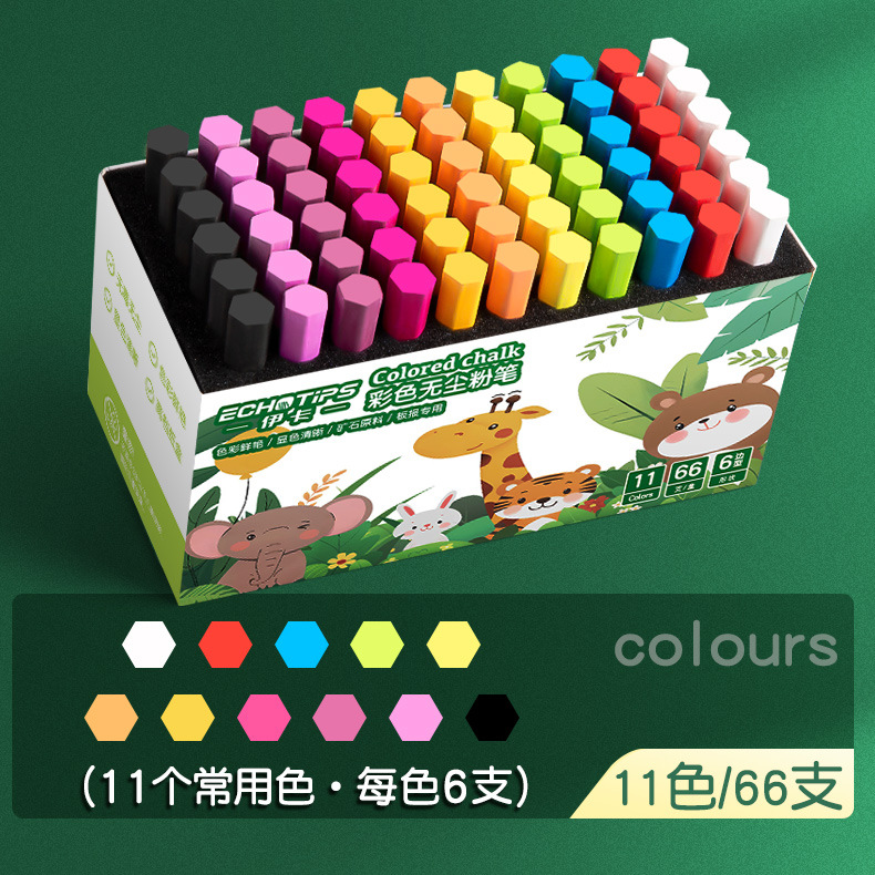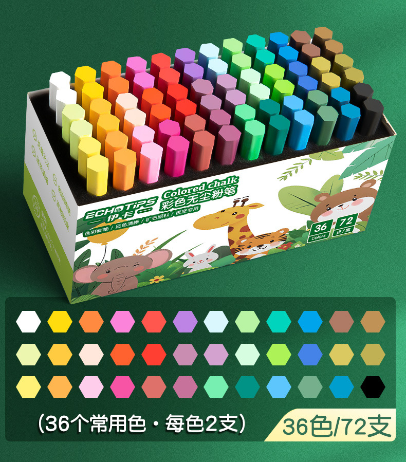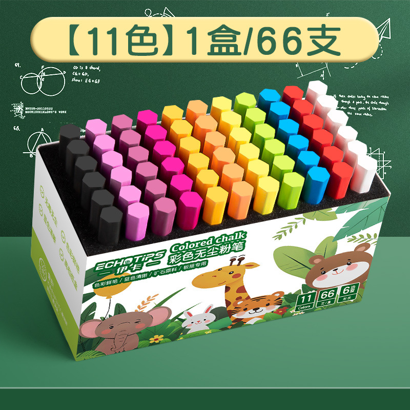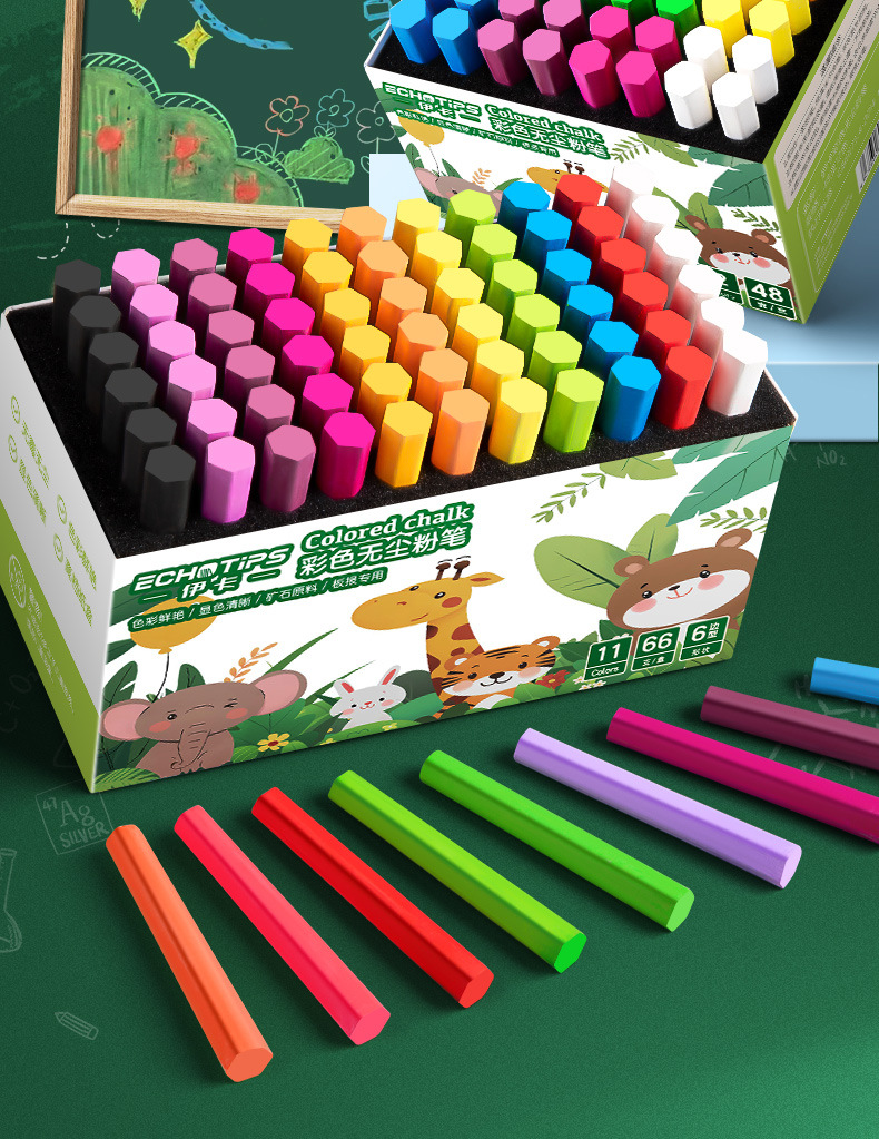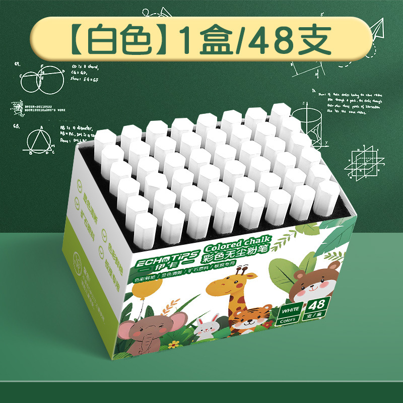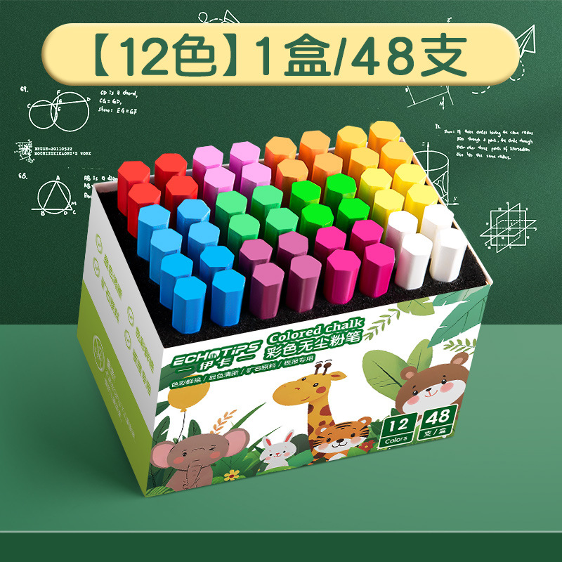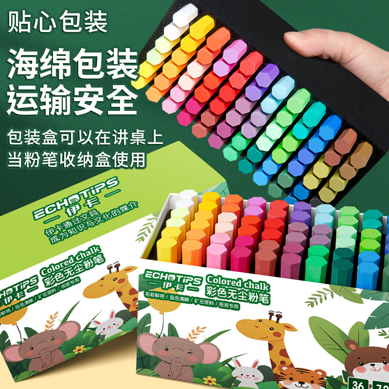 伊卡彩色粉笔无味微尘不扬尘白色儿童家用小学生教学黑板报用