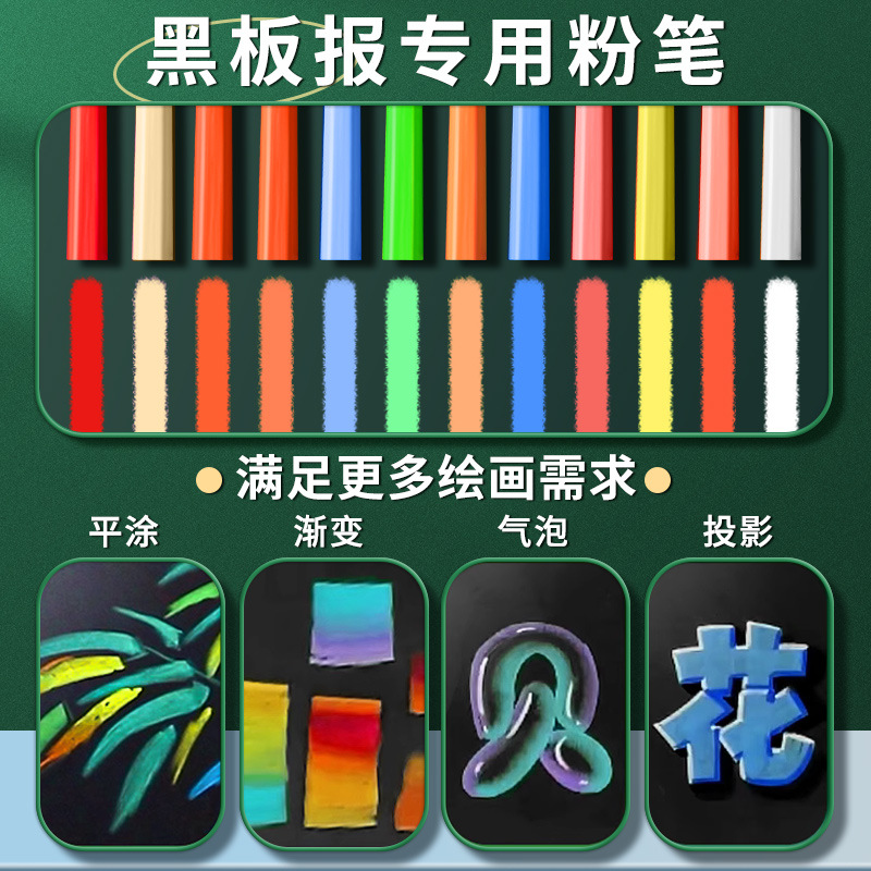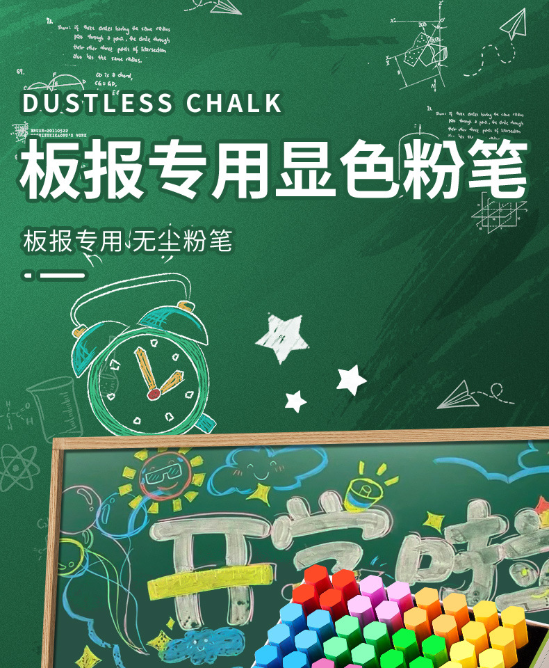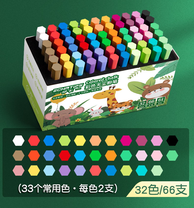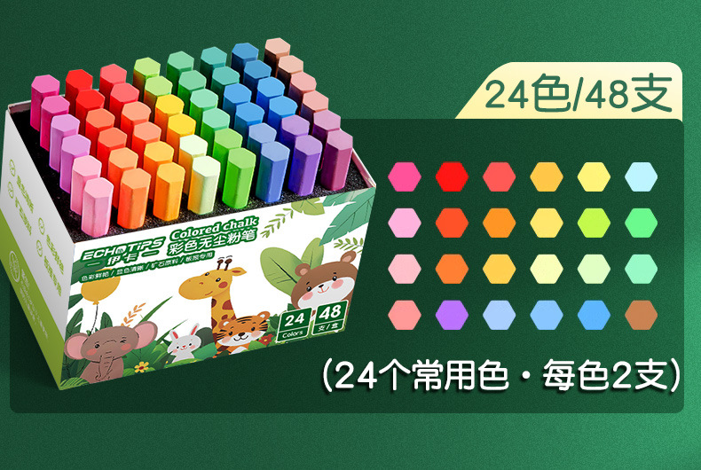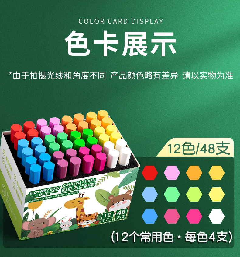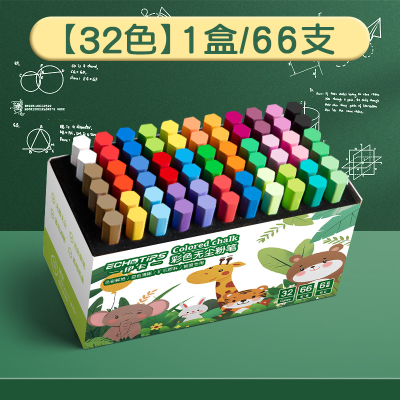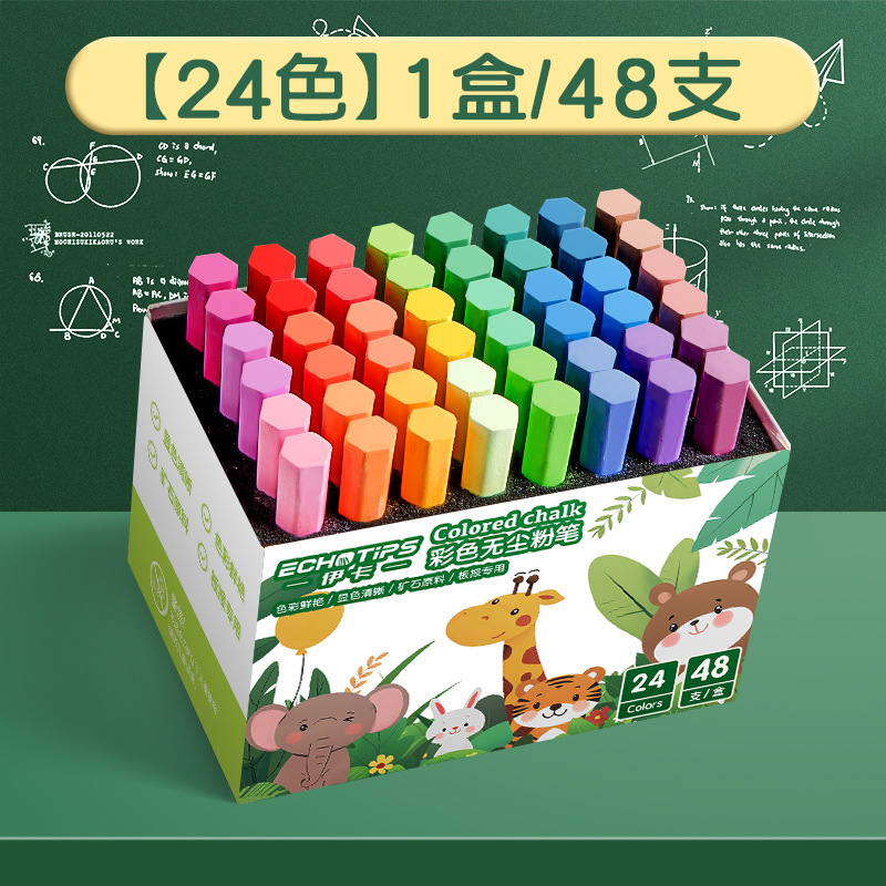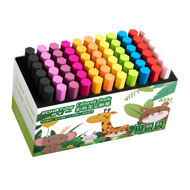 伊卡彩色粉笔无味微尘不扬尘白色儿童家用小学生教学黑板报用