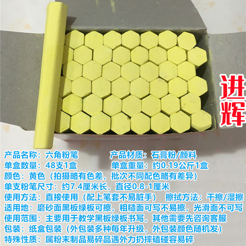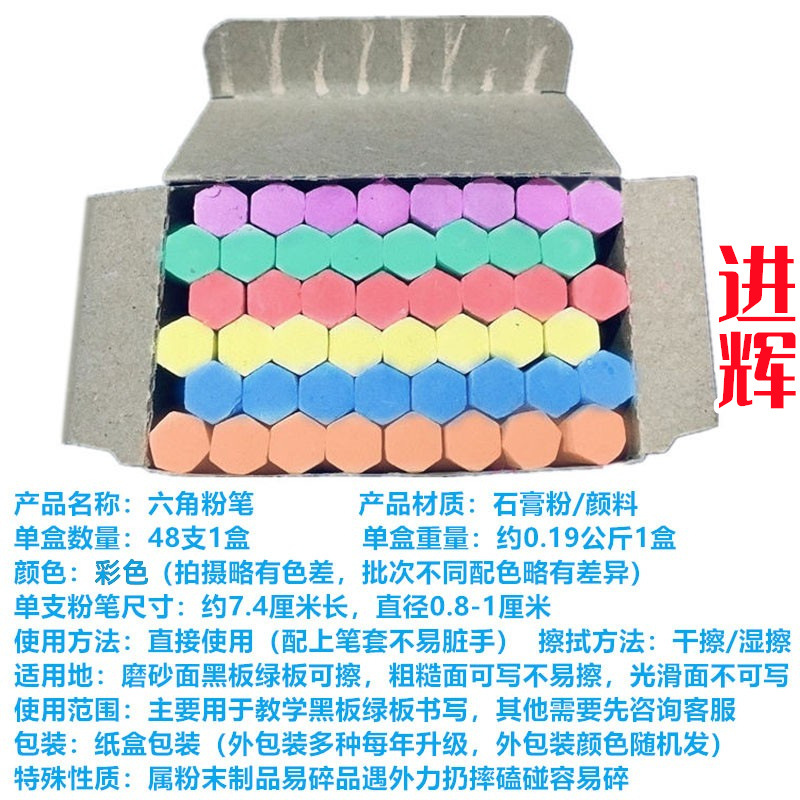 10盒装进辉牌教学六角彩色红色黄色紫色绿色蓝色白色微尘普通粉笔