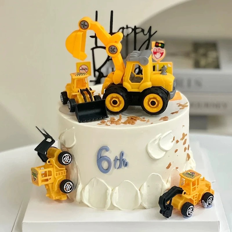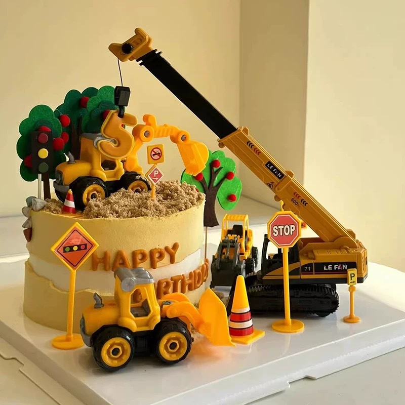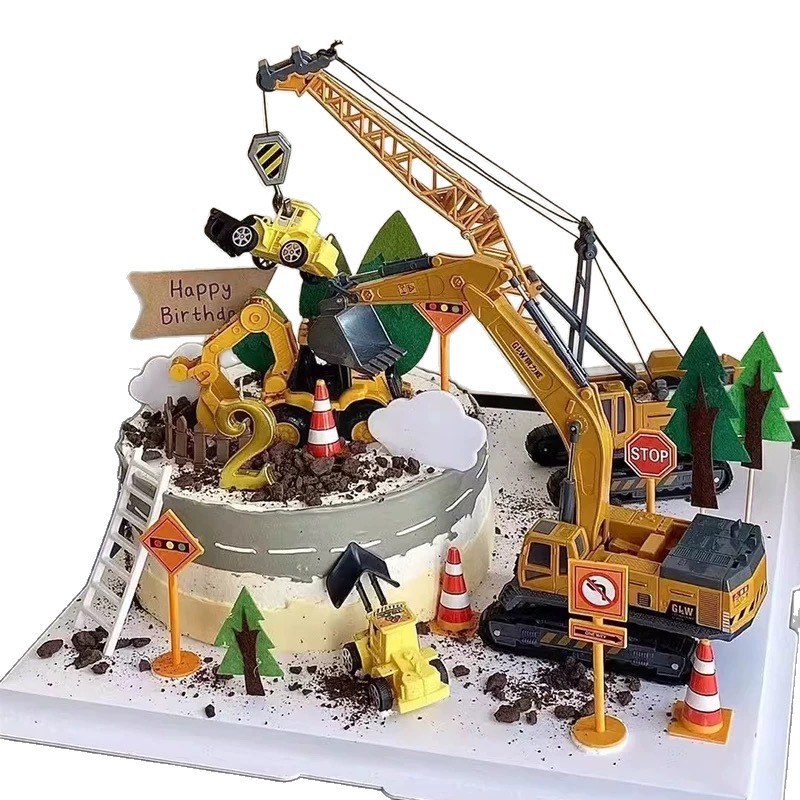 网红挖土机蛋糕装饰挖掘机吊车工程车推土机铲车起重机摆件插件