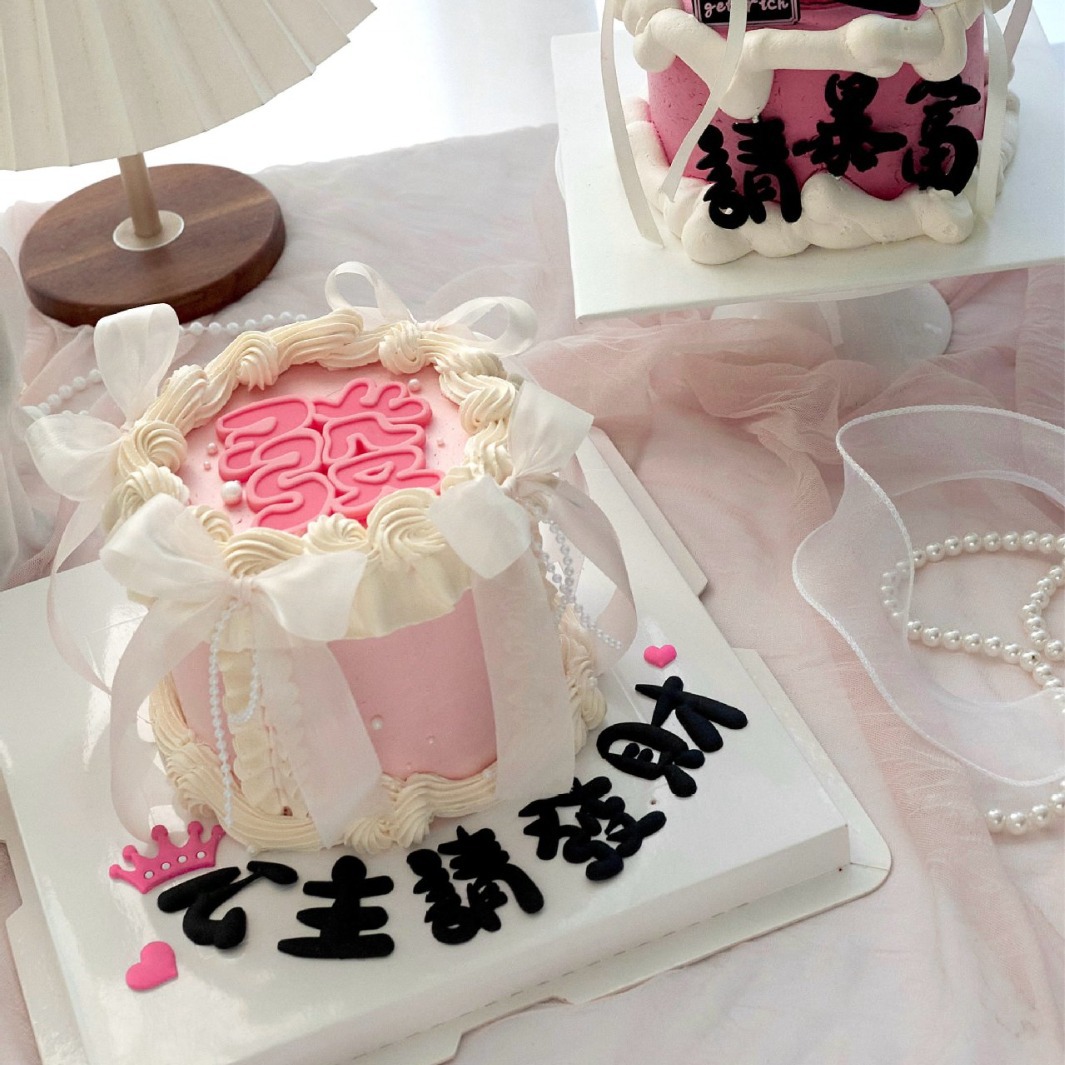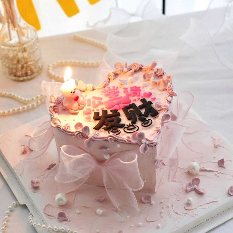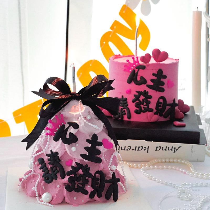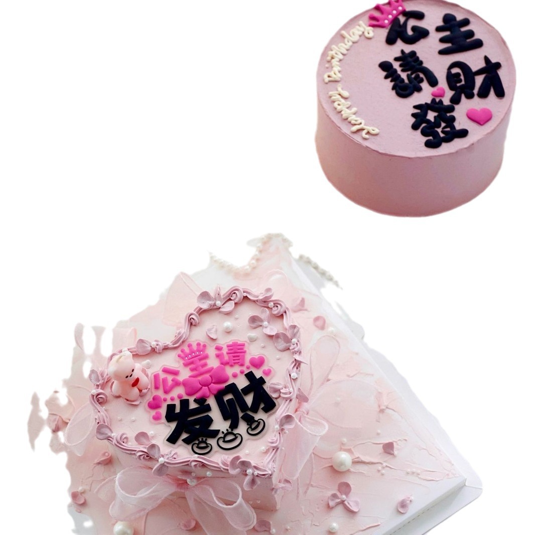 情人节38节公主请发财网红蛋糕装饰 ins女生闺蜜简约生日烘焙摆件