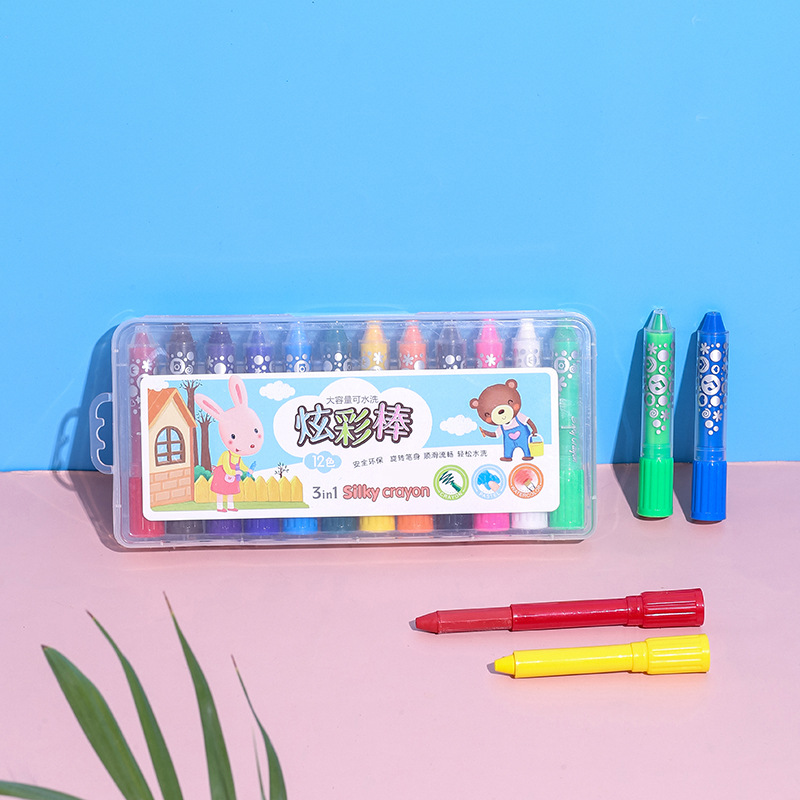 六角油画棒12色36色幼儿园美术绘画棒涂色彩绘棒可水洗画笔