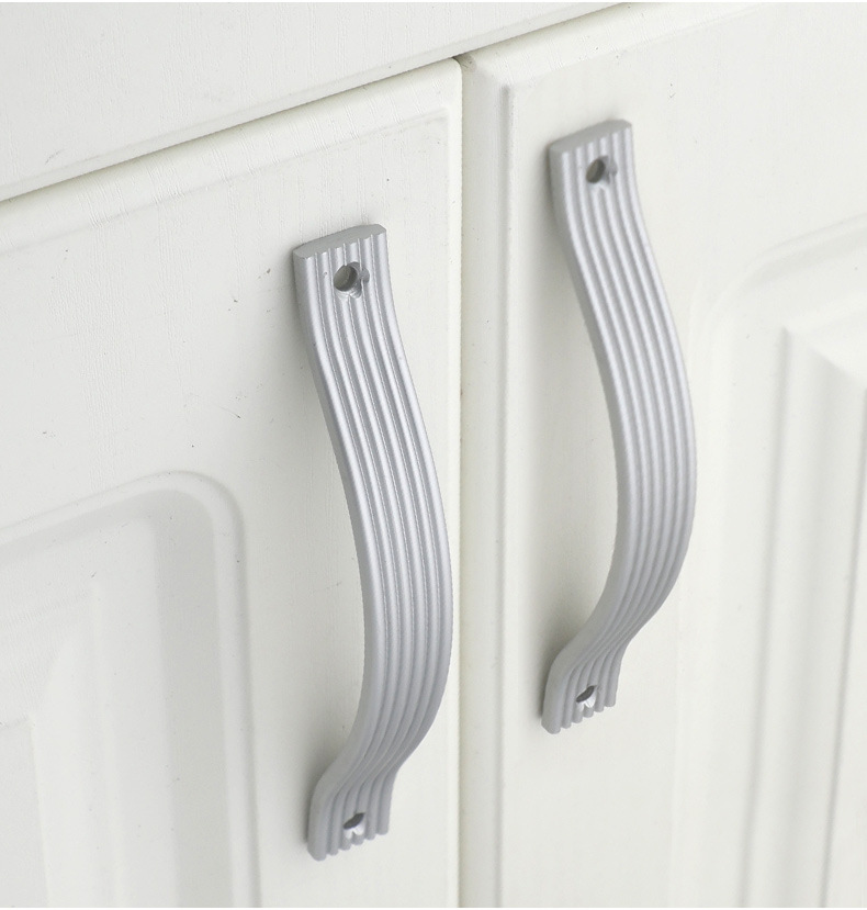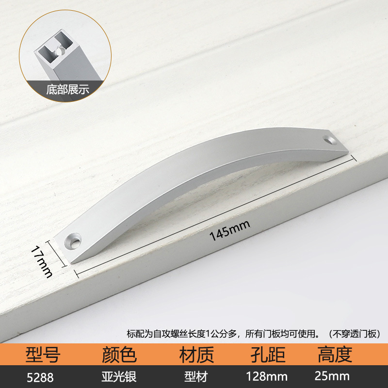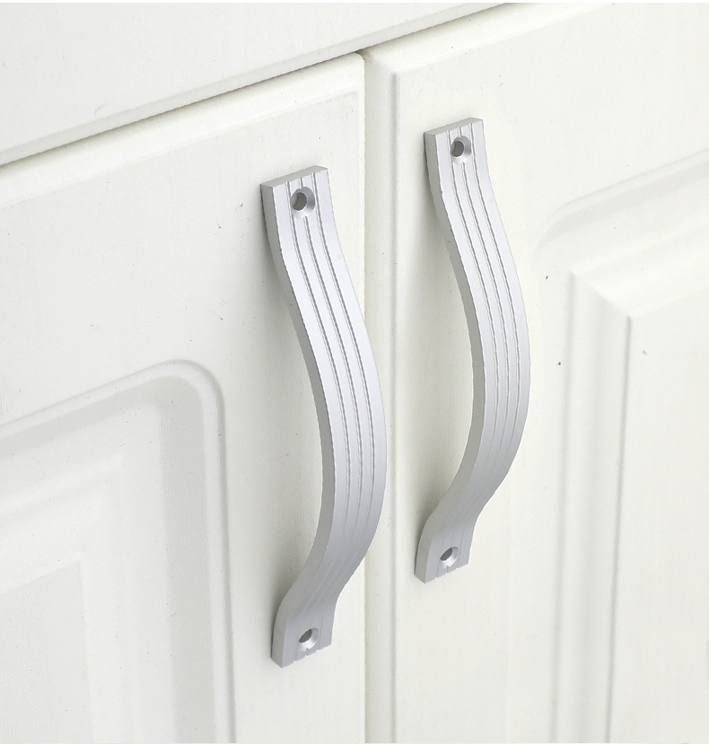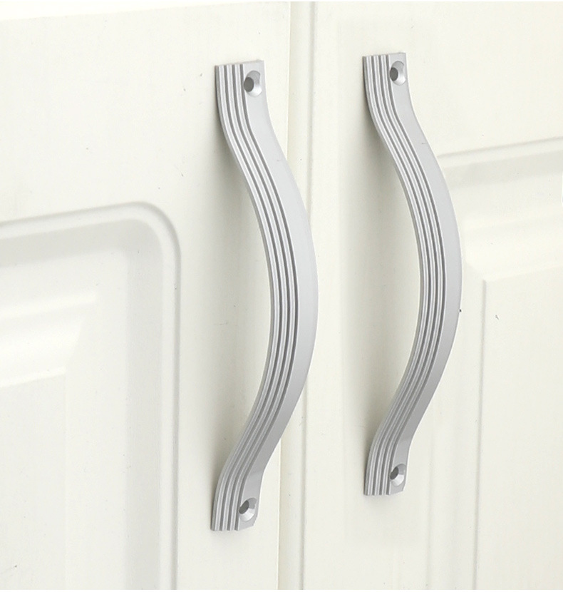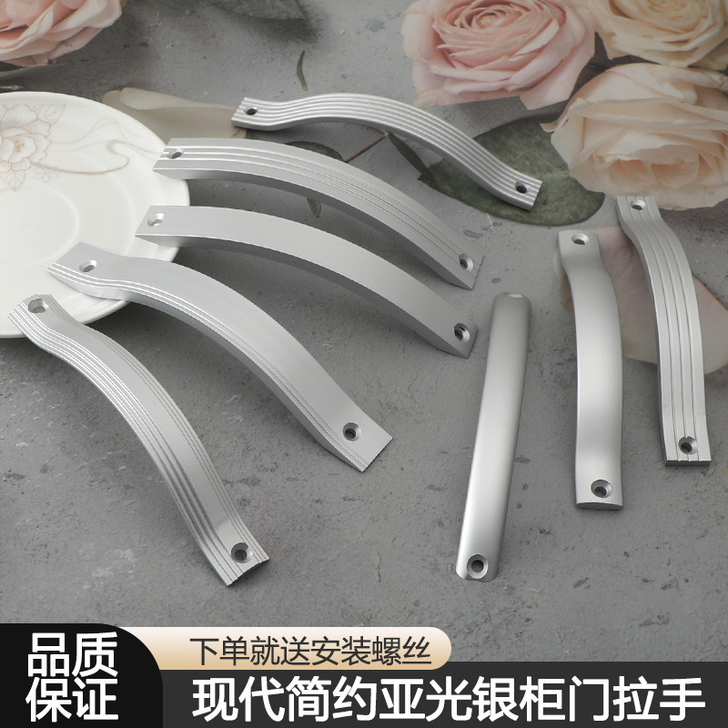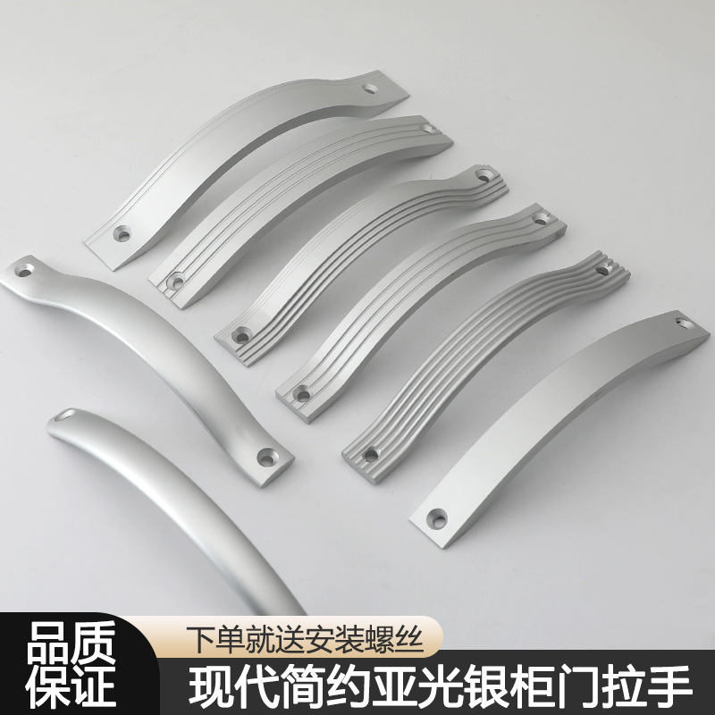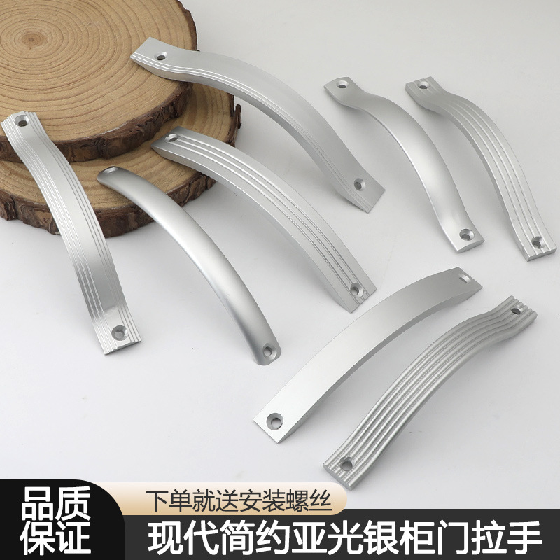 现代简约明装房门橱柜门免打孔拉手银白色衣柜抽屉工程专用小把手