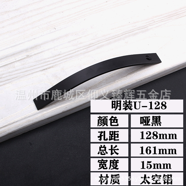 明装拉手加厚实心太空铝拉手橱柜门把手黑色小拉手抽屉明孔大拉手