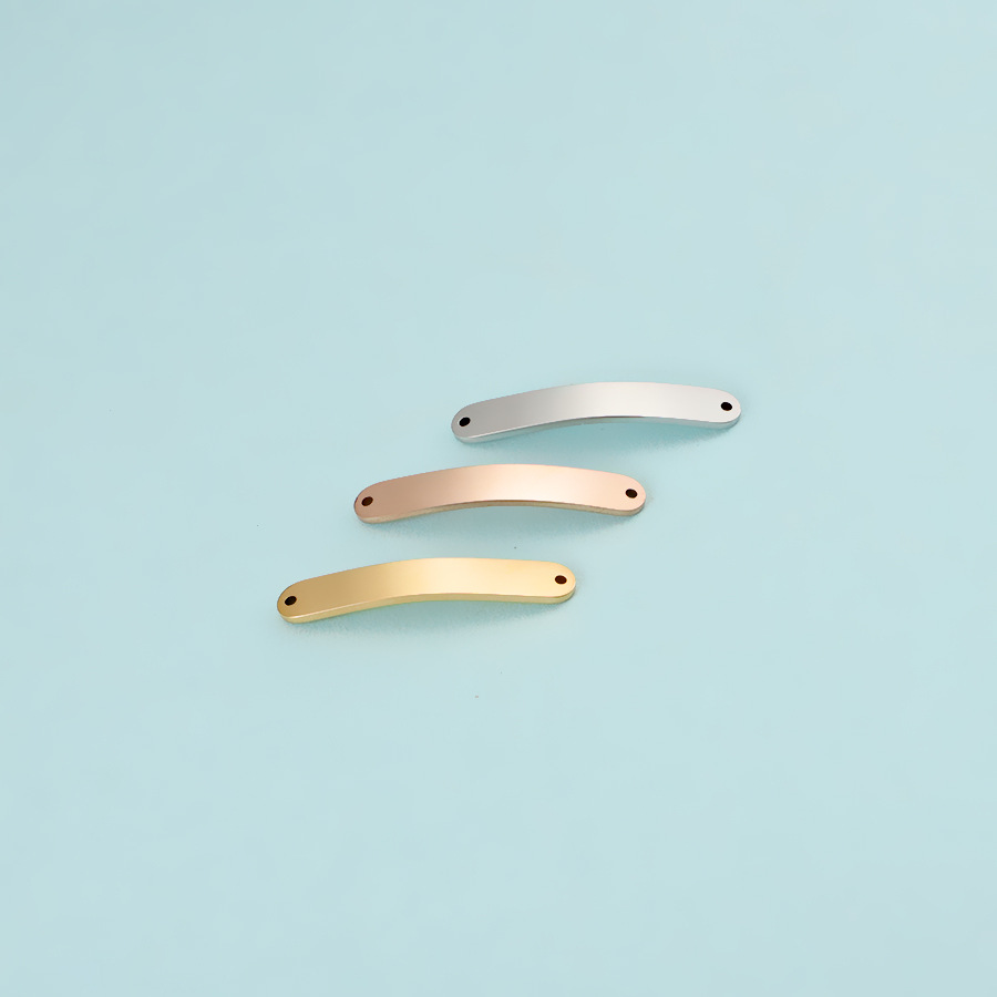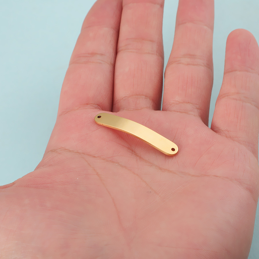 现货6*35mm弯形长条DIY饰品配件镜面不锈钢长方形双孔吊坠连接器