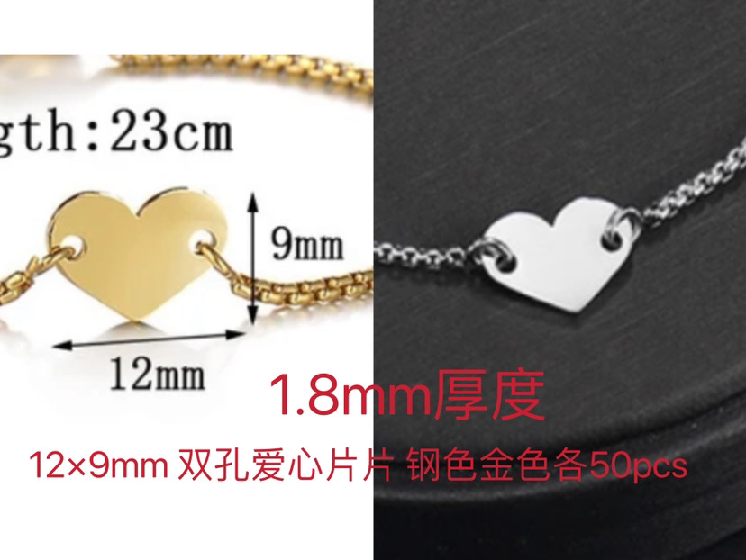 不锈钢饰品配件 吊坠手链弯牌 爱心穿孔圆形吊牌制做