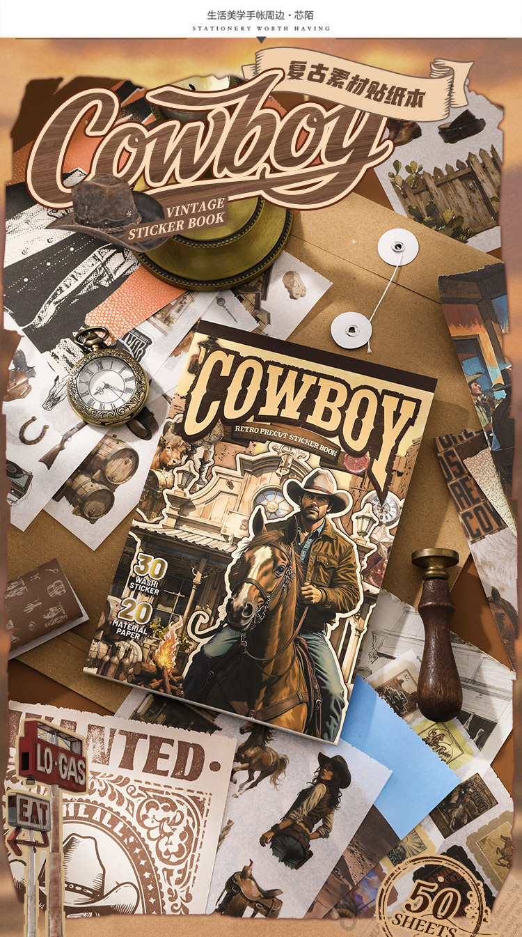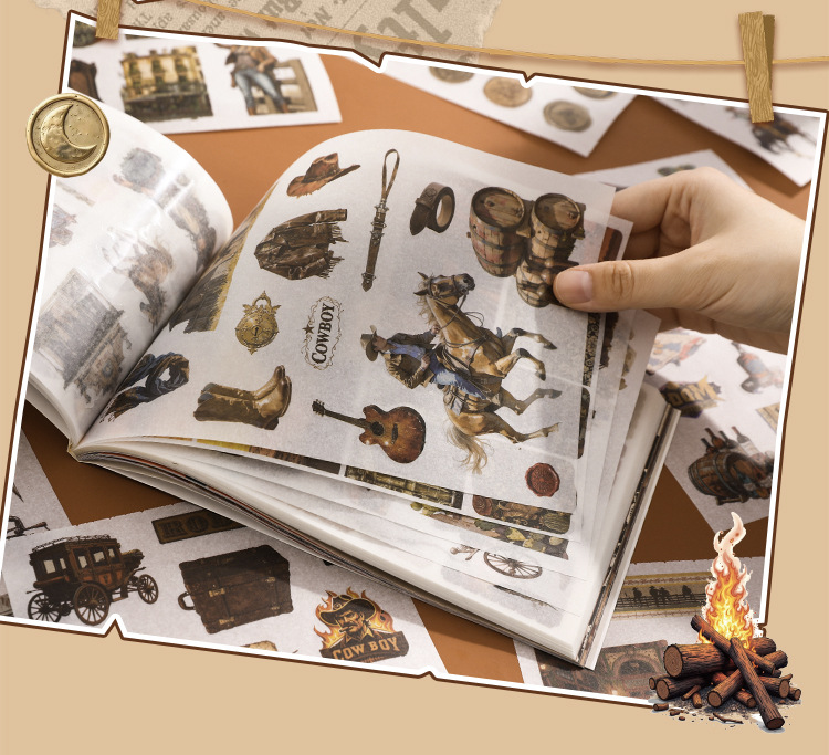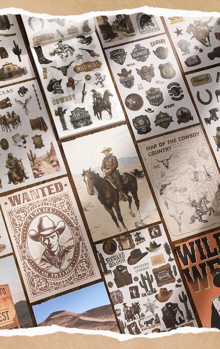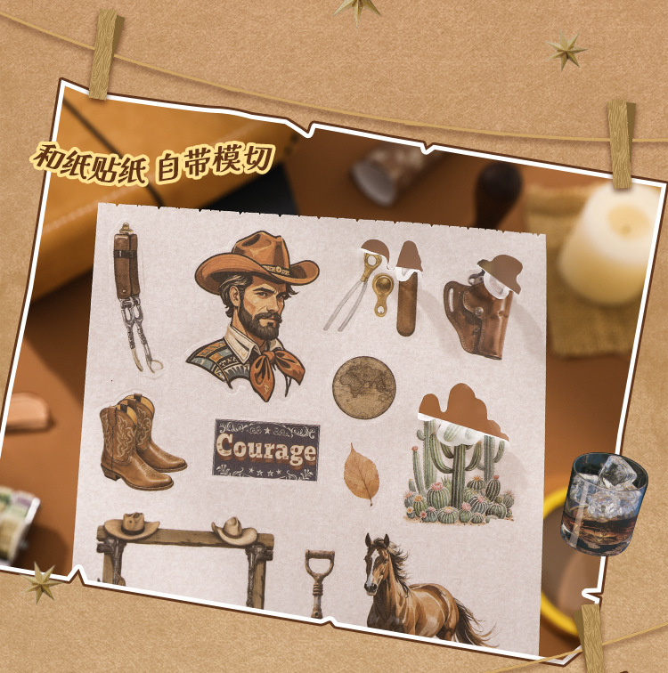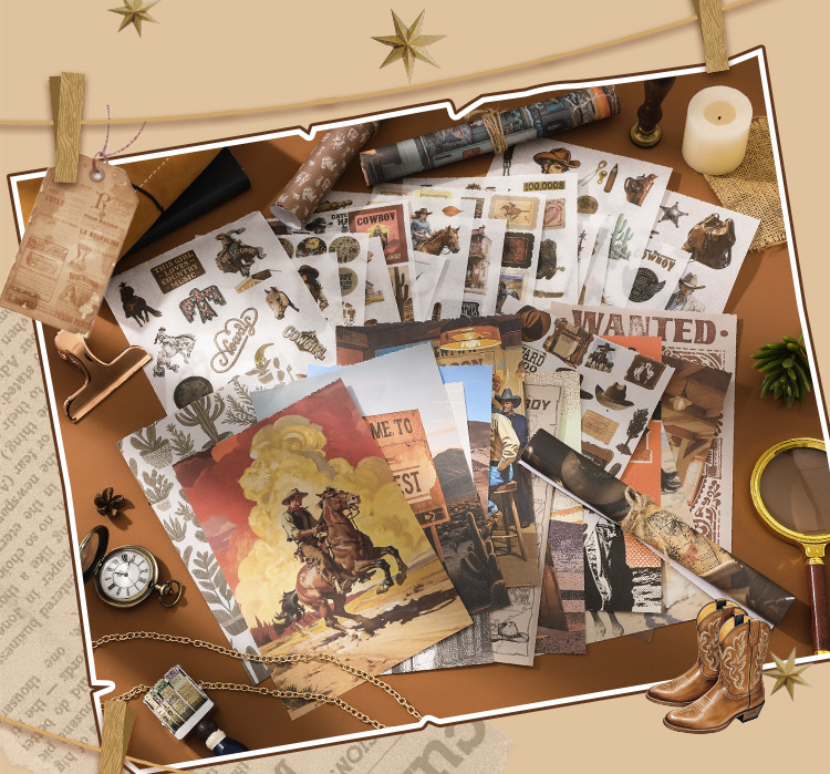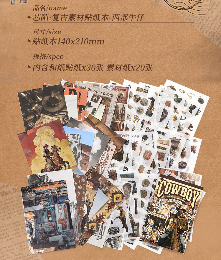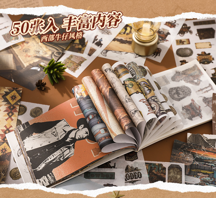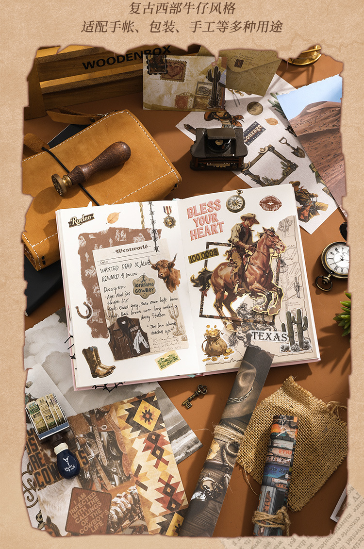 芯陌复古素材贴纸本西部牛仔美式ins风diy手账日记本装饰背景纸