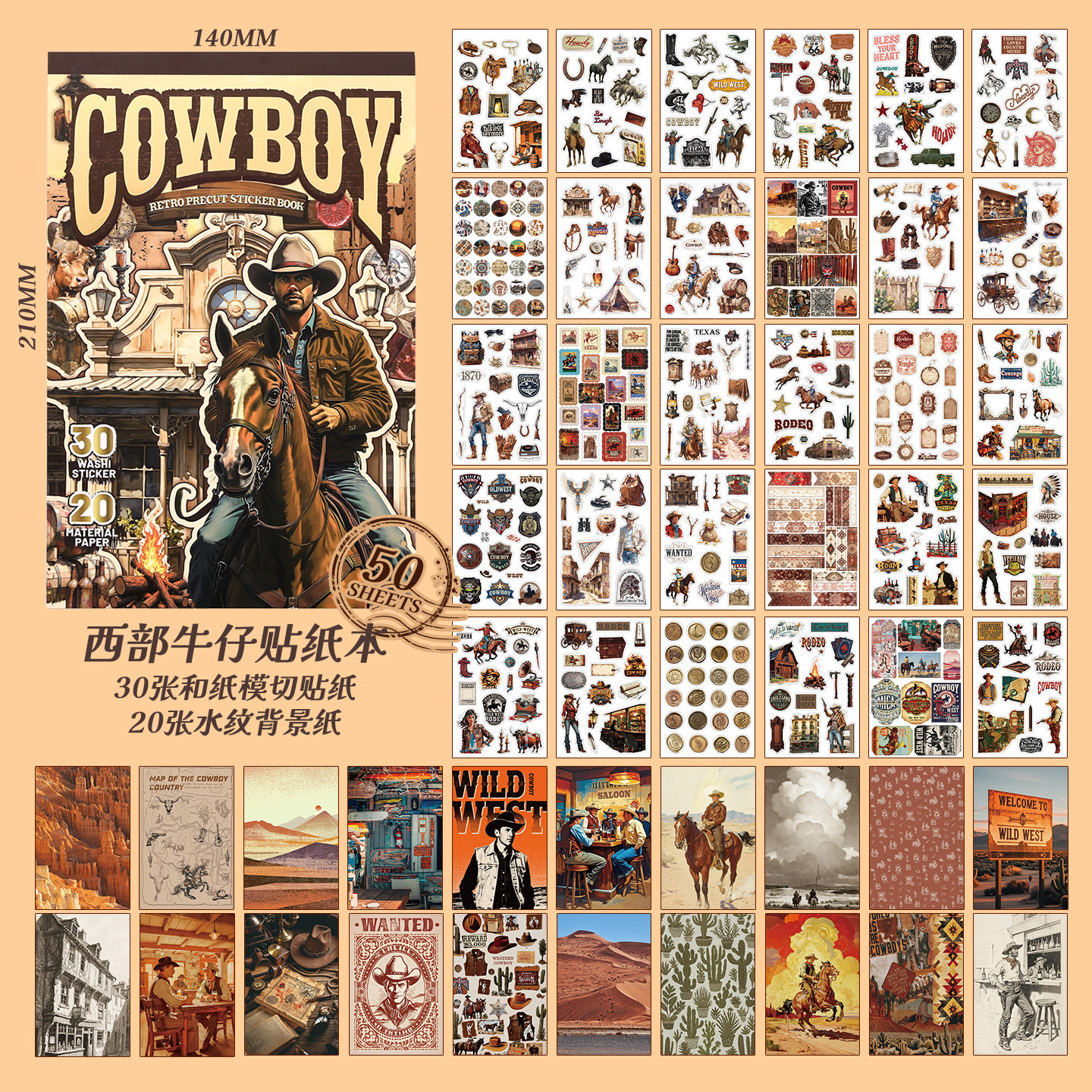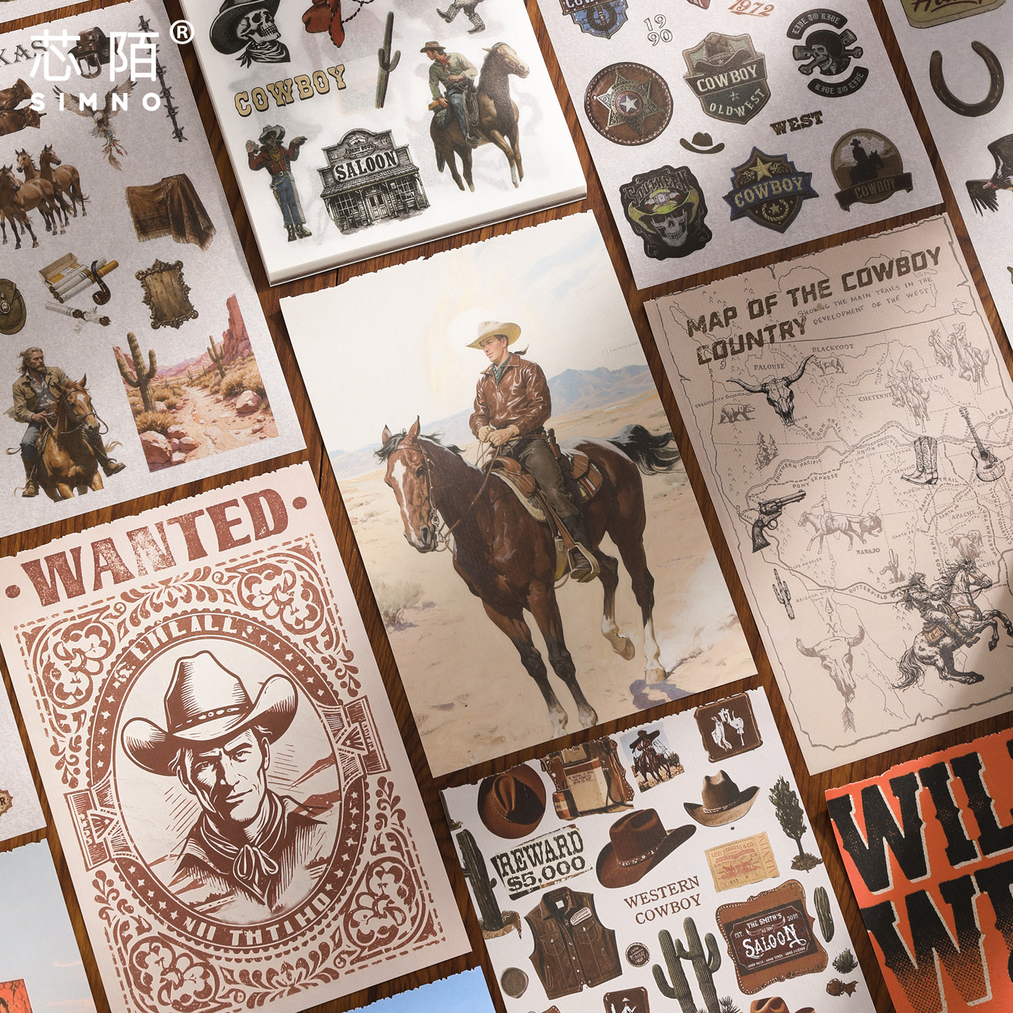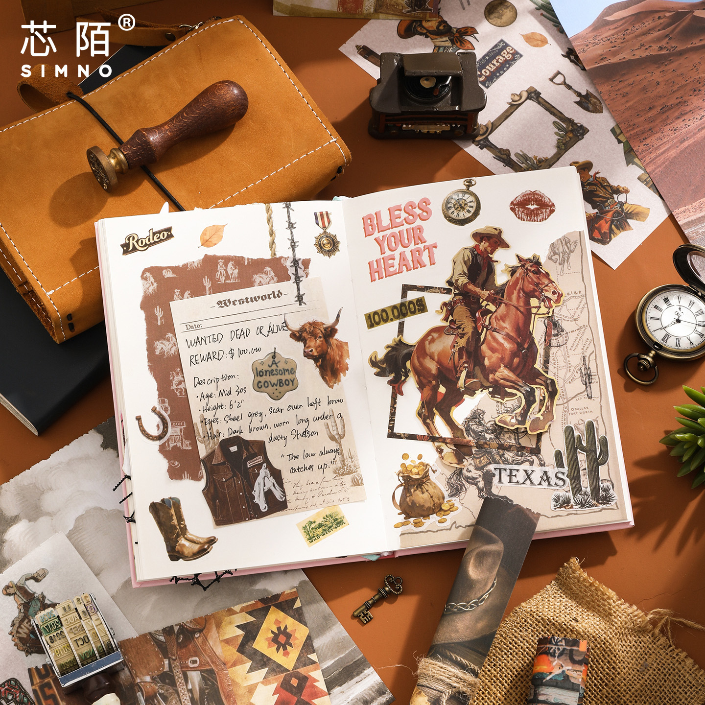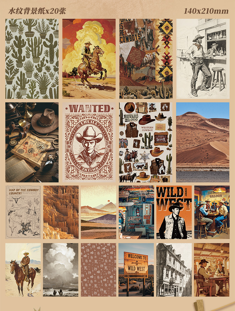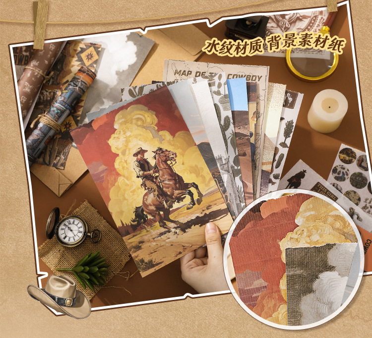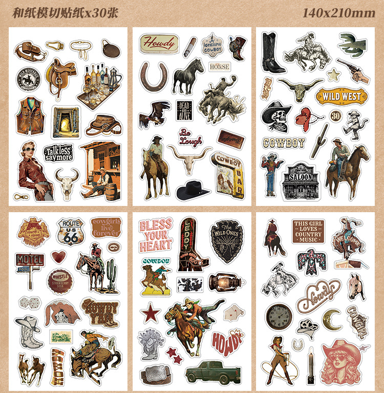 芯陌复古素材贴纸本西部牛仔美式ins风diy手账日记本装饰背景纸