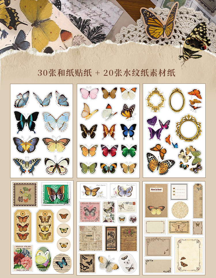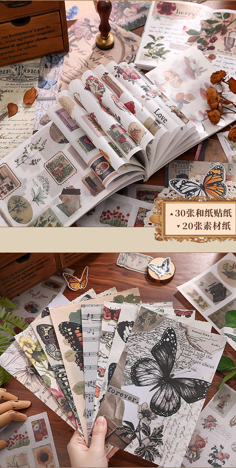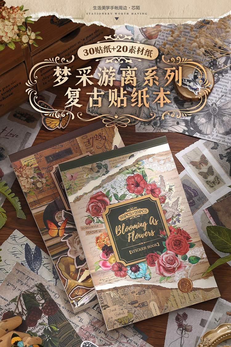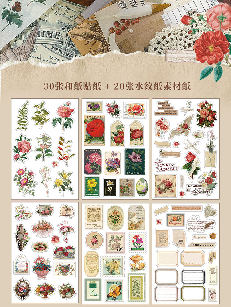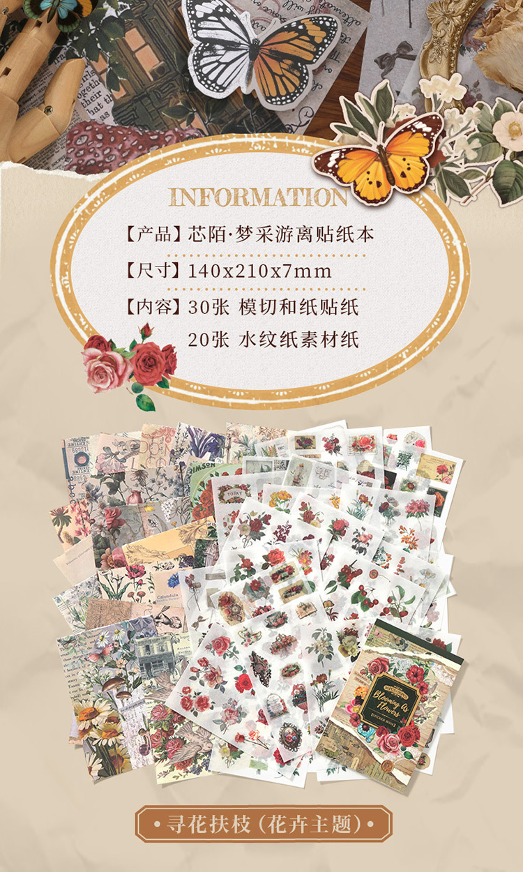 芯陌梦采游离系列贴纸本复古风素材贴纸本高颜值ins风手账装饰