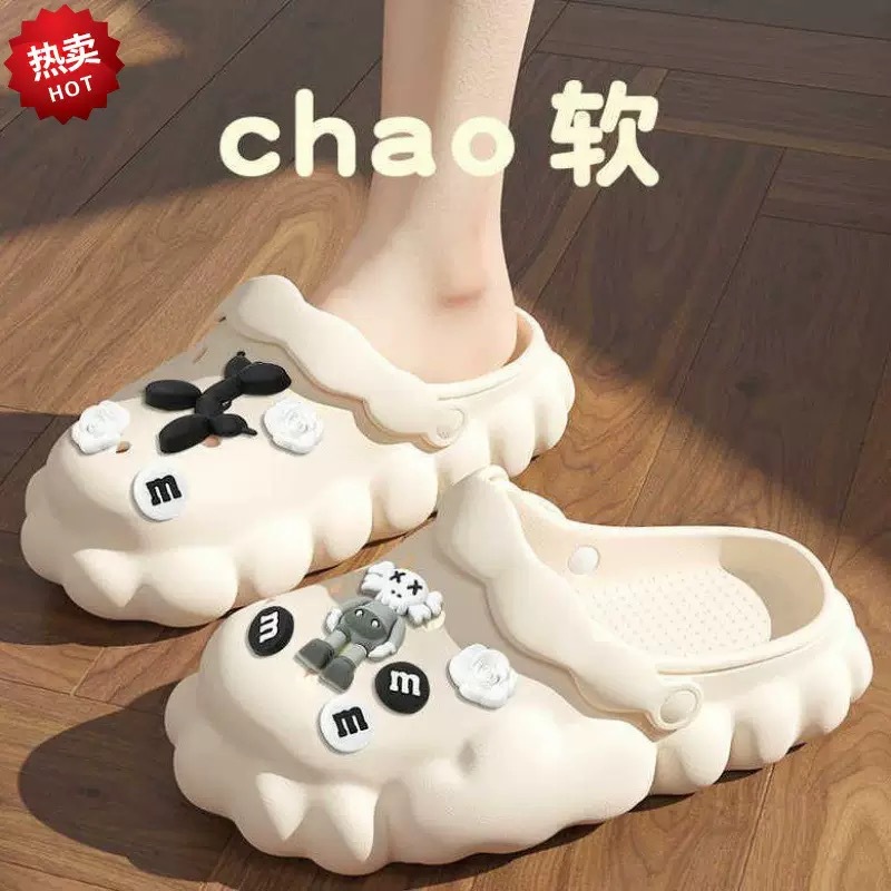 网红踩屎感包头拖鞋女夏季2023新款厚底洞洞鞋外穿防滑护士凉鞋子