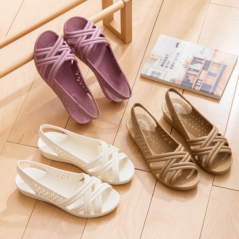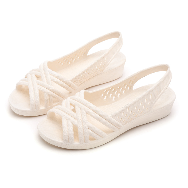 白色鱼嘴塑料凉鞋女2024新款夏季防滑平底透气防水软底护士工作鞋