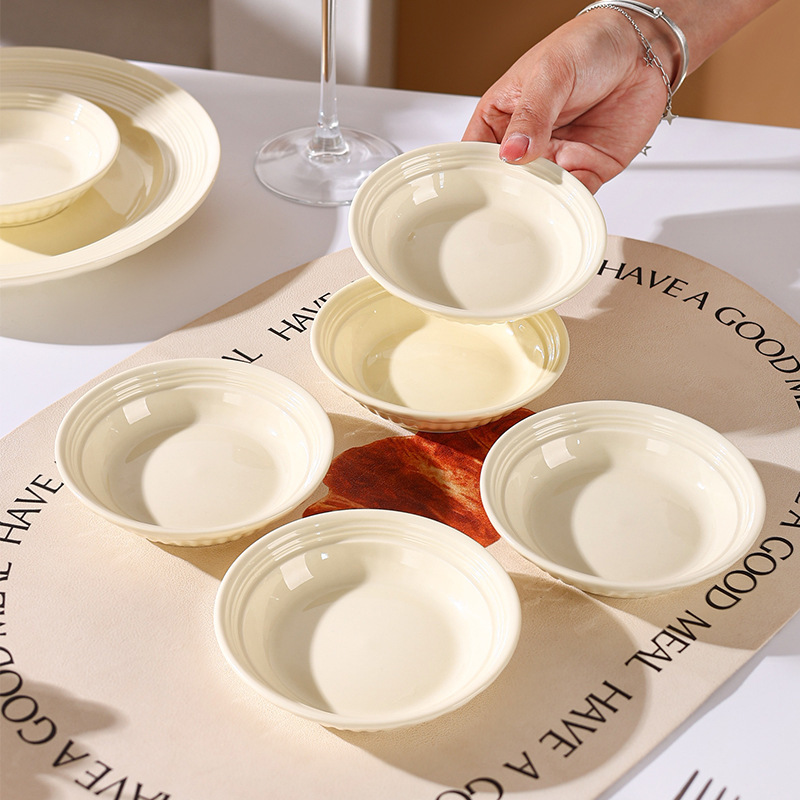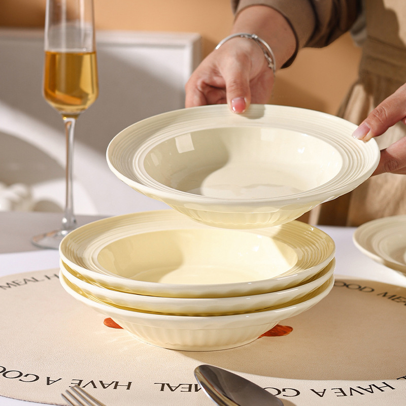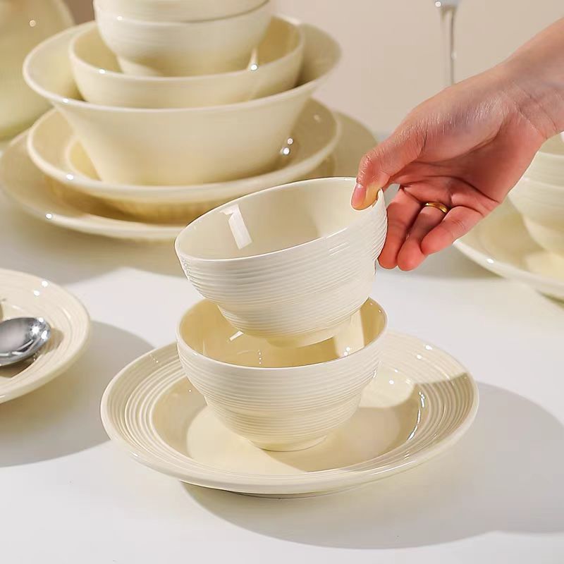 奶油风高级好看的家用碗盘碗筷餐具套装浮雕轻奢陶瓷盘子乔迁礼物