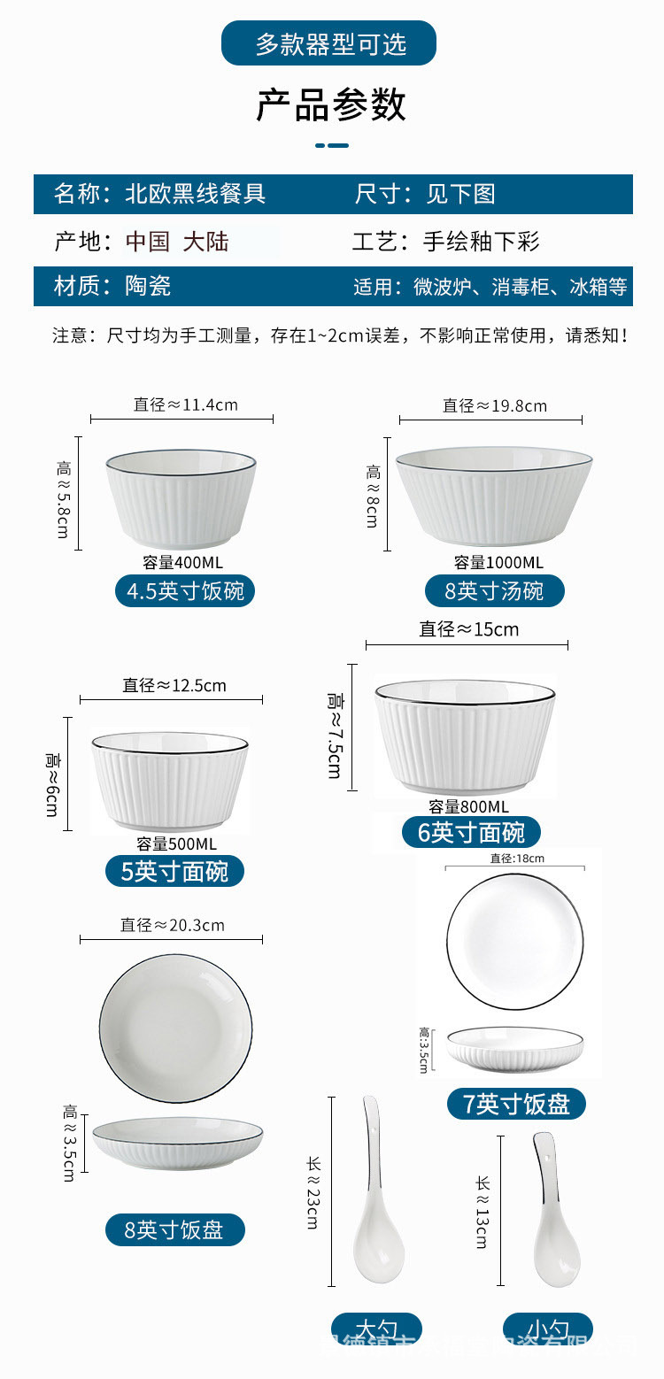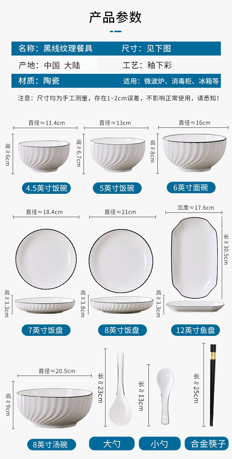 竖纹防滑简约轻奢家用陶瓷餐具套装碗盘碟面汤碗鱼盘自由组合礼品