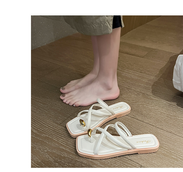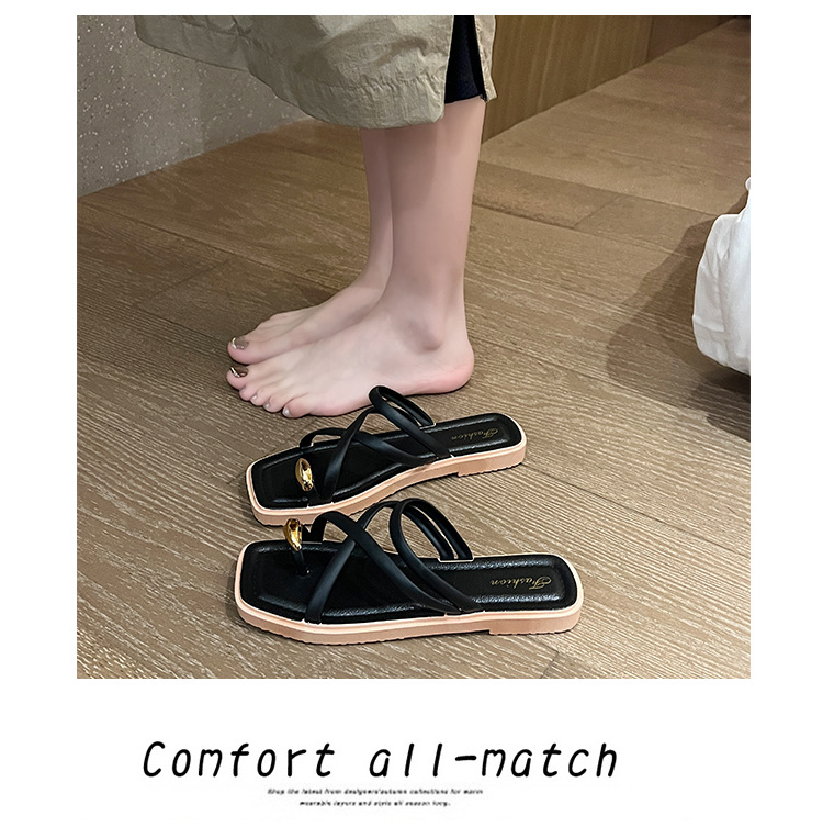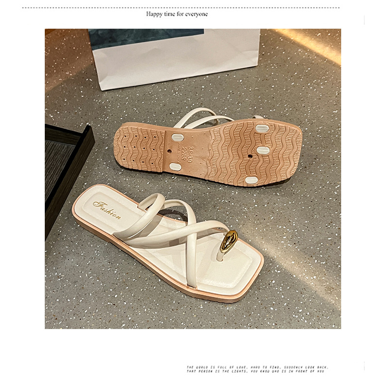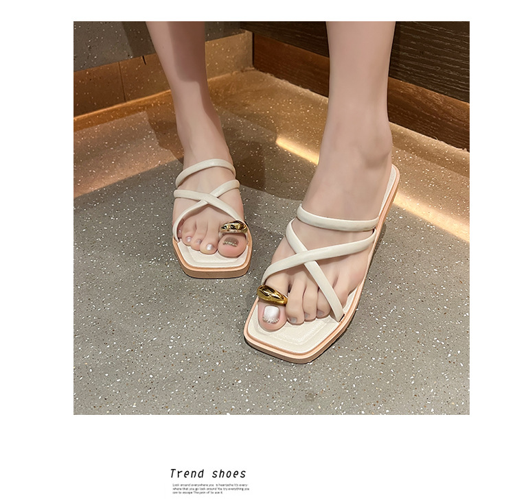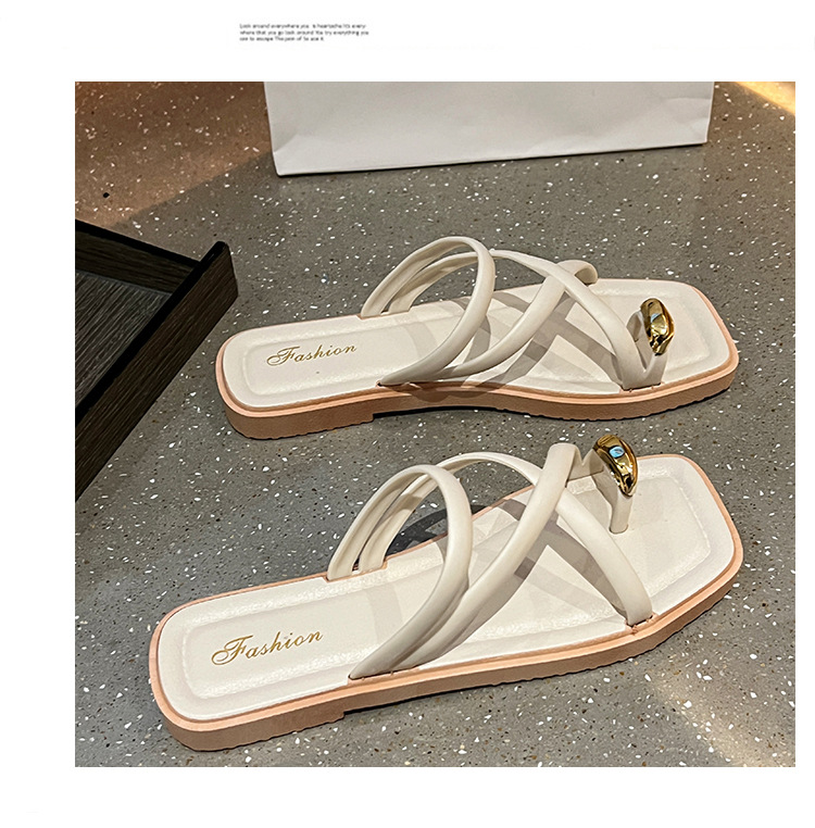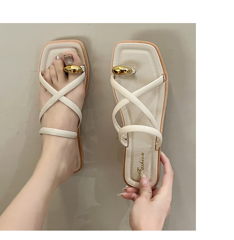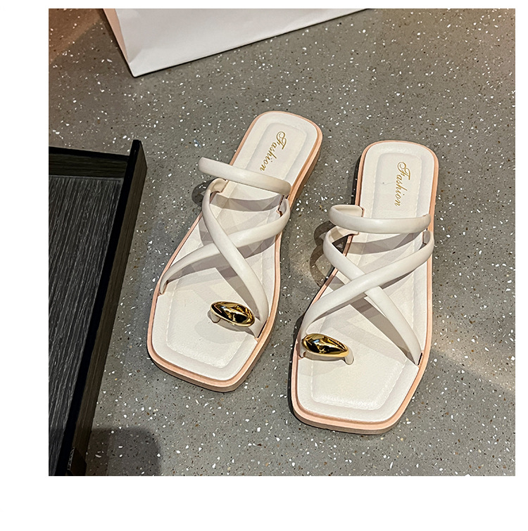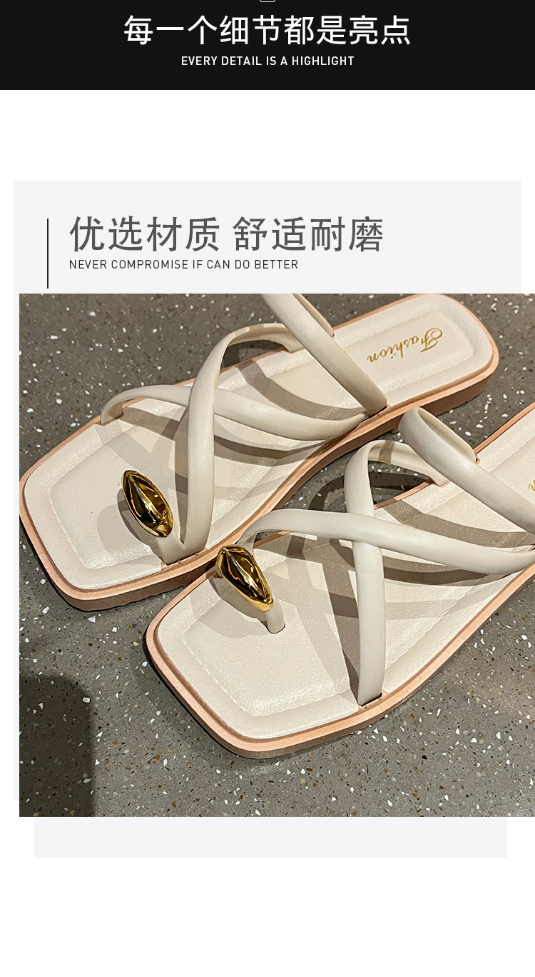 夏季凉拖鞋女时尚仙女风居家室内防滑外穿百搭金色指姆扣套趾拖鞋