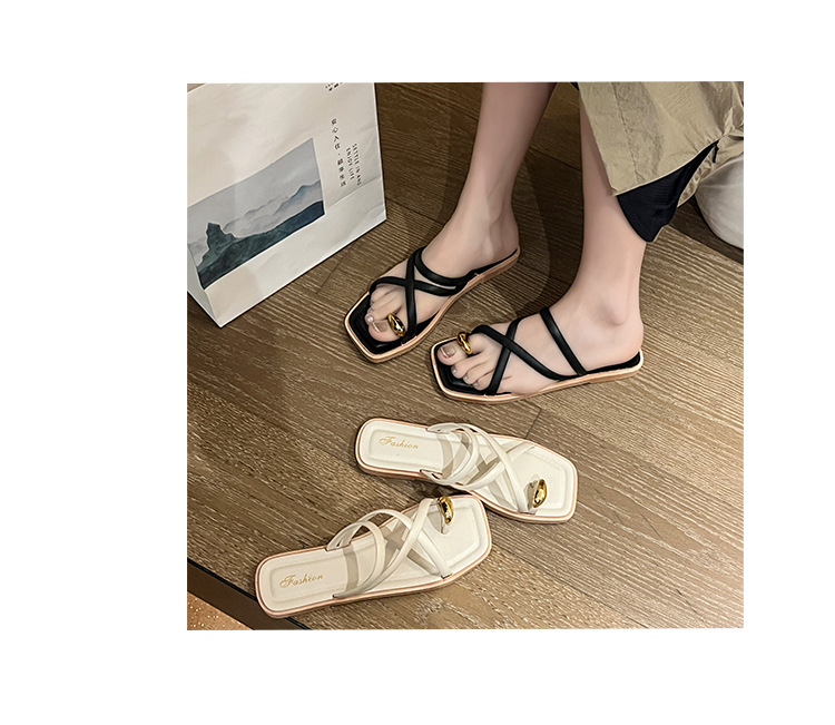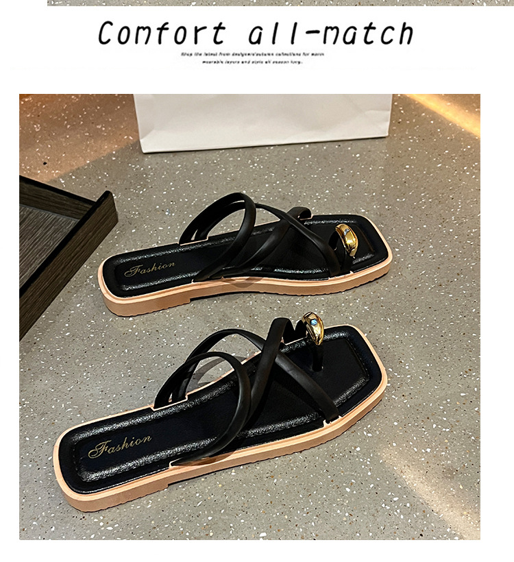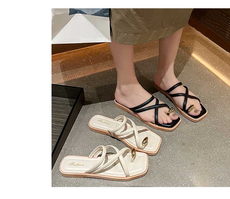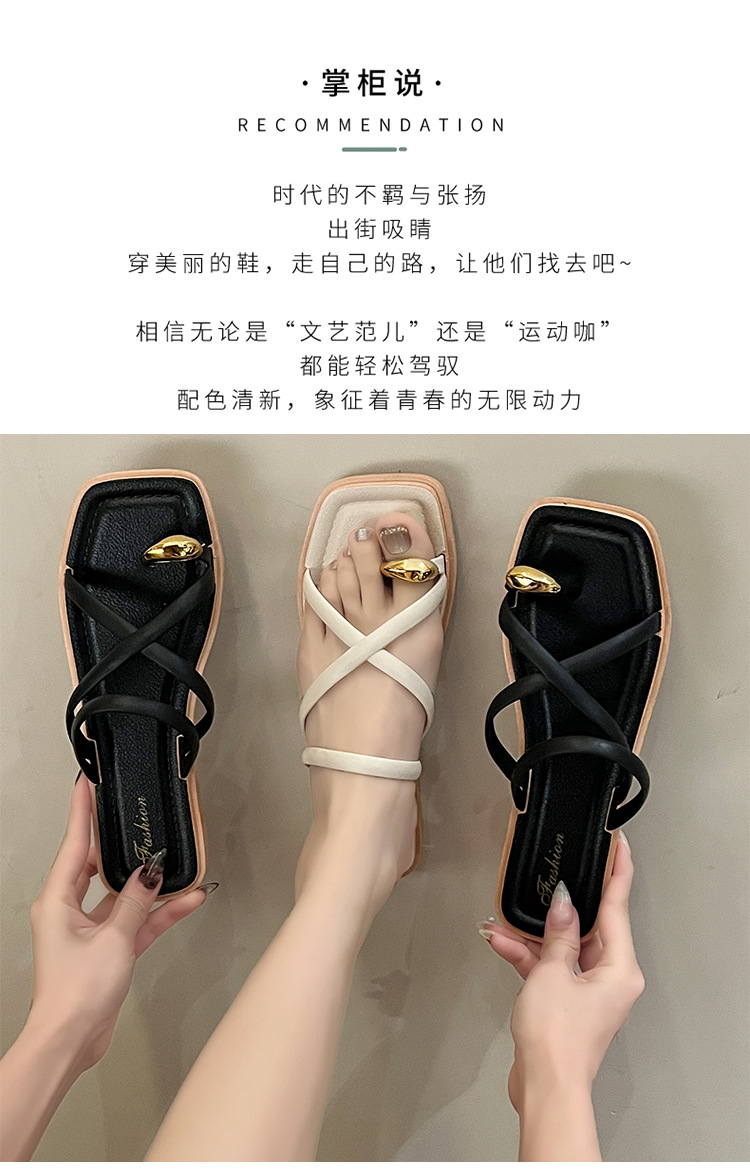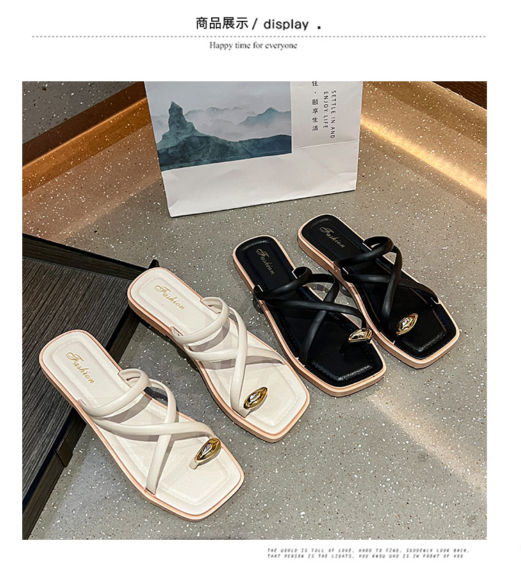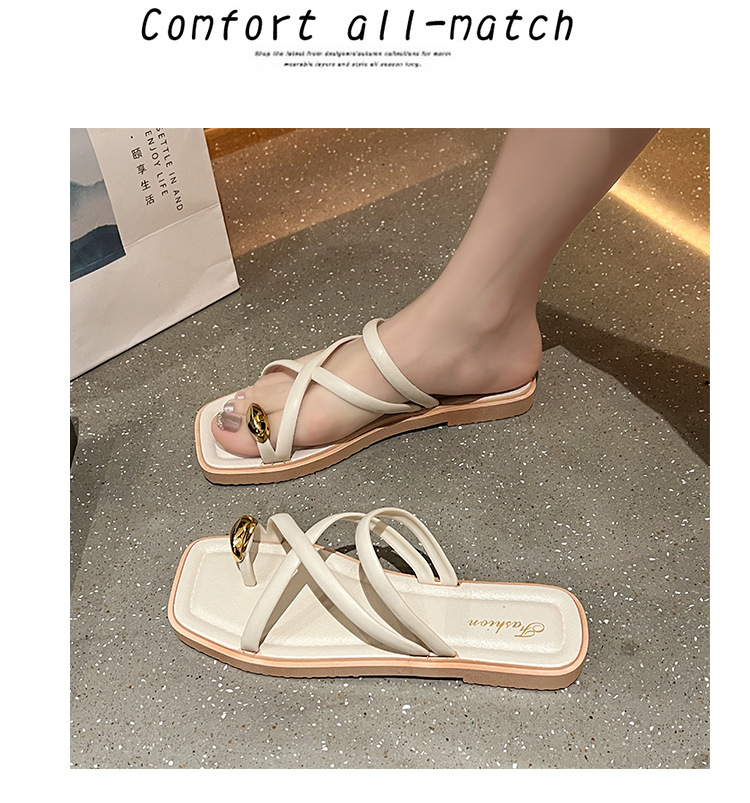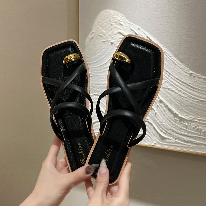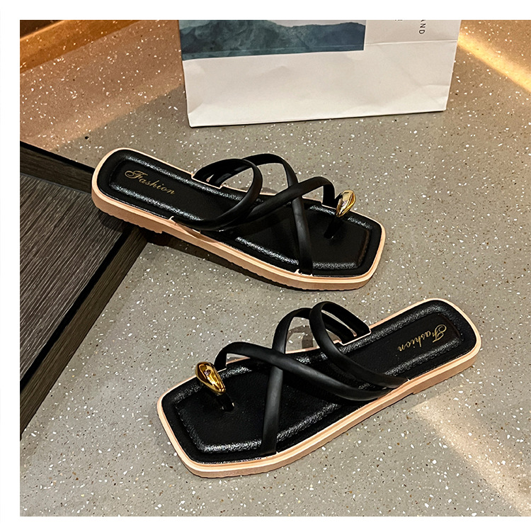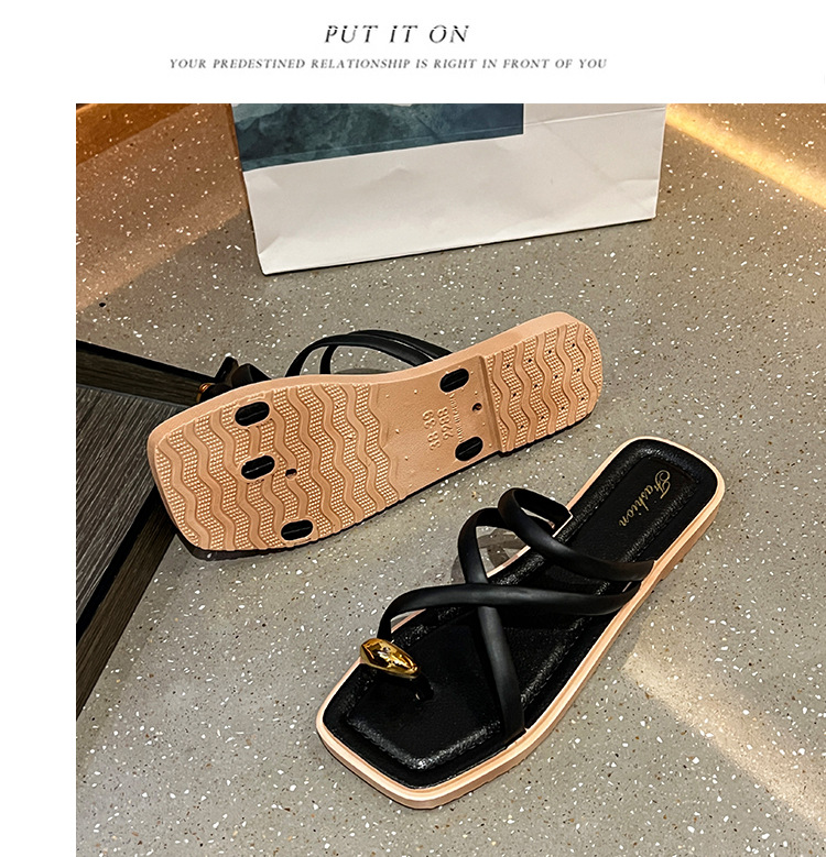 夏季凉拖鞋女时尚仙女风居家室内防滑外穿百搭金色指姆扣套趾拖鞋