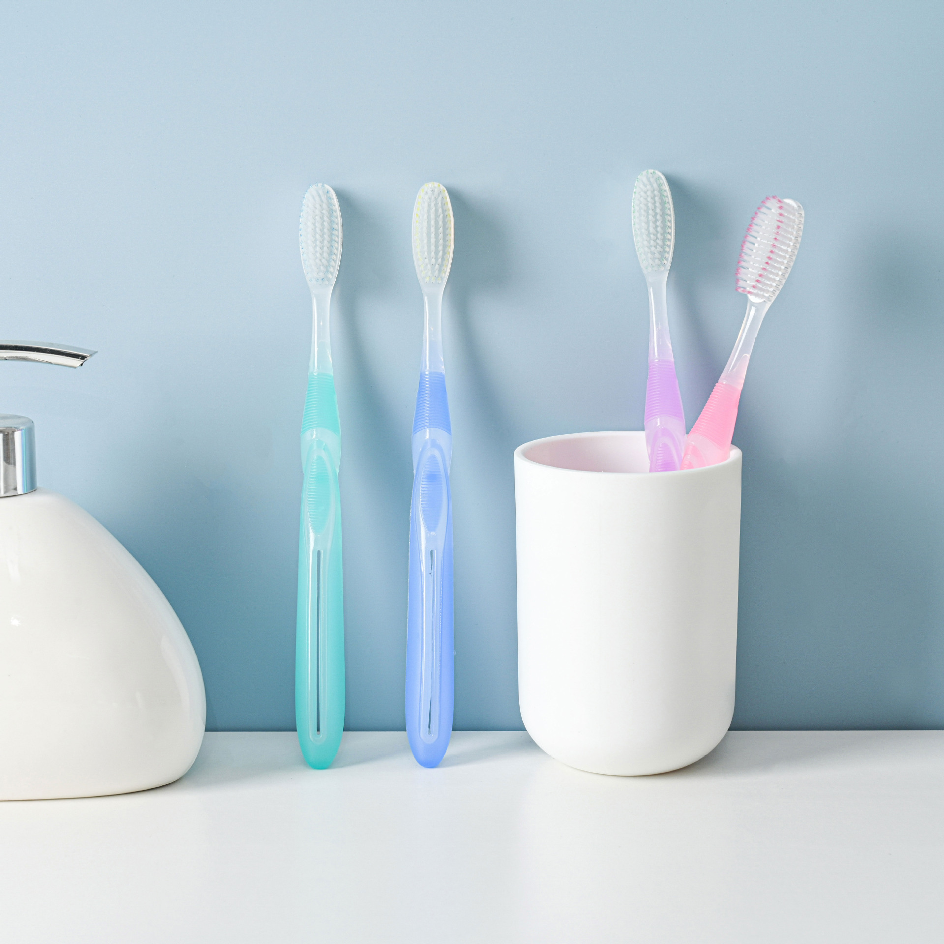 佳洁贝日用百货软毛牙刷2元店专批牙刷软毛成人TPR软胶柄牙刷厂家