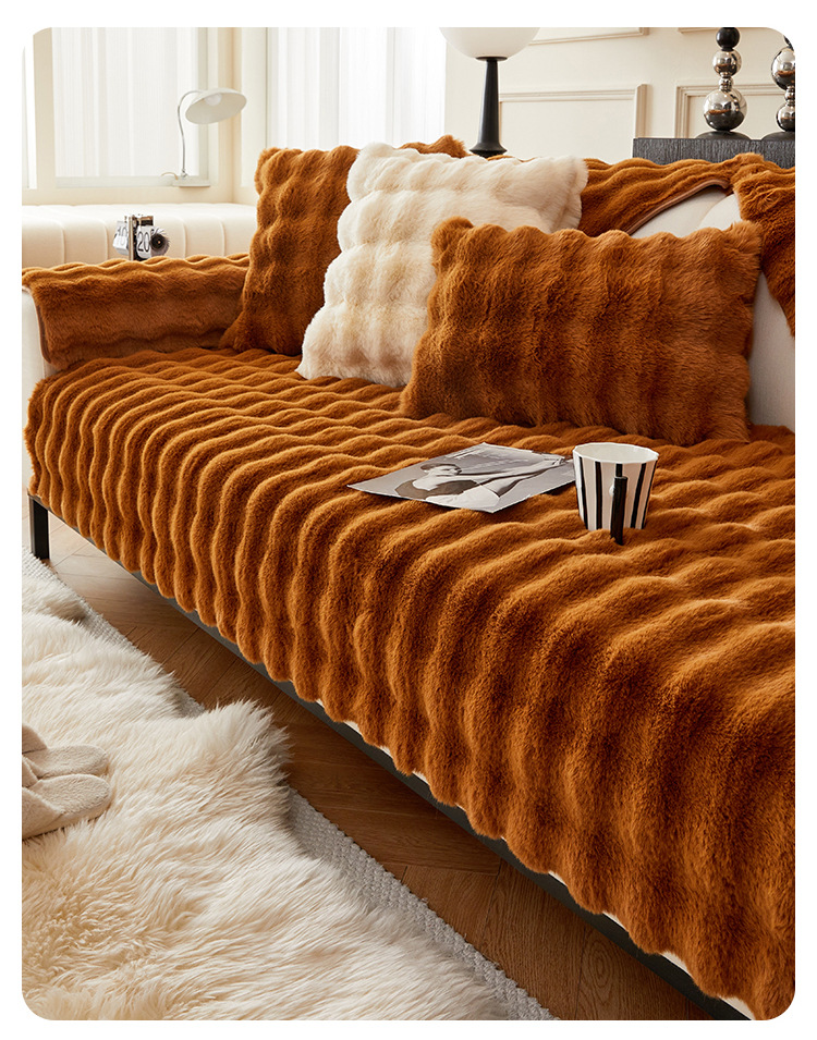 冬季加厚兔毛绒沙发垫坐垫防滑贵妃套罩2026新款全包盖布巾全包型