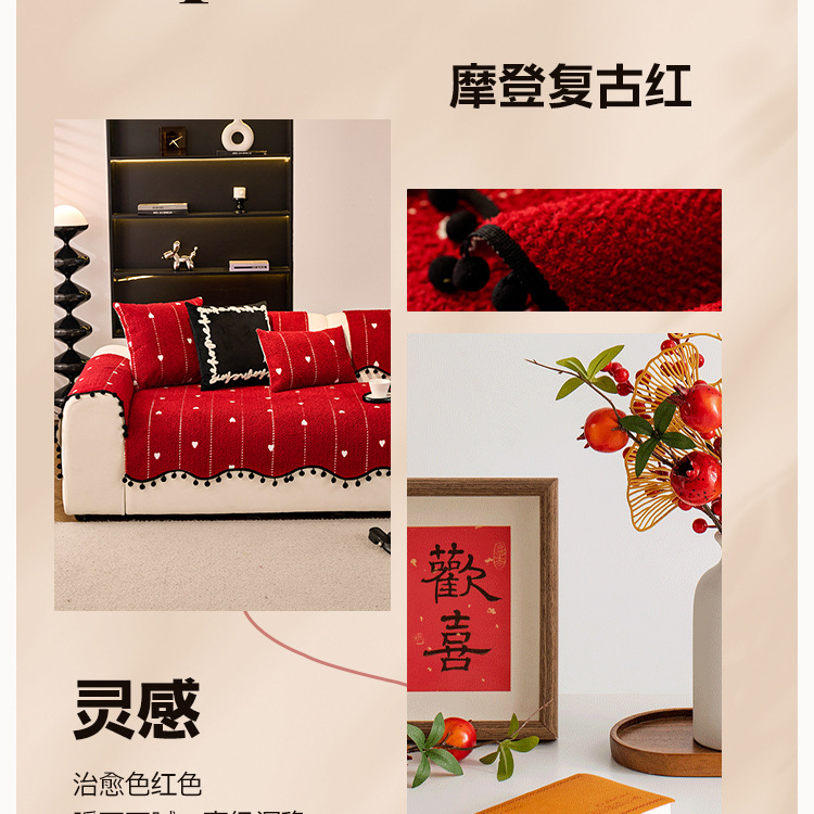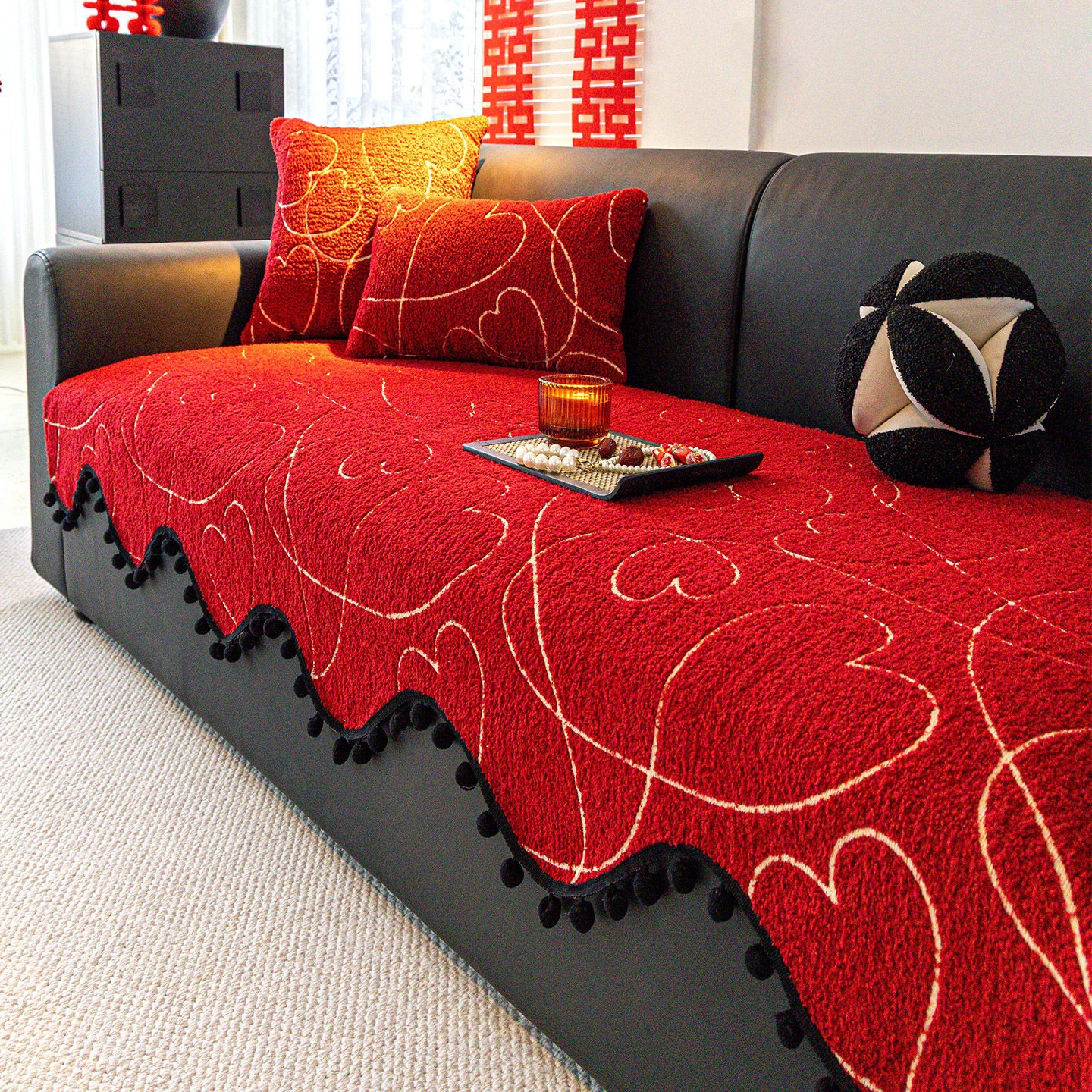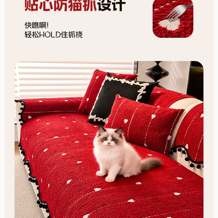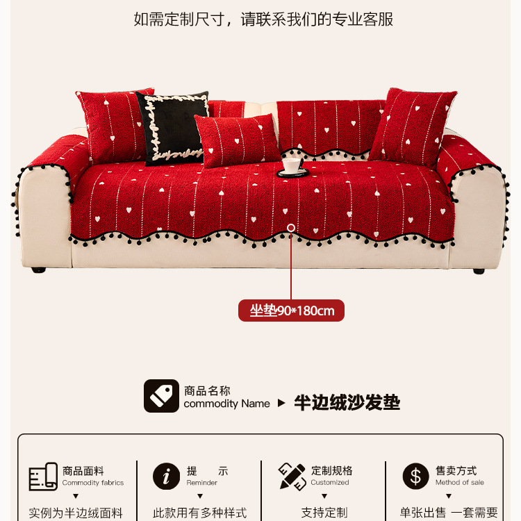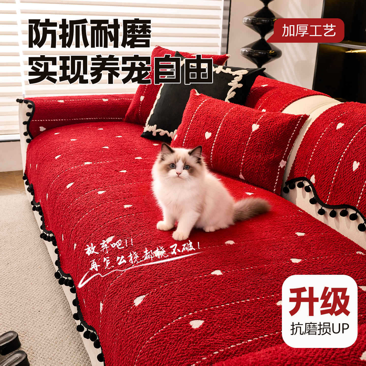 红色喜庆异形沙发垫冬2026新款婚庆结婚布置毛绒沙发坐垫防滑盖布