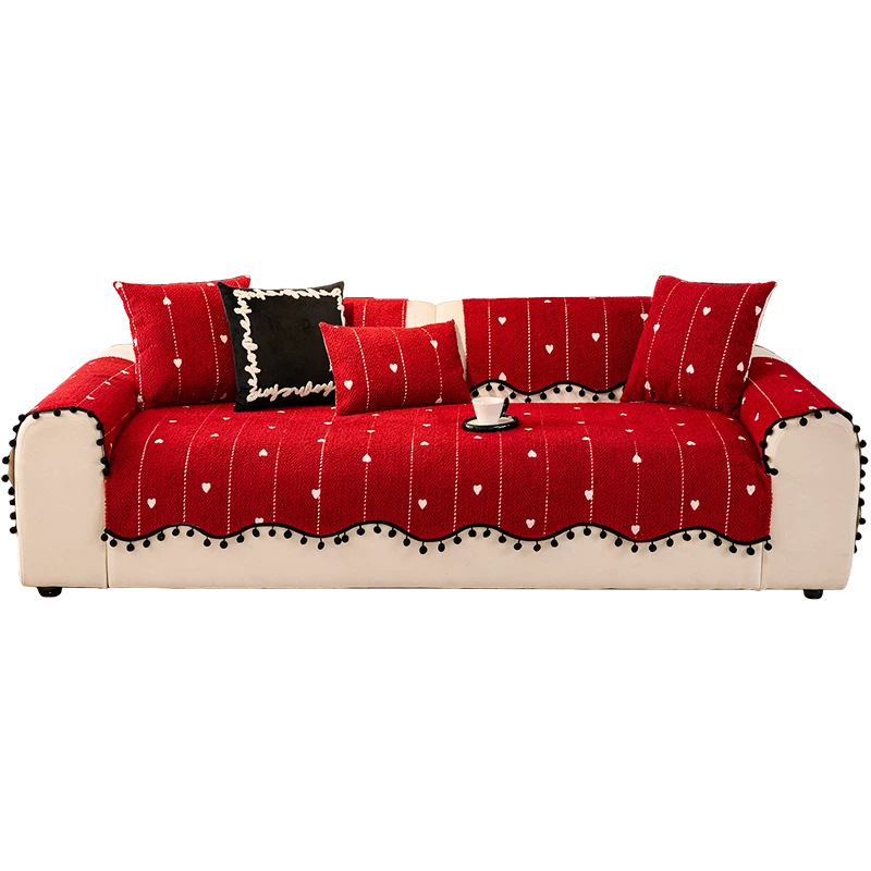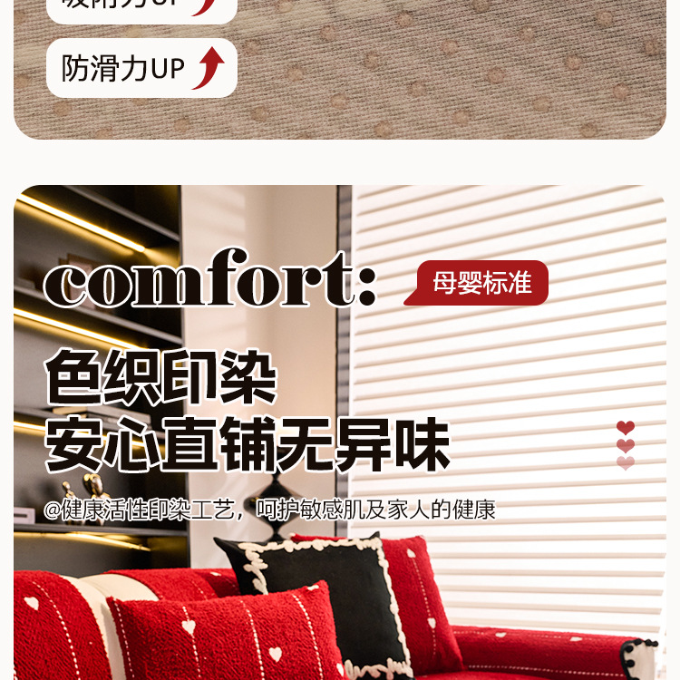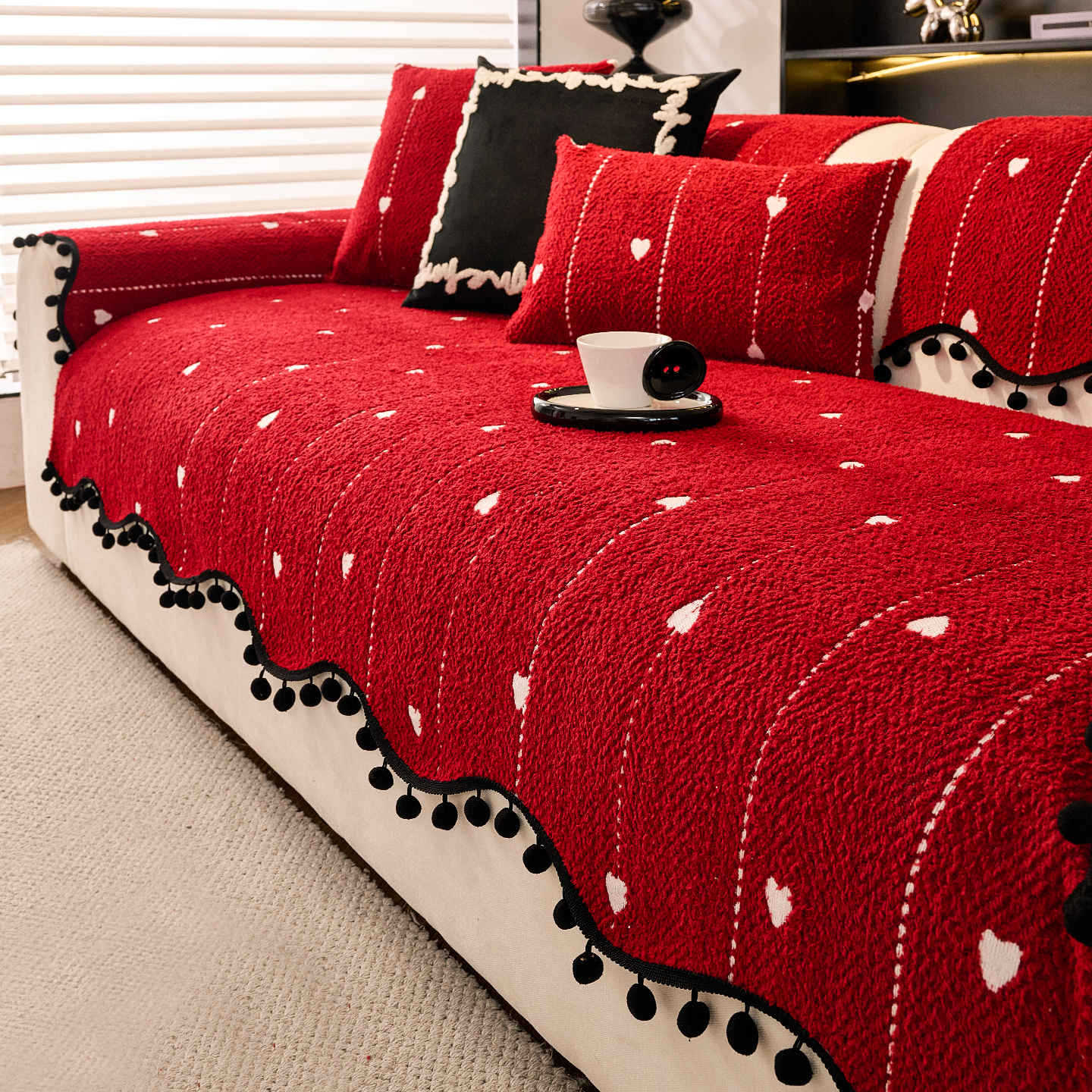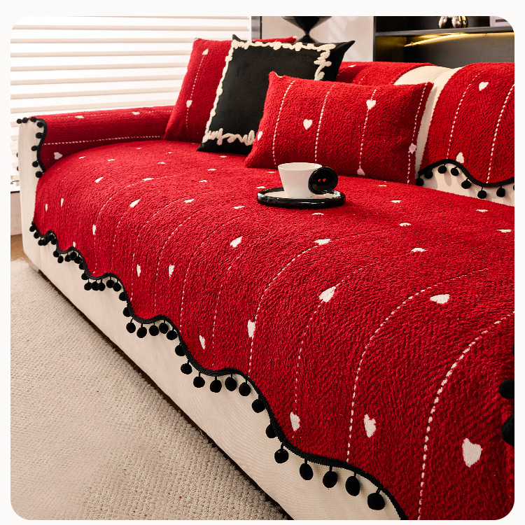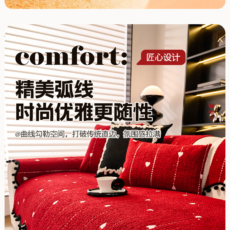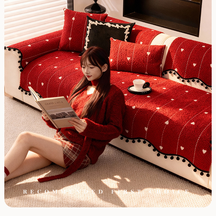 红色喜庆异形沙发垫冬2026新款婚庆结婚布置毛绒沙发坐垫防滑盖布