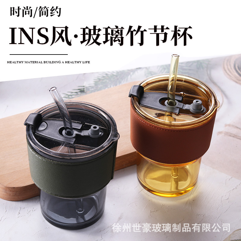 网红竹节杯玻璃吸管杯奶茶杯咖啡杯开业活动礼品杯广告杯一件代发