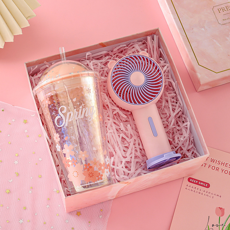 夏季清凉套装伴手礼活动开业毕业纪念品送客户送员工杯子风扇套装