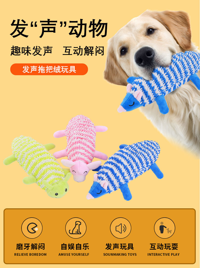 亚马逊爆款创意双拼色拖把绒动物造型宠物用品自嗨解闷毛绒狗玩具