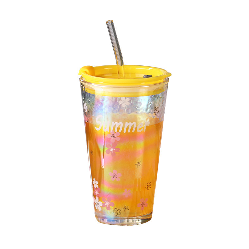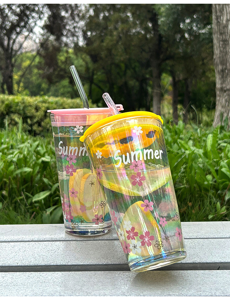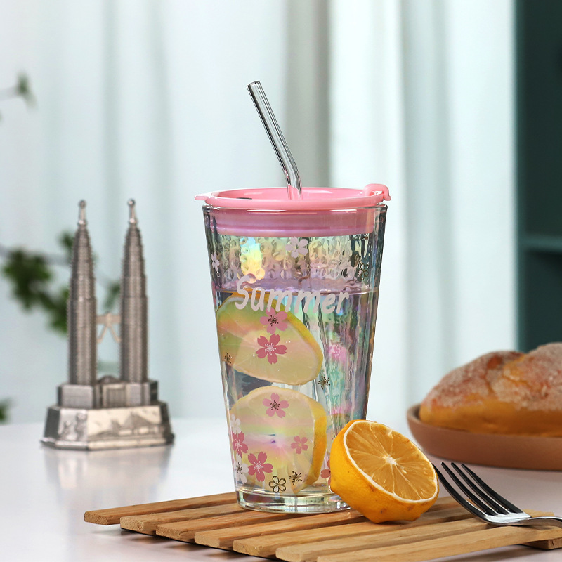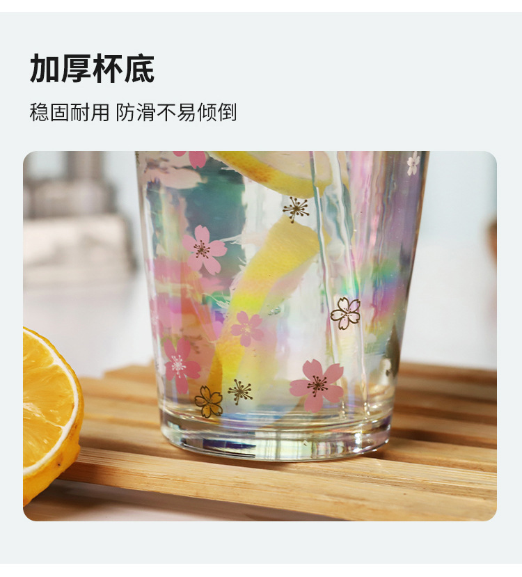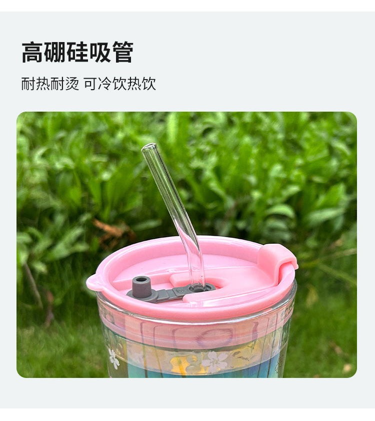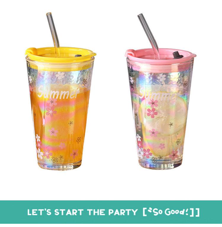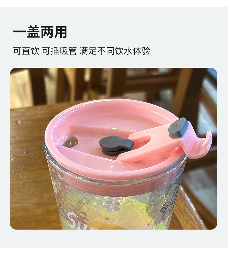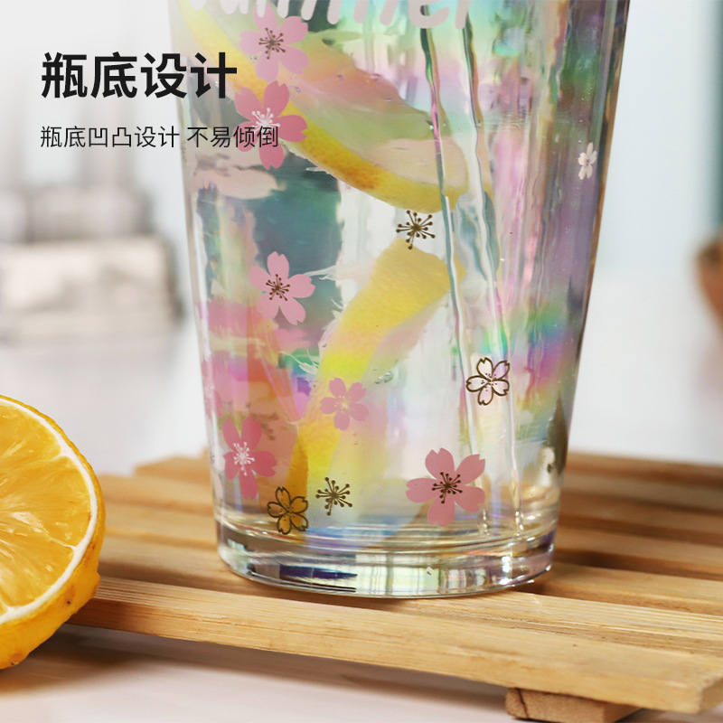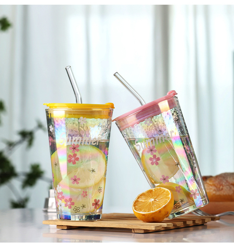 夏季网红樱花吸管杯玻璃杯女生吸管高颜值玻璃刻度杯礼品咖啡杯子