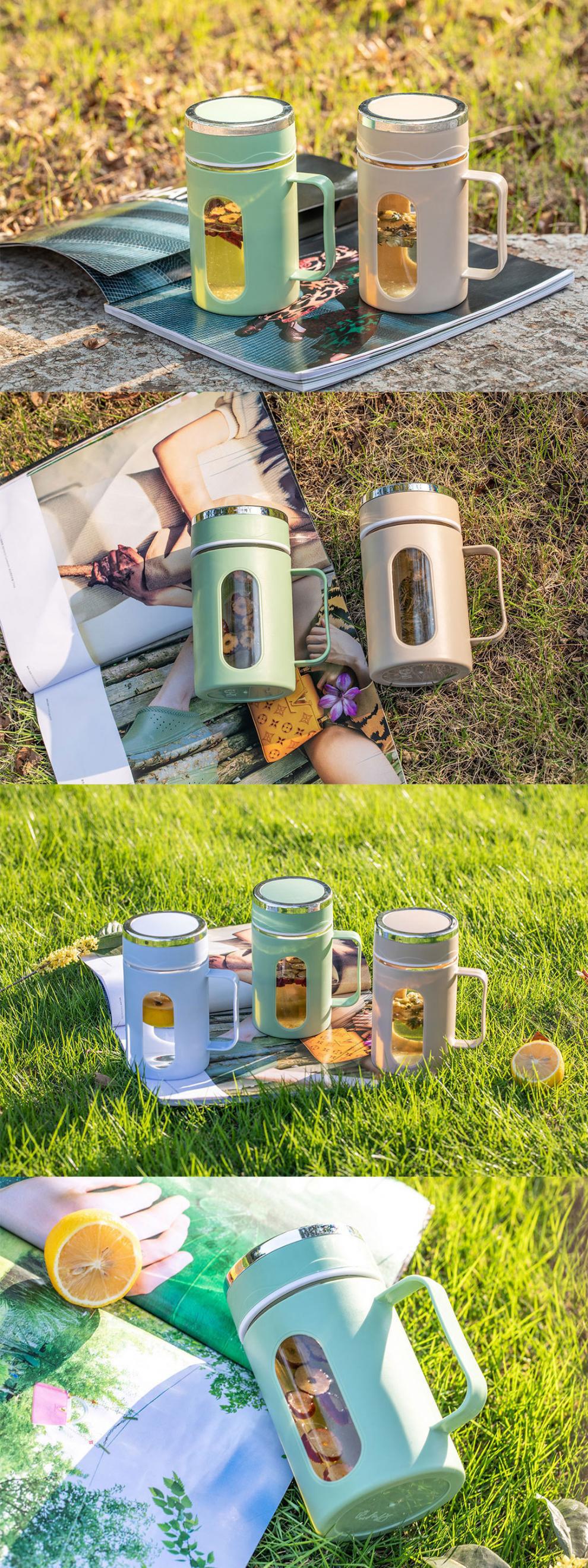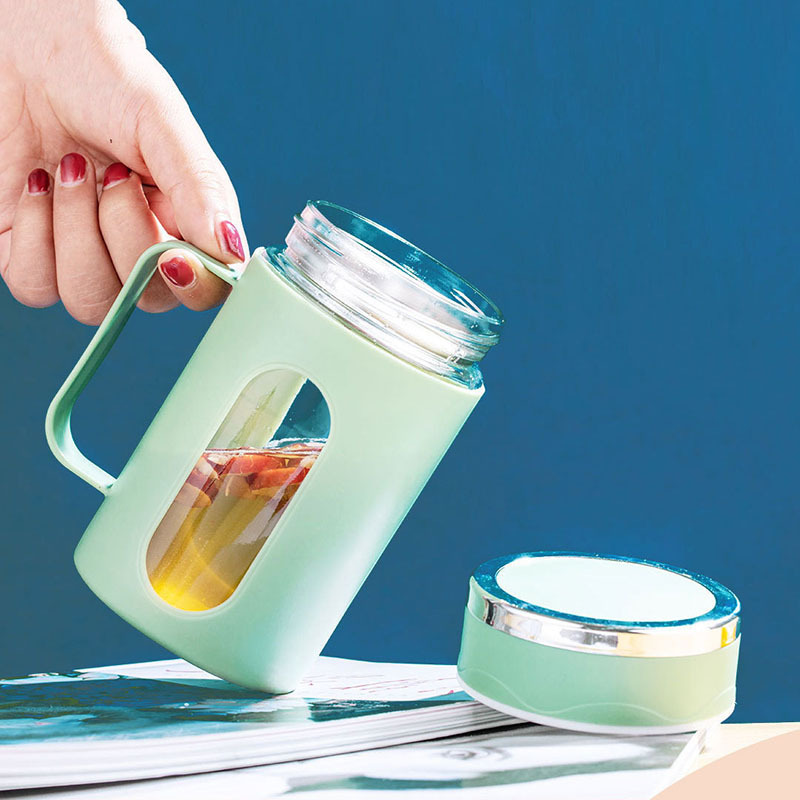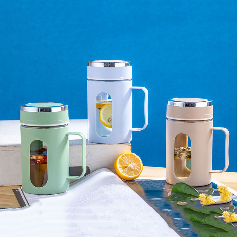 简约玻璃水杯带把手双层办公室喝水杯子促销活动礼品杯子