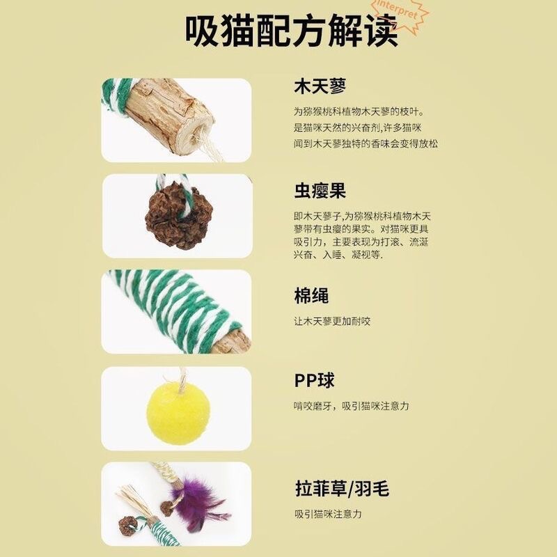 猫玩具猫咪磨牙棒虫瘿果拉菲草彩色棉绳木天蓼棒逗猫棒猫薄荷玩具