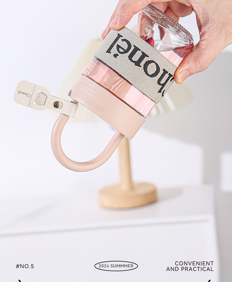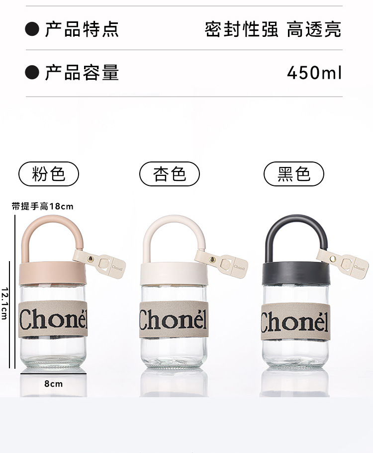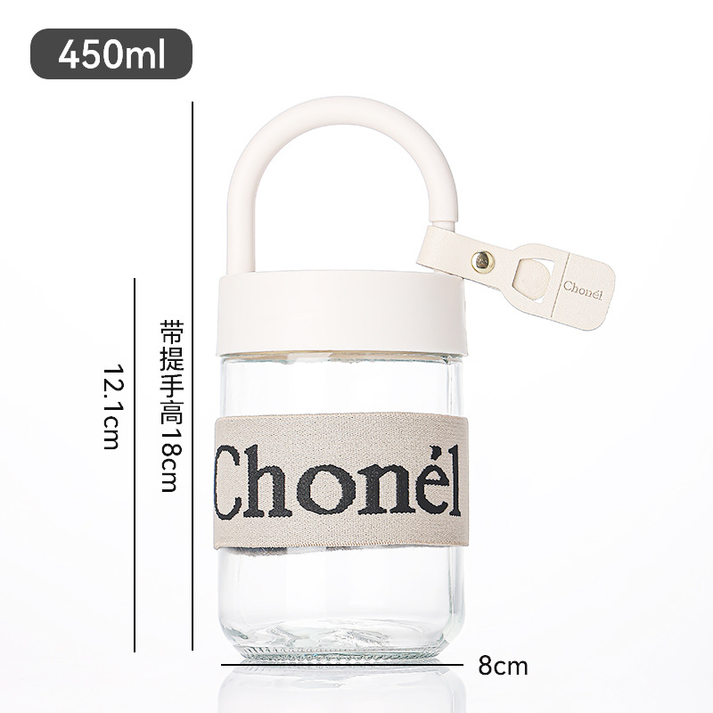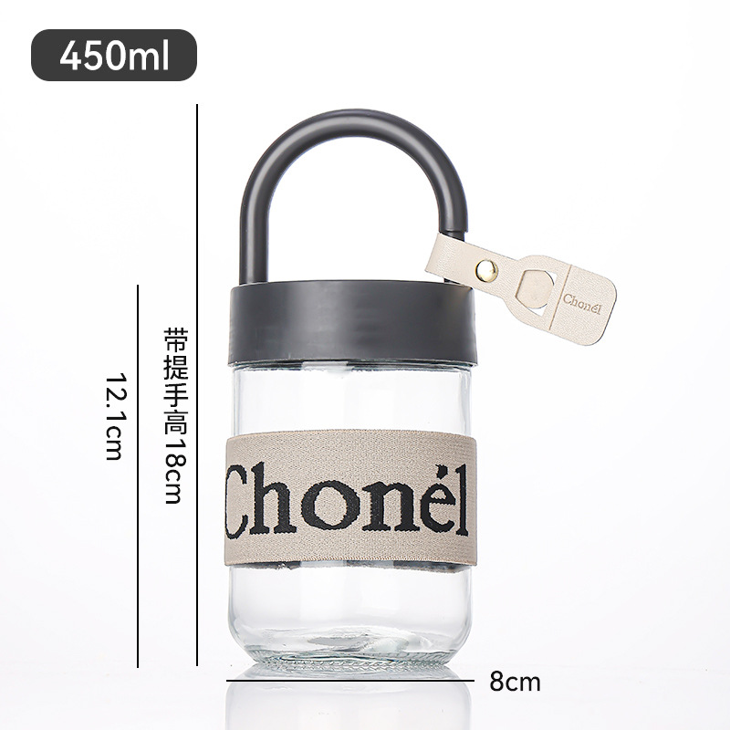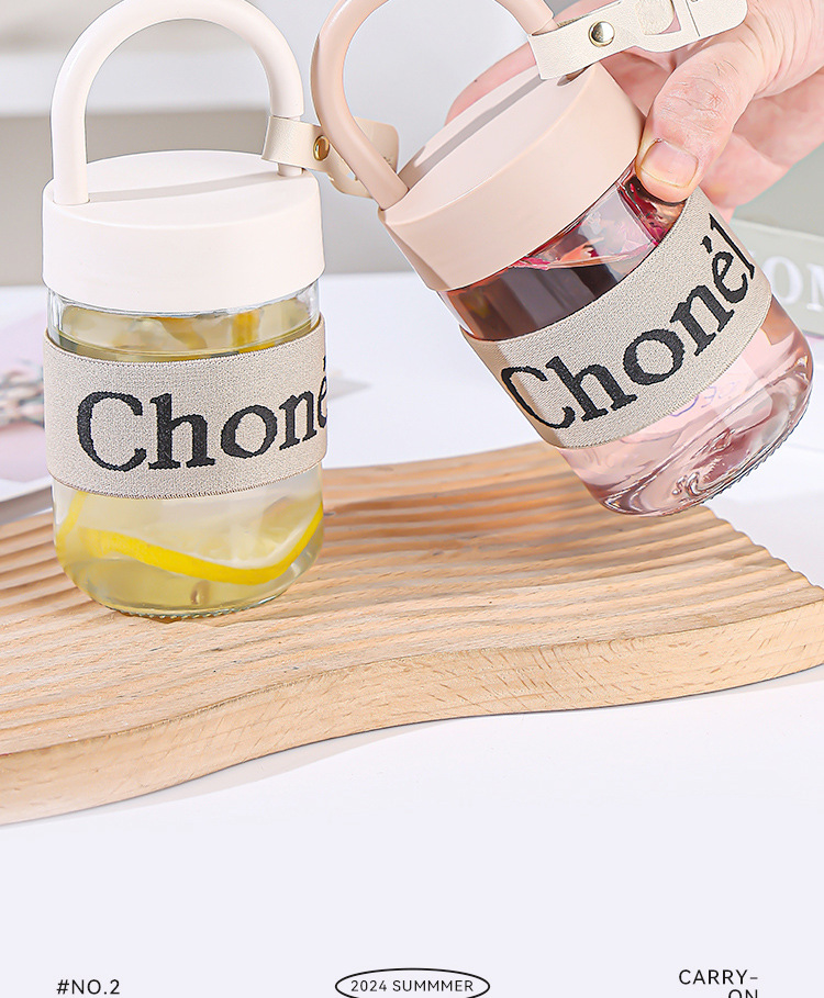 包邮小香风玻璃夏季高颜值带盖手提咖啡奶茶便携水杯活动开业礼品