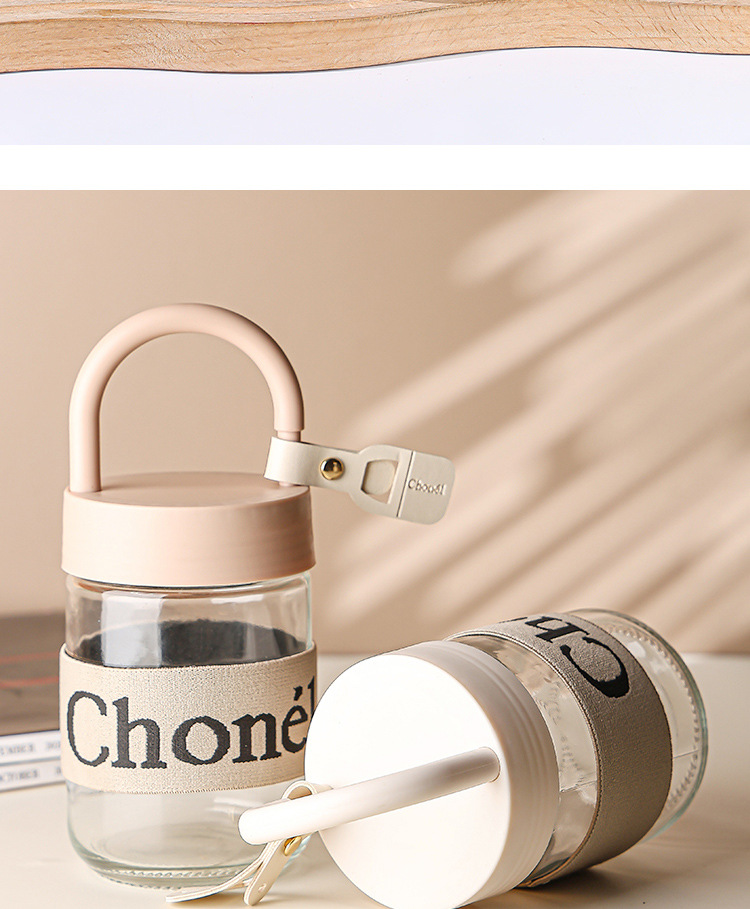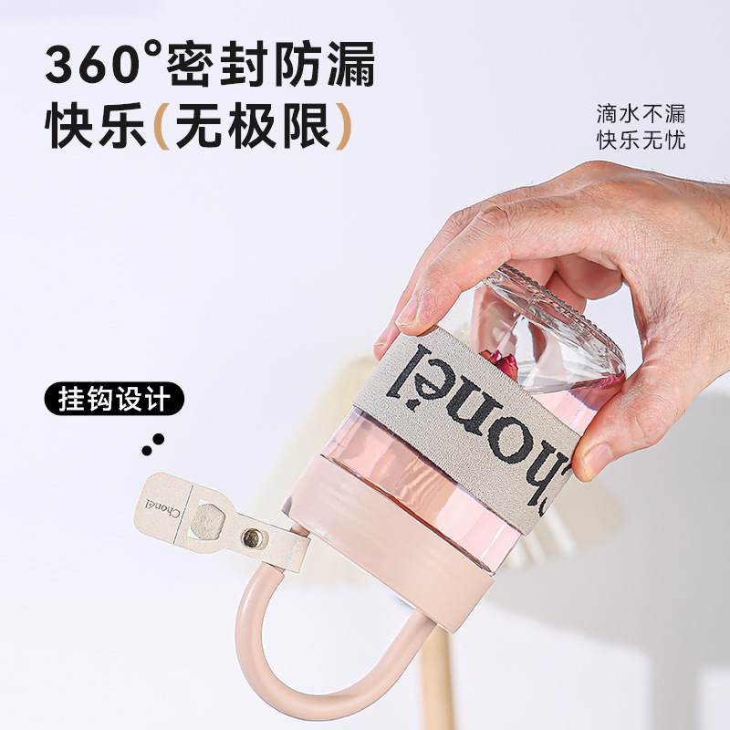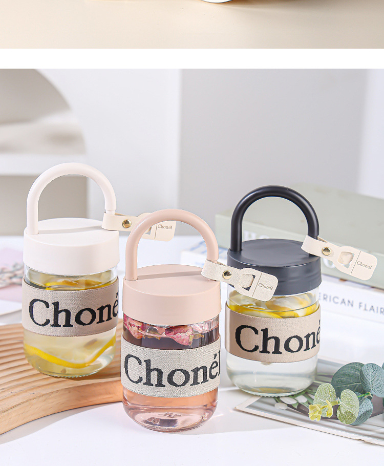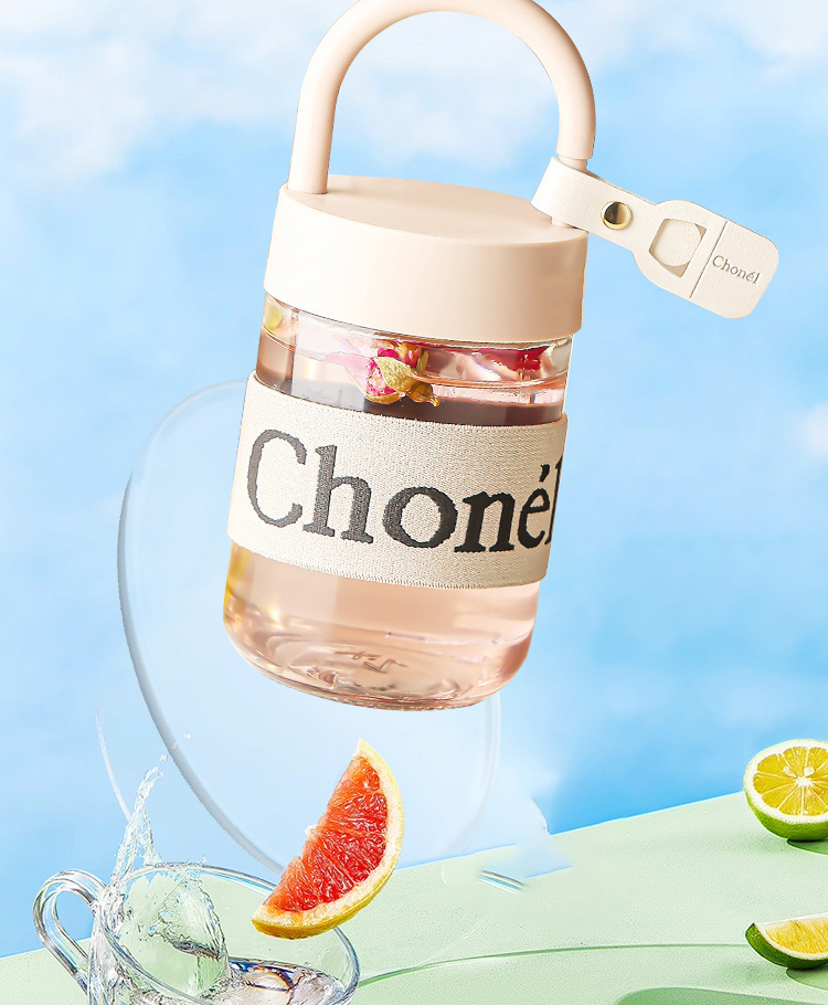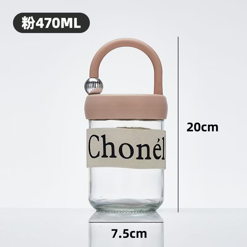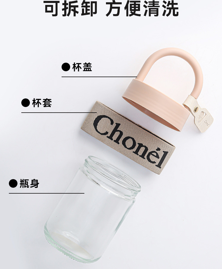 包邮小香风玻璃夏季高颜值带盖手提咖啡奶茶便携水杯活动开业礼品
