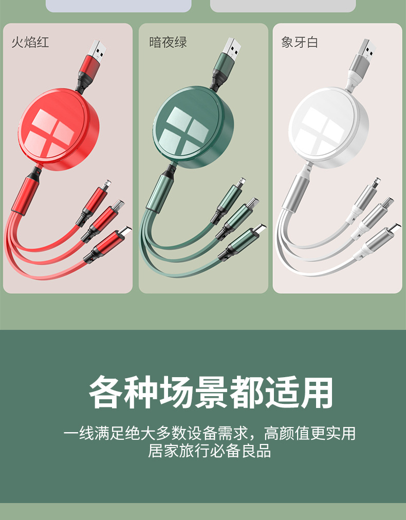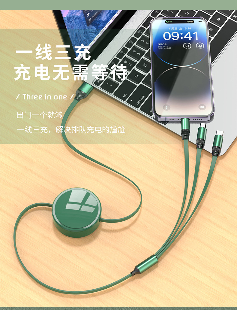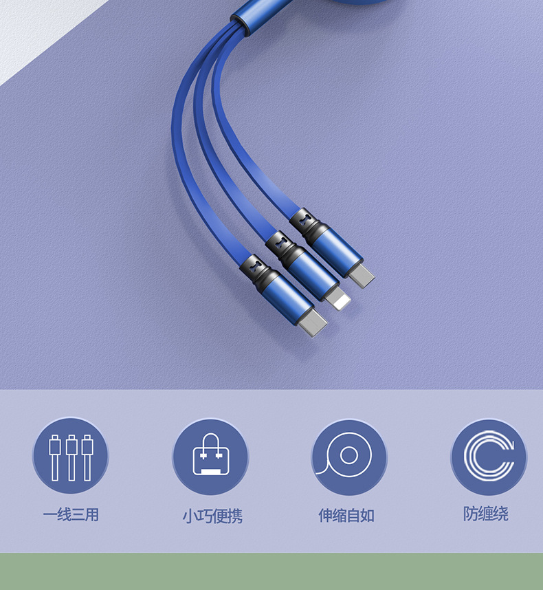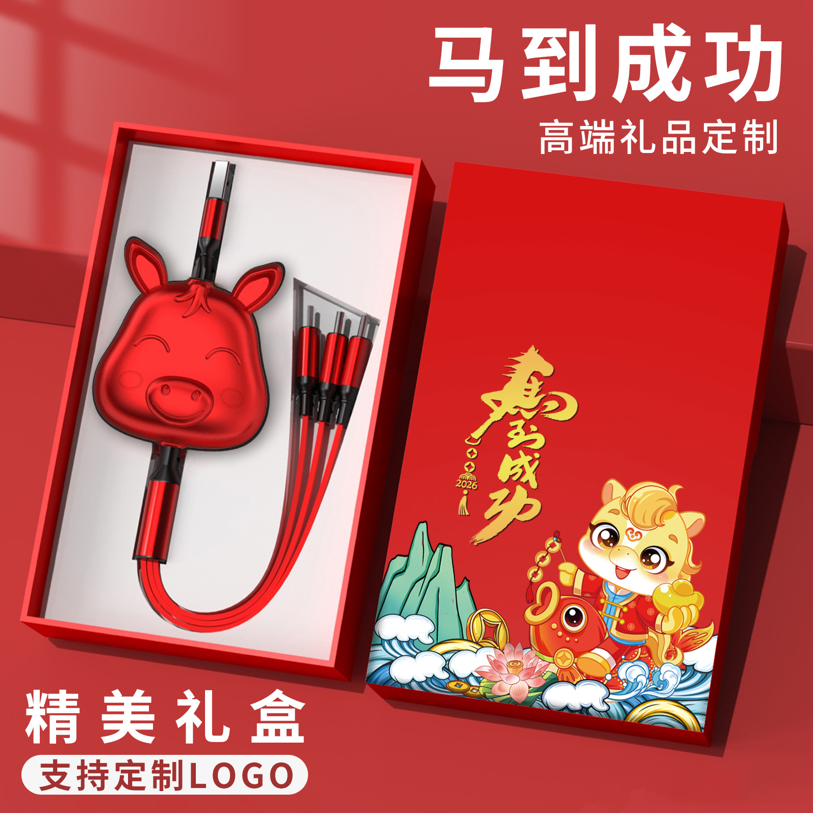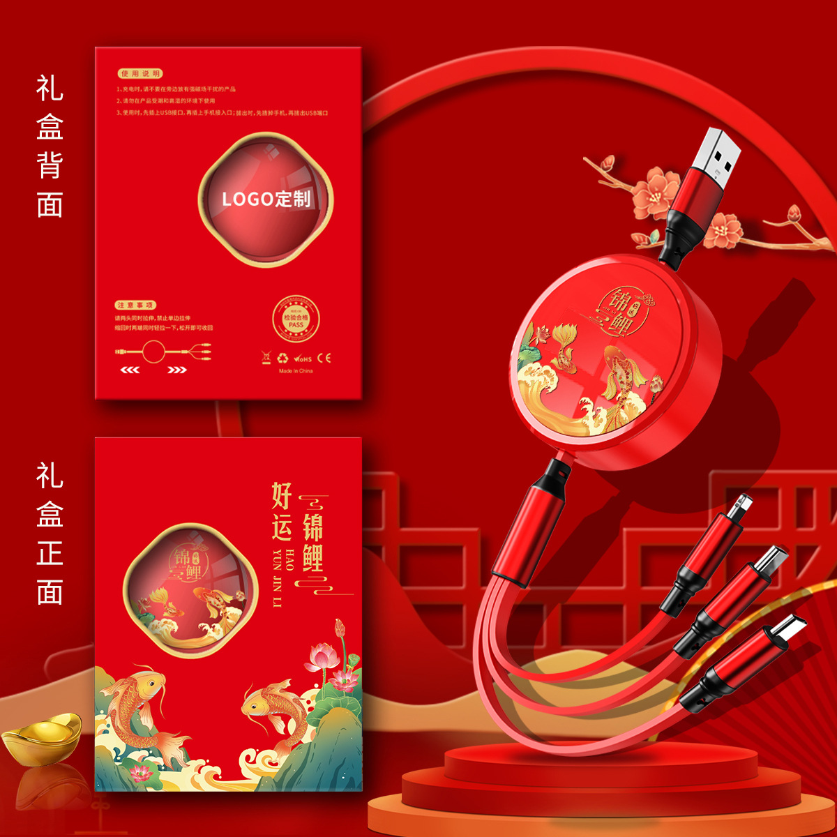 创意小礼品活动伴随手礼一拖三快充数据线印logo图案广告开业宣传