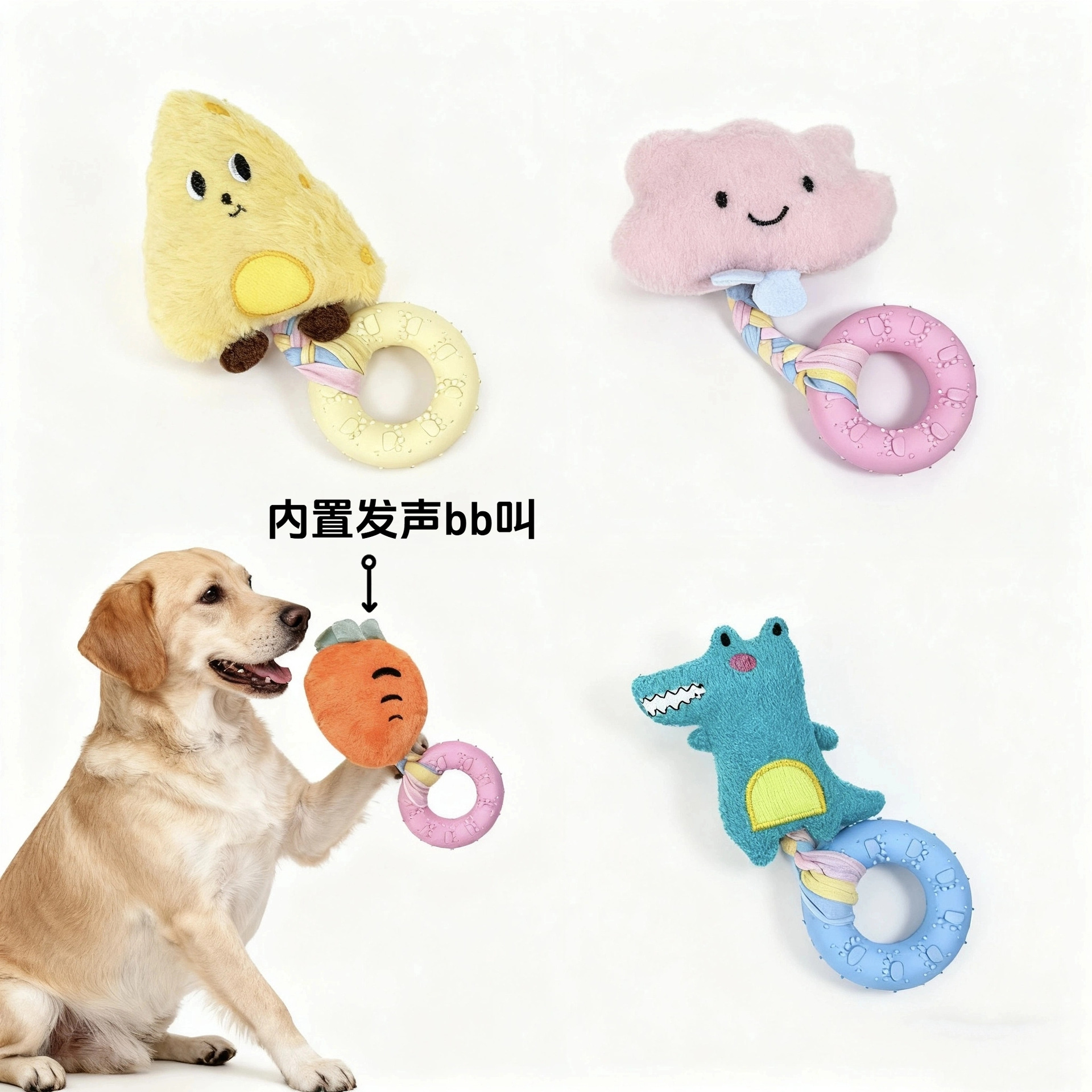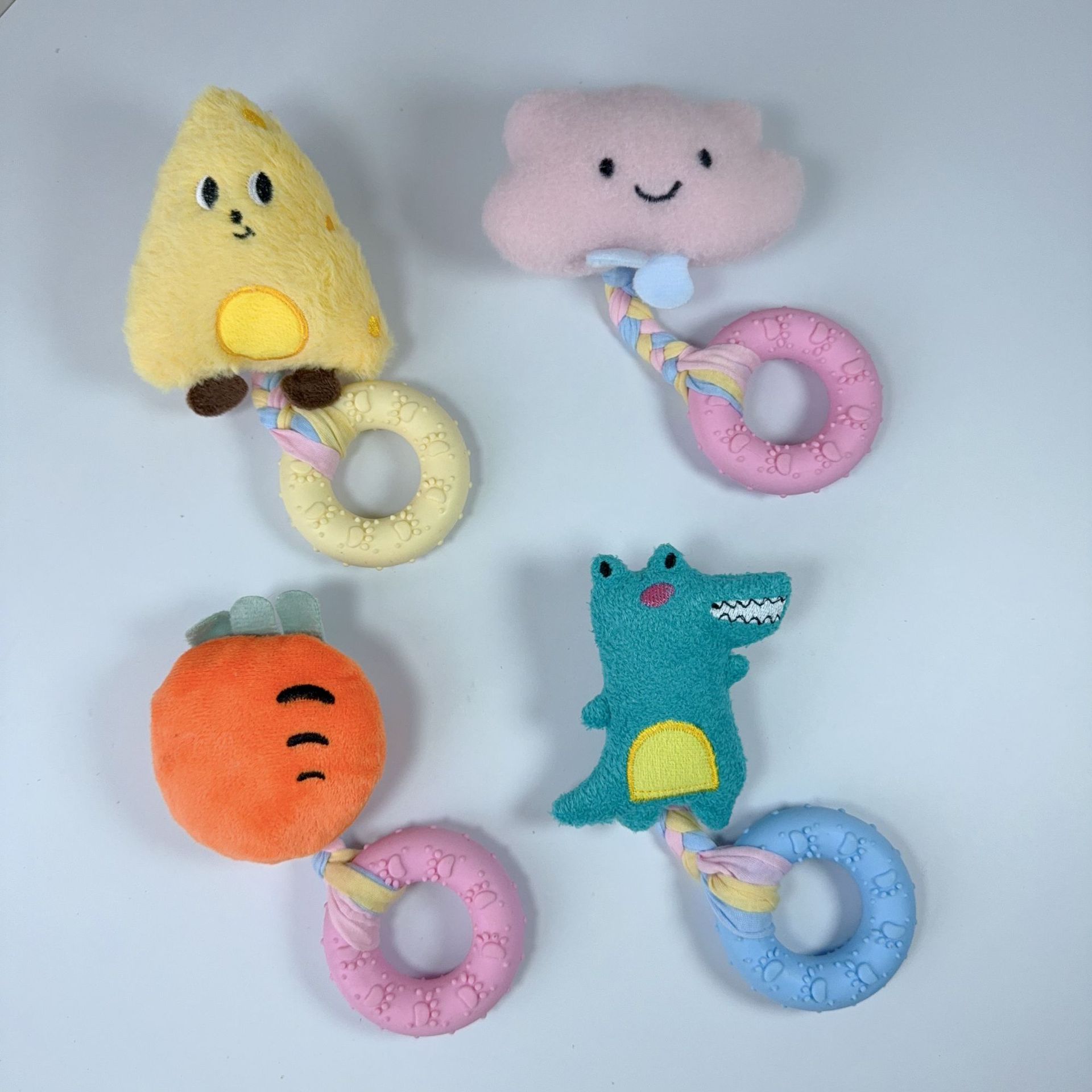factory wholesale pet dog toy bite-resistant plush doll sound toy small dog molar relieving stuffy bite ring